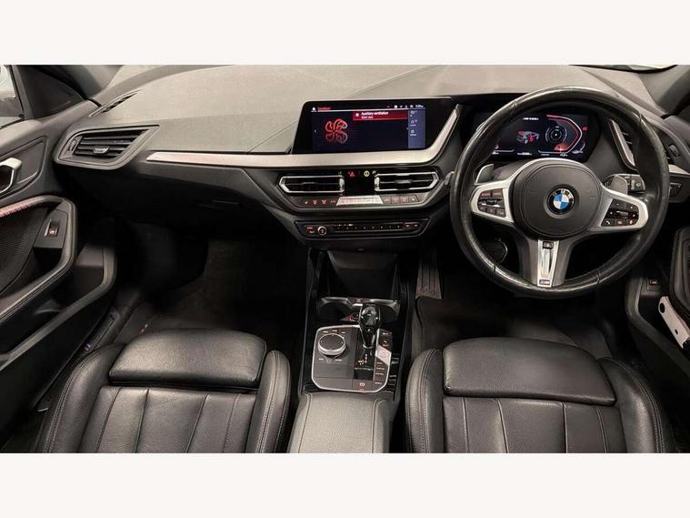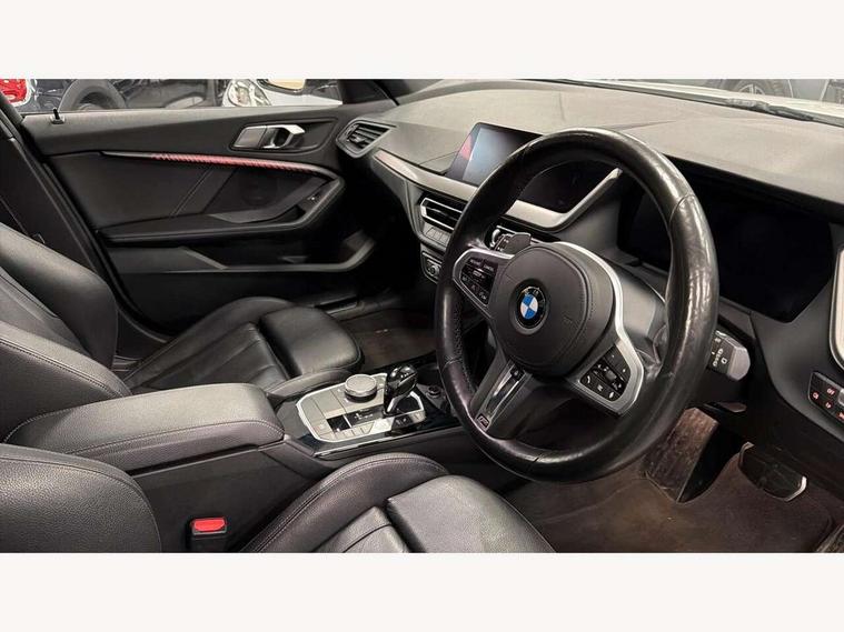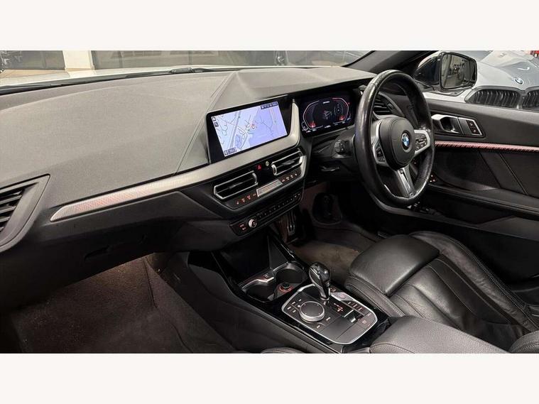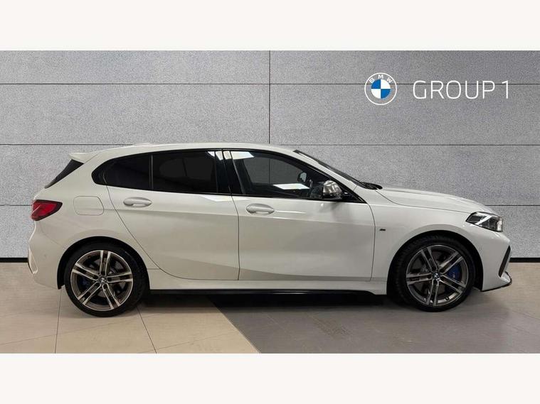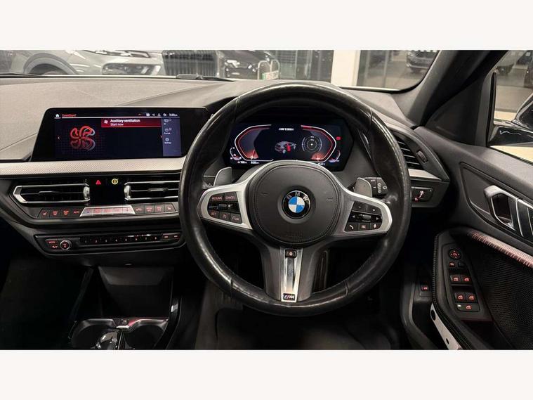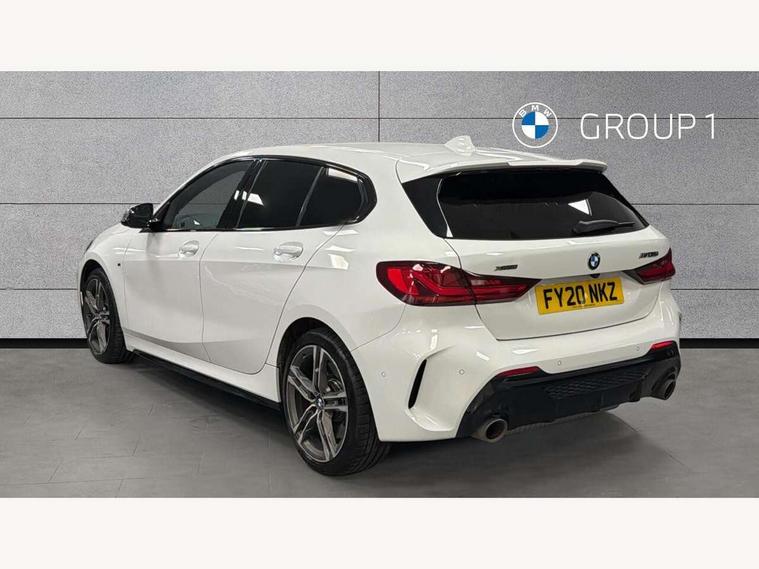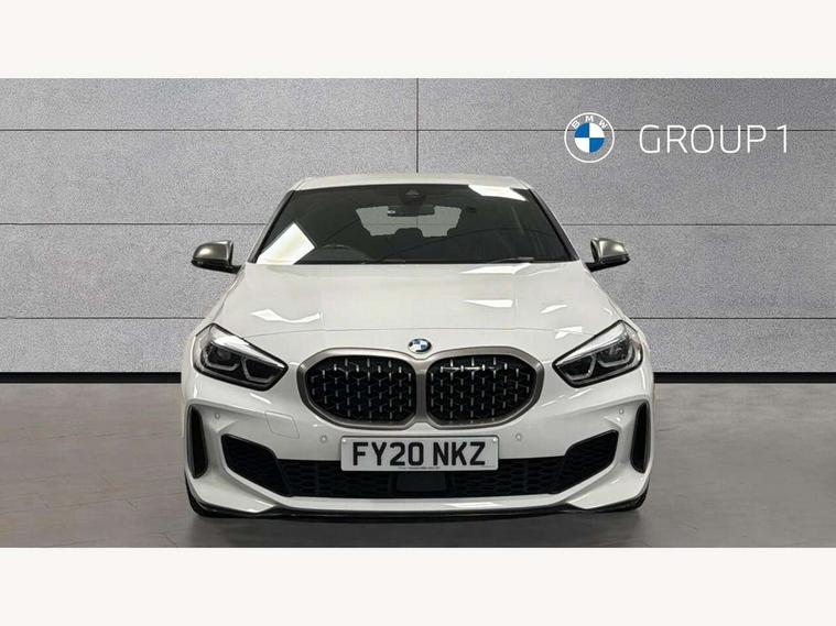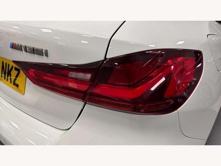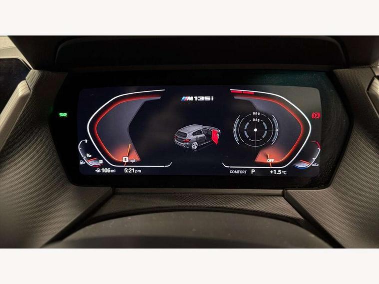 Active guard plus, Attentiveness assist, BMW Live Cockpit Professional sat nav system including 10.25" high resolution display and Intelligent Voice Assistant, BMW Online services, BMW Teleservices, Check Control warning system for monitoring of lights and door/luggage compartment open warning, Eco pro mode, Gearshift time display in manual mode, Integrated owners handbook, M Sports steering, Oil sensor for level and grade, On board computer, Optimum shift indicator, Personal Profile, Pull away assistant, Speed limiter, Sporty fast gear shifting in sport mode, Aluminium lightweight construction, Anti roll bar front and rear, Balancer shaft, Double VANOS, Drive Performance Control, Eight speed sport automatic transmission with electronic selector lever, Electronic differential lock, Engine cover with M performance designation, High precision injection, Larger fuel tank capacity (50 litres), Launch control, Petrol Particulate Filter, VALVETRONIC engine management, Bluetooth audio streaming, DAB Digital radio, Auto dimming rear view mirror, Automatic headlight beam throw control, Body colour door handles, Cerium grey exterior mirror caps, Direction indicator side lights in exterior mirrors, Electric folding and anti dazzle exterior mirrors, Fading support, Follow me home headlights, Front and rear electric windows with open and close fingertip control, anti trap facility and comfort closing, Front door sill finishers with M135i designation, Green tinted heat protection glazing, Heated, electrically adjustable exterior mirror aspheric on driver side, convex on passenger side, High gloss shadow line exterior trim, High gloss shadowline window frame, Recess cover mirror frames and B/C pillar embelisher trim, High level third brake light, Kidney grille frame in Cerium Grey with Mesh design, LED daytime running lights, LED eyebrow turn indicators, Lightweight engineering, M logo designation side in cerium grey, M performance exhaust system, M rear spoiler, Matt black air guide grilles, Model designation on right side of tailgate, Nearside reverse light in rear light cluster, Rain sensor including auto headlights activation, Rear fog lights, Rear window wiper, Round exhaust system with twin cerium grey tailpipes in left and right split, Shark fin antenna, Visible VIN plate, Welcome lighting, Windscreen wipers with integrated washing jets, 12V power socket in centre console, 2 cupholders in front centre console, 3 rear seat head restraints, 3 spoke M sports design leather steering wheel finished in nappa leather with specific M badge, Anthracite headlining, Anthracite Velour floor mats, Child seat ISOFIX attachment for two outer rear seats and front passenger seat with anchorage points, Conditioned based service, Driver and front passenger seat heating, Driver side folding compartment in instrument panel, Folding rear clothes hook, Folding rear seats, Four grab handles integrated in roof lining, Front and rear door pockets, Front and rear side armrest integrated into door trim, Front armrest foldable with integrated storage compartment, Front M seats, Glove compartment, Height adjustable front head restraints, Manual adjust steering wheel, Multi-function controls for steering wheel, Rear seat backrest with manual 60:40 split folding with 3 top tether clips integrated on rear of seat panels, Storage compartment in centre console, Sun visors with vanity mirrors and insert tab, Two zone automatic air conditioning, Connected pack professional - 1 Series, Extended Lighting pack - 1 Series M135i, Extended storage pack - 1 Series, Interior lights pack - 1 Series, Luggage compartment pack - 1 Series, M Sport exterior styling aerodynamics pack - 1 Series 135i, 2 tone horn, 3 point seatbelts on all seats, front pyrotechnic belt tensioners, stopper and belt force limiters, rear coded belt buckles, Airbags - Front driver and passenger, front and rear head, front side, curtain head protection, Anti lock braking system (ABS) with brake assist, BMW emergency call, Brake drying, Braking readiness, Crash sensor activating central locking release, hazard warning lights, fuel cut off, interior lighting + activation of safety battery terminal clamp, Driver and front passenger seat belt security check, Dynamic stability control + (DSC+), Dynamic Traction Control - DTC, Electrically operated hand brake, Front and rear disc brakes, Front passenger manual airbag deactivation, M Sport braking system, M sport seatbelt, Rear child proof door locks, Seatbelt warning, Side impact protection, Torsen mechanical limited slip differential, Tyre pressure monitoring system, Warning triangle and first aid kit, Automatic drive away locking facility, Central locking switch for all doors, fuel filler cap and luggage compartment, Deadlocking function system to all doors, Locking wheel bolts, Remote control with integrated key with High-gloss Black inlay and M designation and 1 button for open/ close lock, window, open luggage compartment, Start/stop button with comfort go keyless engine start and auto start stop deactivation button, Thatcham Cat.1 alarm and immobiliser, Contrast stitching on instrument panel, 18" Burnished M double spoke Bi-colour alloy wheels finished in Cerium grey matt - style 556M, BMW mobility system, Reduced rolling resistance tyres,