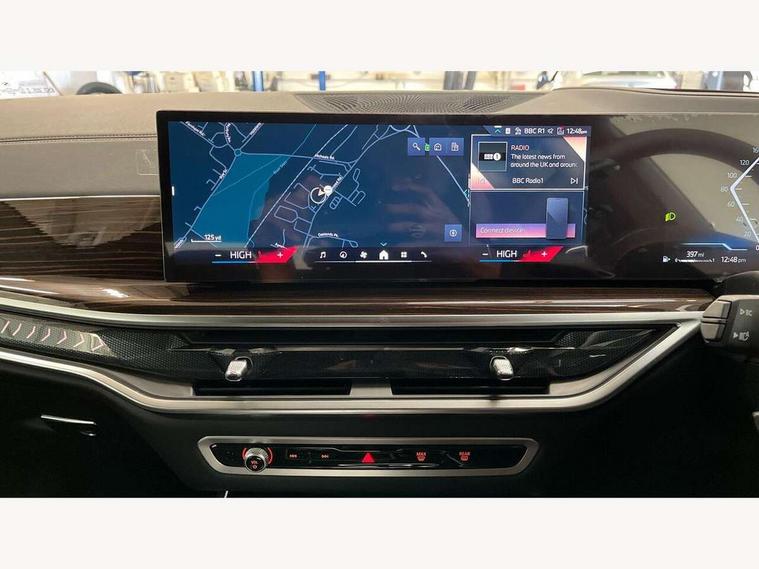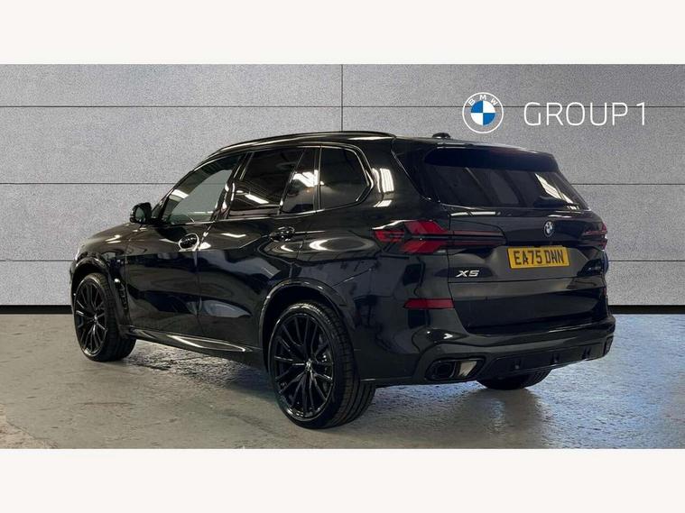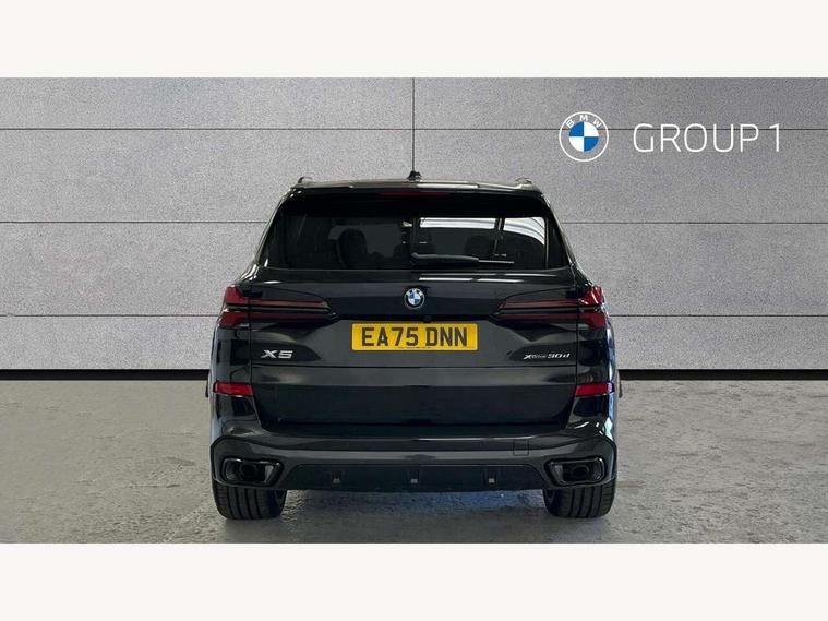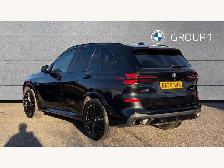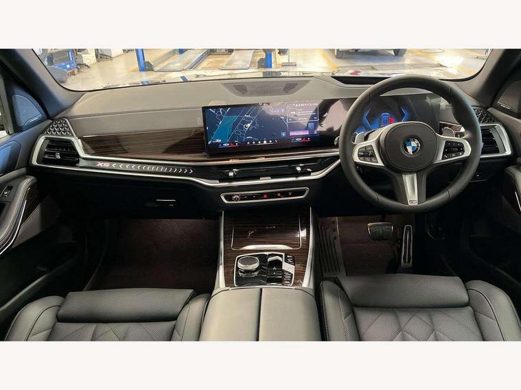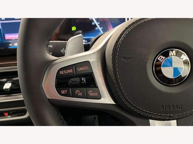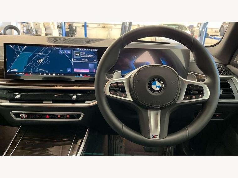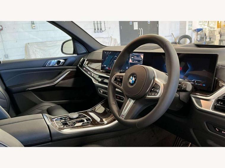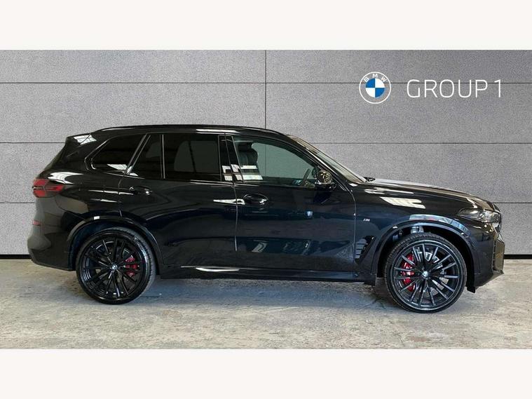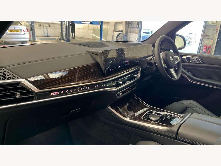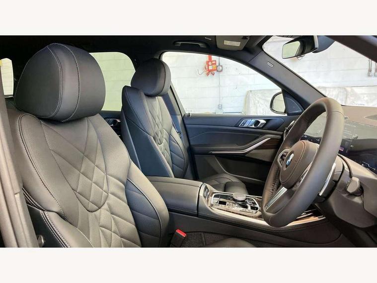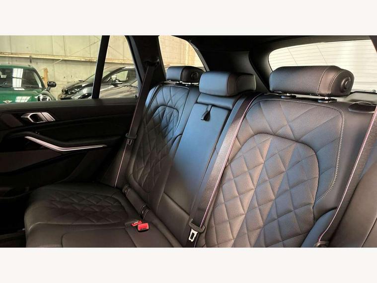 Attentiveness assist, Automatic tailgate operation, BMW ConnectedDrive online services, BMW live cockpit + with curved 12.3 instrument cluster/14.9 central display, nav/Tuner with diversity reception, RDS/4GLTE/remote software upgrade, BMW Recovery system, BMW Teleservices, Condition based service, Cruise control with brake assist, eCall emergency call system, Enhanced bluetooth with wireless charging, Integrated owner's handbook, PAS, Speed limiter, Wi-Fi hotspot, Drive performance control with ECO PRO comfort + sport mode, Eight speed steptronic sport automatic transmission and gearshift paddles on the steering wheel, Adaptive LED Headlights, Front and rear electric windows, High beam assistant, High gloss black shadow line roof rails, LED daytime running lights, Rain sensor, Rear side wing doors, Third brake light in rear spoiler, Variable intermittent rear wash/wipe, 12V - Power sockets with 2x centre console and 1x luggage compartment, 3 seat bench in 2nd row, Entry sills illuminated BMW inscription front and rear, Foldable rear centre armrest with 2 cupholders and storage compartment, Front and rear side armrest integrated into door trim, Grab handles in 1st and 2nd row of seats with Integrated in headliner, at rear with coat hooks, plastic, Headrests for all seats, Luggage compartment separating net, Lumbar support with height and depth adjustment in backrest, Single front passenger seat, Sunvisors with illuminated vanity mirrors and ticket pocket, Three spoke sport M leather steering wheel, Velour floormats, Ambient light interior pack - X5, Driving assistant pack with radar based driver assistance system - X5, Expanded exterior mirror pack - X5/X5 M, M aerodynamics pack - X5, Parking assistant pack - X5, 3 rear seatbelts, Active protection, Airbags - driver/front passenger, rear and side, first and second row seats head airbags, front passenger seat airbag deactivation + knee airbag, Anti-lock braking system (ABS), Automatic Stability Control (ASC), Brake energy regeneration, Cornering brake control (CBC), Crash sensor activating central locking release, hazard warning lights, fuel cut off, interior lighting + activation of safety battery terminal clamp, DSC - Dynamic Stability Control, Dynamic Traction Control - DTC, Electromechanical parking brake with automatic drive away release and auto hold function, Electronic brake force distribution, Hill start assistant, M Sport blue painted brake calipers with 'M' designation, Mechanical child proof lock on rear doors, Tyre pressure monitoring system, Tyre pressure sensors, Ventilated front and rear disc brakes, Warning triangle and first aid kit, Alarm system, Closing system with central locking, Comfort access system, Locking wheel bolts,