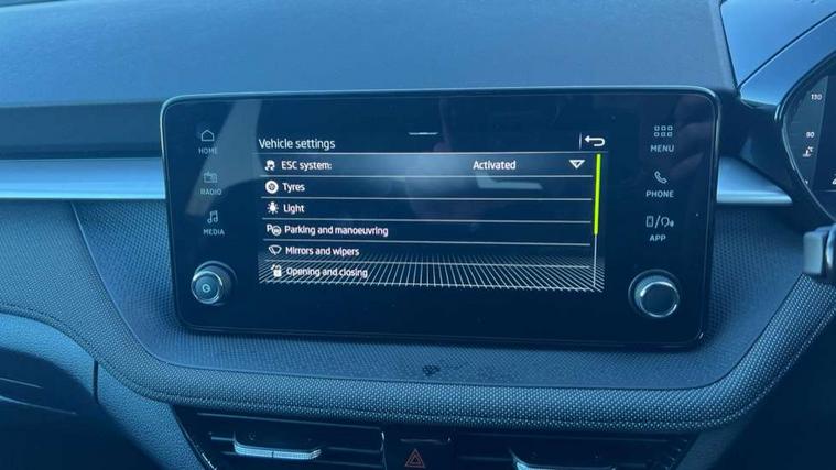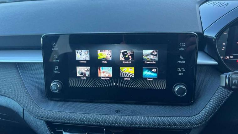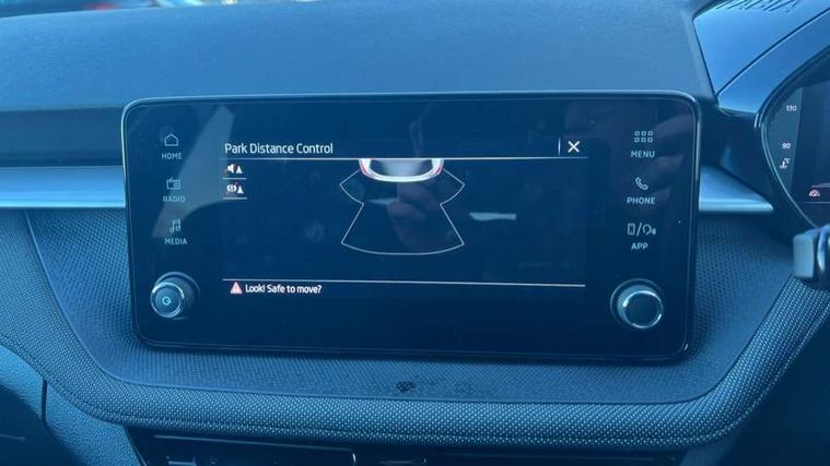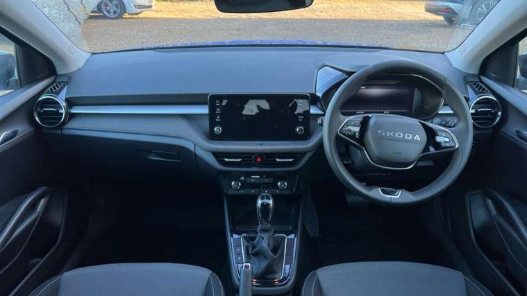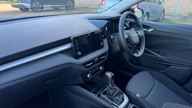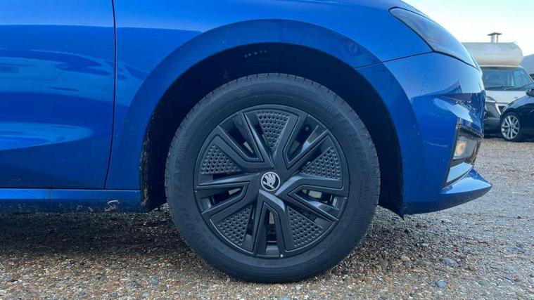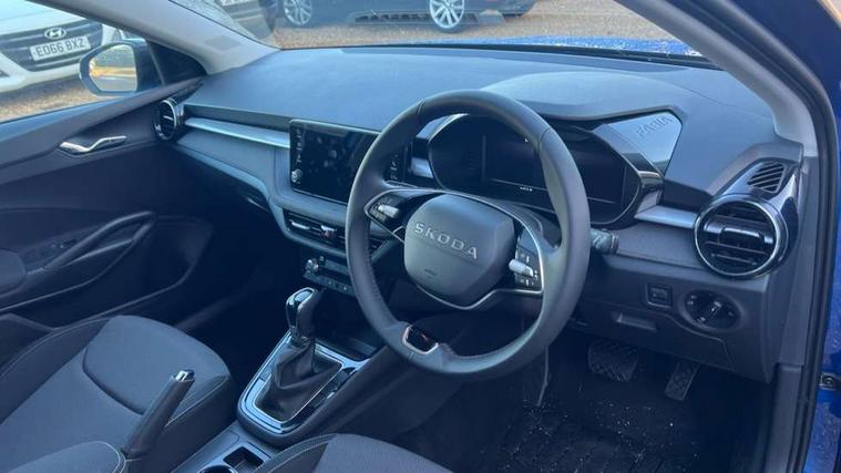 Advanced driver attention and drowsiness monitor, Bluetooth connection, Driver alert system, Electromechanical power steering, Exterior temperature gauge, Service interval indicator, Traffic sign recognition, Virtual cockpit with 10.25" colour display, Wireless SmartLink for Apple CarPlay and Android Auto, 6 Speakers (4 in front and 2 in rear), Auxiliary socket for external MP3 player, DAB digital radio reception, Auto dimming rear view mirror, Body coloured bumpers, Door mirror integrated indicators, Front and rear electric windows, Front window wiper intermittent control, Headlight range control - Automatic, Ice scraper in fuel cap, LED 3rd brake light, LED daytime running lights with coming and leaving home feature, LED rear lights, Privacy glass, Rear LED fog light, Rear side wing doors, Rear window wiper with washing nozzles, Roof mounted spoiler, SKODA tailgate lettering in chrome, Unique dark chrome design logo on alloy wheels, 2 reading lights in front and 2 reading lights in rear, 3 rear headrests, Backrest split and folding, Central console with removable cup holder and storage box, Chrome handbrake release button, Dual zone air conditioning with climatronic electronic control, Fabric upholstery, Front centre armrest, Gearshift knob/handle in leather, Grain satin black interior door handles, Hand brake lever handle in leather, Height adjustable front headrests, Height adjustable front seats, Height adjustable steering wheel, ISOFIX and TopTether anchorage points to the outer rear seats, ISOFIX and TopTether on the front passenger seat, Luggage compartment lighting, Manually adjustable lumbar support in front seats, Pollen filter, Rear seat bench unsplit, Single front passenger seat, Skoda lettering on steering wheel, Storm grey headlining, Sun visors with mirror and airbag label on passenger side, Textile floor mats, Ticket holder, Ambient lighting pack - Fabia Hatchback, 3-point height adjustable front seats belts with pretensioner and force limiter, Automatic warning lights in case of crash, Driver and passengers airbag with switch off function, e-Call+, ESC including ABS, MSR, ASR, EDS, HBA and XDS, Front and rear seat belt warning, FRONT ASSIST (AEB City and AEB Inter Urban), Front side airbags, Head airbags, Hill hold control, One tone horn, Pedestrian protection, Three rear 3-points safety seat belts with pretensioner and force limiter including stop function for outer rear seat belts, Tyre pressure monitoring system, Anti-theft alarm system including immobiliser, interior monitoring, backup horn, and towing protection, Central locking with radio remote control, interior controls, SAFE function and 2 foldable keys, Colour Edition air vents, Grain satin black central console cover, Metallic grey upper decorative trim, Satin black door and side trim panel in front, Textile Kota grey lower decorative inserts, Anti-theft wheel bolts protection, Super-low rolling resistance tyres,