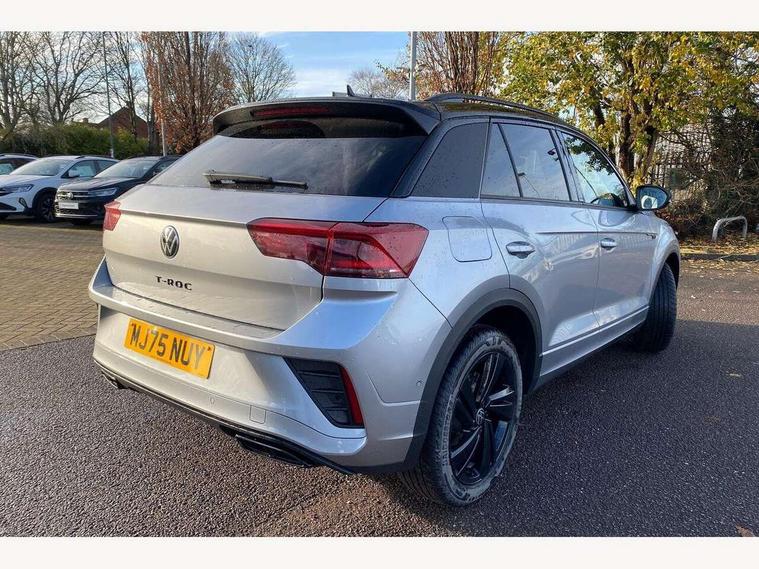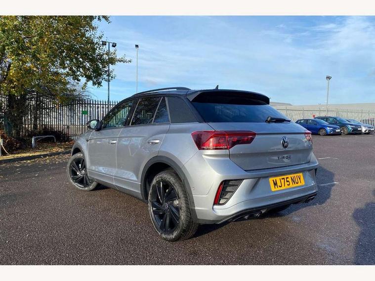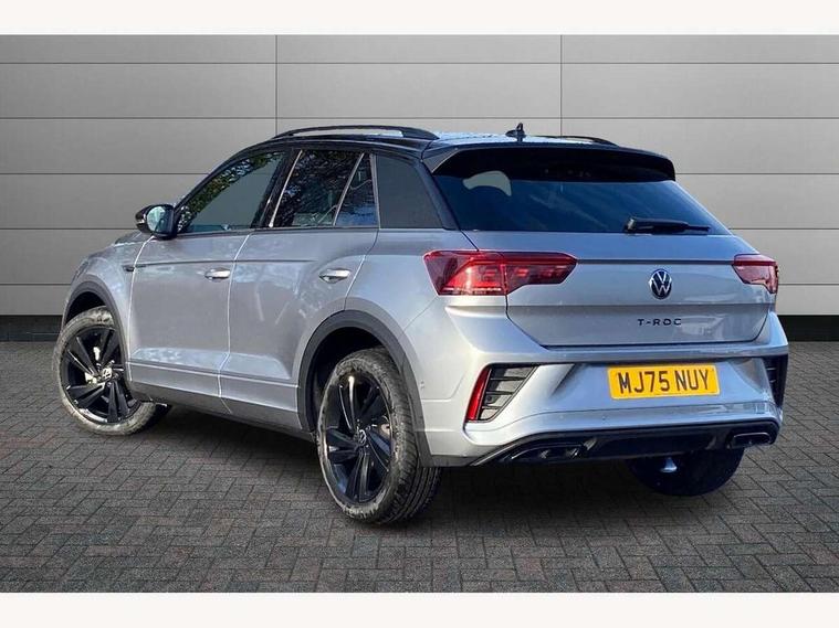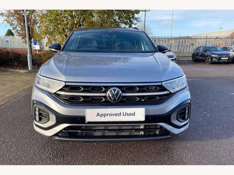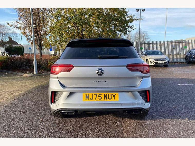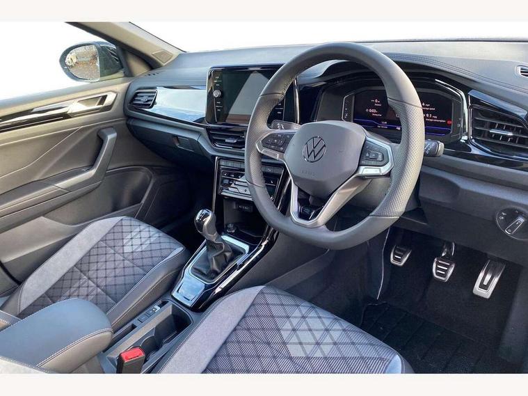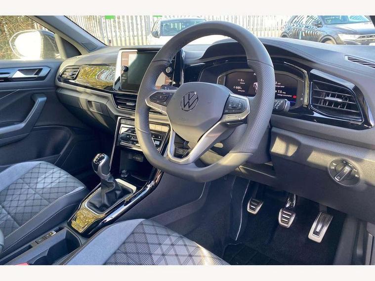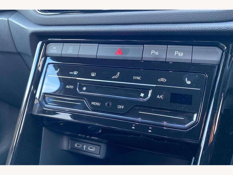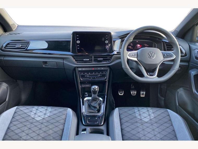 10.25" Digital cockpit pro, Advanced driver attention and drowsiness monitor, Emergency call service, Lane keeping system Lane Assist, Mobile phone interface, Modified key software - reduce switch off time for key status change to Long no motion, Online services, Park assist including front and rear parking sensors, Power assisted speed sensitive steering, Service interval indicator, Tailgate/trunk lid release from outside, Think blue trainer driver tips and journey analysis, Warning sound and light for front seatbelts unfastened, Wireless app connect, Battery regeneration during braking, Rear shock absorption chassis with increased ride height, Start/stop function with battery regeneration, DAB Digital radio, Diversity antenna for FM reception, Front and rear 6 speakers, Music playback - MP3, WMA and AAC files, Premium USB cable in choice of either Apple or Android smartphone compatibility, SD card slot, Simultaneous pairing of 2 compatible mobile devices, Title and cover art display, We Connect and We Connect Plus functionality, Auto dimming interior rear view mirror, Automatic hazard lights activation under emergency braking, Automatic headlight control with LED separate daytime running lights with coming/leaving home function, Dynamic cornering light, Electrically adjustable and heated door mirrors, Extended roof spoiler, Exterior mirrors aspherical on driver side, convex on front passenger side, External USB type C socket and charging sockets, Front windscreen wiper with intermittent wipe and 4 position delay, Heated rear window, Illuminated front grille, IQ LED matrix headlights, LED 3rd brake light, LED rear number plate lights, LED rear tail lights with dynamic turn signal, Light mode for poor weather, rain, fog or snow, Power windows with comfort operation and circuit breaker, R-Line design body coloured bumpers, Rain sensor, Rear exhaust tailpipe, Rear fog light on one side and reversing lights on both sides, Rear side wing doors, Rear wash/wipe with intermittent wipe setting, Remote electrically foldable door mirrors, puddle lights and reverse activated passenger's door mirror, 12V power socket in centre console, 3 rear head restraints, 3 seat bench in 2nd row, 4 load lashing points in luggage compartment, Air care climatronic air conditoning system with active combination filter and 2-zone temperature control, Artvelours cloth upholstery, Black roof lining, Chrome plated radiator grille inserts, air vent surrounds and light switch surrounds, Door and side trim panel with leatherette insert, Drawer under drivers seat, Driver seat height adjust, Driver's seat lumbar support, Front + rear carpet mats, Front centre armrest, Front comfort sports seats, Front cupholders x 2, Front footwell illumination, Front reading light, Front scuff plates with R Line logo, Front seat back storage pockets, Glove compartment door with light, Instrument lighting, white adjustable panel illumination, Interior ambient lighting and surround lighting, Interior light delay, Isofix child seat preparation, Leather gearshift handle, Load-through provision with cup holder when folded down ('Unsplit rear seat bench, split folding backrest, with centre armrest), Luggage compartment lighting, Non-folding front passenger seat backrest, Passenger seat height adjuster, Passenger seat lumbar support, Single front passenger seat, Stainless steel pedals, Storage compartment in left and right luggage area, Storage compartment in rear doors, Storage compartments in driver and front passenger doors, Sunvisors with illuminated vanity mirrors, Variable boot floor, height adjustable and removable, Winter pack without heated windscreen washer jets - T-Roc, 3 point height adj front seatbelts + pretensioners, 3 point seatbelts in outer rear with ECE label, ABS, Child locks on rear doors, City emergency braking and pedestrian monitoring, Driver and front passenger airbag with front passenger airbag deactivation, Driver and front passenger safety-optimised head restraints, Drivers seatbelt reminder, Electronic parking brake, Electronic Stability Control (ESC) inc EDL (Electronic Differential Lock) and ASR (Traction Control), Front and rear passengers curtain airbag system including front side airbags, Front disc brakes, Hill start assist, Predictive pedestrian protection, Rear disc brakes, Two tone horn, Tyre pressure loss indicator, Volkswagen roadside assistance, Tool kit, Trims for alloy wheels, Tyre mobility kit including compressor and sealing foam,