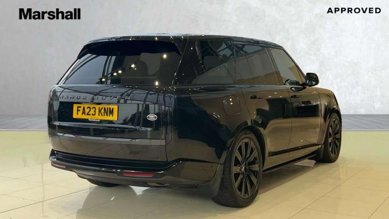 13.1" Touchscreen, 3D surround camera inc frwd traffic detection, vehicle clearance guidance, 3D view, clearsight ground view, manoevure light, 360 parking aid, wade sensing, Adaptive cruise control with steering assist, All Terrain Info Centre, All wheel steering, Android Auto, Apple car play, Blind spot assist, Bluetooth connectivity streaming, Configurable programs, Driver condition response, Eco mode, Electric power assisted steering (EPAS), Emergency call service, Head up Display, Interactive driver display, Lane keep assist, Powered gesture tailgate/boot lid, Rear collision monitor, Rear traffic monitor, Remote, Traffic sign recognition with adaptive speed limiter, Wi-Fi Enabled with data plan, Wireless device charging with phone signal booster, 7 kW onboard charger, 8 speed automatic transmission, Active damper technology system, Adaptive dynamics, All terrain progress control, All Wheel Drive (AWD), Automatic access height, Home charging cable 5m Mode 2 including plugs, Public charging cable 5m Mode 2 including plugs, Terrain Response 2 Auto, Twin speed transfer box, Digital Audio Broadcast radio-DAB, Pivi pro including smart settings, Connected navigation pro, nuance speech, USB socket, Acoustic laminated windscreen, Animated directional indicators, Automatic headlights, Automatic levelling headlights, Centre high mounted stop light, ClearSight interior rear view mirror, Electric windows with one touch open/close and anti trap, Flush deployable exterior door handles, Front and rear recovery eyes, Front fog lights, Headlamp power wash, Heated rear window, Heated washer jets, Illuminated metal treadplates with Autobiography script, Laminated front and rear side glass, LED tail lights, Power fold, auto-dimming, heated door mirrors with approach lights, Rain sensing windscreen wipers, Rear boot, Rear fog lights, Rear side wing doors, Rear wash/wipe, Side repeater indicators in mirror, Solar attenuating windscreen, Trailer stability assist, Winter wiper park position, 12V power sockets, 3 seat bench in 2nd row, Air quality sensor, Auto folding loadspace cover, Bright metal pedals, Cabin air purification pro, Cabin lighting, Customer configurable single point entry, Driver and passenger front seat armrests, Easy boot loading, Ebony Carpet, Electric rear side window sunblinds, Four zone climate control, Front and rear cupholders, Front and rear grab handles, Front head restraints, Gearshift paddles, Heated steering wheel, Hook in load space, Loadspace light, Luggage tie down in loadspace, Multifunction steering wheel, Rear centre armrest, Rear head restraints, Rear ISOFIX, Single front passenger seat, SV bespoke carpet mats, Twin blade sunvisors with Illuminated vanity mirrors, Upper and lower glovebox, Versatile loadspace floor in tailgate, Online pack with data plan - Range Rover, 3x3 point rear seat belts, Anti-lock braking system (ABS), Black brake calipers, Brake hold function, Cornering brake control (CBC), Customer configurable autolock, DSC - Dynamic Stability Control, Electronic brake force distribution, Electronic parking brake, Electronic traction control, Emergency brake assist, Emergency braking, Front airbags with passenger seat occupant detector, Front side airbags, Hill descent control, Hill launch assist, Illuminated seat belt buckles, Low traction launch, Occupant protection assist, Power operated child locks, Roll stability control, Tyre pressure monitoring system (TPMS), Immobiliser, Intrusion sensor and alarm, Keyless entry, Locking wheel nuts, Remote central locking, Noble chrome controls,