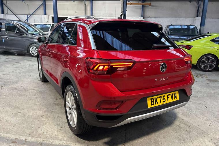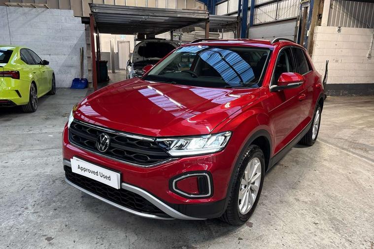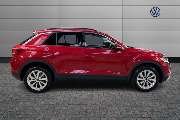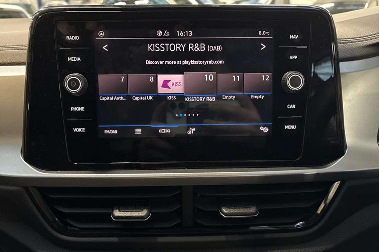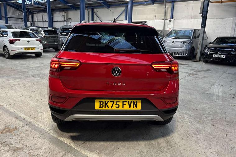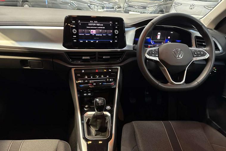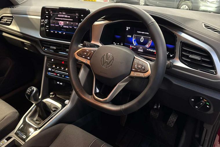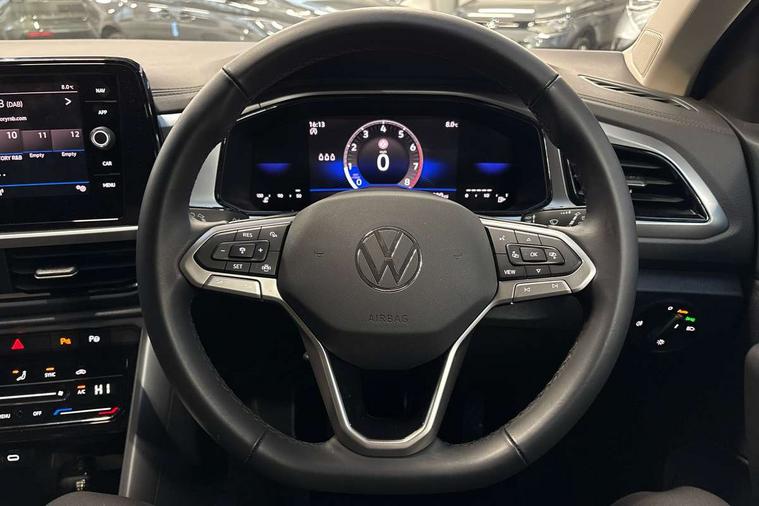 Advanced driver attention and drowsiness monitor, Dynamic road sign display, Emergency call service, Lane keeping system Lane Assist, Mobile phone interface, Modified key software - reduce switch off time for key status change to Long no motion, Online services, Park assist including front and rear parking sensors, Power assisted speed sensitive steering, Rear view camera, Service interval indicator, Tailgate/trunk lid release from outside, Think blue trainer driver tips and journey analysis, Warning sound and light for front seatbelts unfastened, Wireless app connect, Battery regeneration during braking, Front shock absorption, Rear shock absorption chassis with increased ride height, Start/stop function with battery regeneration, DAB Digital radio, Diversity antenna for FM reception, Music playback - MP3, WMA and AAC files, SD card slot, Simultaneous pairing of 2 compatible mobile devices, Title and cover art display, We Connect and We Connect Plus functionality, Auto dimming interior rear view mirror, Automatic hazard lights activation under emergency braking, Automatic headlight control with LED separate daytime running lights with coming/leaving home function, Black roof rails, Body coloured bumpers and radiator grille with chrome trim and front fog lamps with chrome bezel, Body coloured exterior mirror housings and door handles, Electrically adjustable and heated door mirrors, Extended roof spoiler, Exterior mirrors aspherical on driver side, convex on front passenger side, External USB type C socket and charging sockets, Front windscreen wiper with intermittent wipe and 4 position delay, Heated rear window, LED 3rd brake light, LED rear combination lamps, LED rear number plate lights, Power windows with comfort operation and circuit breaker, Privacy glass for rear side windows and rear window, Rain sensor, Rear exhaust tailpipe, Rear fog light on one side and reversing lights on both sides, Rear side wing doors, Rear wash/wipe with intermittent wipe setting, Remote electrically foldable door mirrors, puddle lights and reverse activated passenger's door mirror, 12V power socket in centre console, 3 rear head restraints, 3 seat bench in 2nd row, 4 load lashing points in luggage compartment, Air care climatronic air conditoning system with active combination filter and 2-zone temperature control, Black stitching for floor mats, Ceramique roof liner, Cloth upholstery, Door and side trim panel in cloth, Drawer under drivers seat, Driver/front passenger seat height adjustment, Front centre armrest, Front comfort sports seats, Front cupholders x 2, Front reading light, Front seat back storage pockets, Glove compartment door with light, Instrument lighting, white adjustable panel illumination, Interior ambient lighting and surround lighting, Interior light delay, Isofix child seat preparation, Leather gearshift handle, Load-through provision with cup holder when folded down ('Unsplit rear seat bench, split folding backrest, with centre armrest), Luggage compartment lighting, Lumbar support for driver's and front passengers seat, Non-folding front passenger seat backrest, Single front passenger seat, Storage compartment in left and right luggage area, Storage compartment in rear doors, Storage compartments in driver and front passenger doors, Sunvisors with illuminated vanity mirrors, Variable boot floor, height adjustable and removable, Driver assistance pack without proactive passenger protection - T-Roc Life/Match, 3 point height adj front seatbelts + pretensioners, 3 point seatbelts in outer rear with ECE label, ABS, Child locks on rear doors, City emergency braking and pedestrian monitoring, Driver and front passenger airbag with front passenger airbag deactivation, Driver and front passenger safety-optimised head restraints, Drivers seatbelt reminder, Electronic parking brake, Electronic Stability Control (ESC) inc EDL (Electronic Differential Lock) and ASR (Traction Control), Front and rear passengers curtain airbag system including front side airbags, Front disc brakes, Hill start assist, Predictive pedestrian protection, Rear disc brakes, Two tone horn, Tyre pressure loss indicator, Volkswagen roadside assistance, Alarm with interior protection, Keyless locking and starting system keyless access with safelock, Pewter matt decorative inserts for intrument panel, centre console and door panels at the front, Trims for alloy wheels,