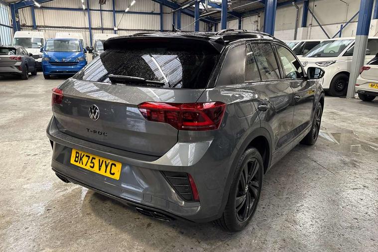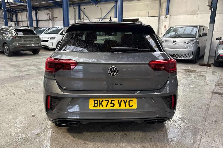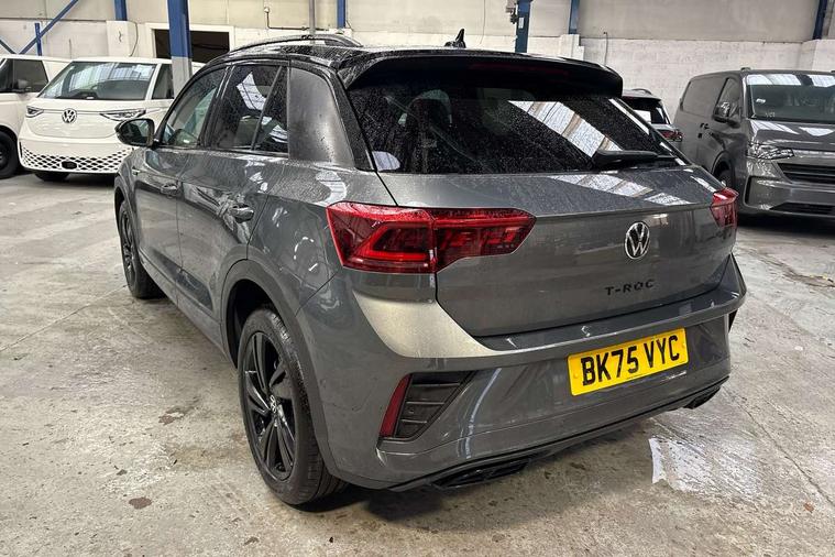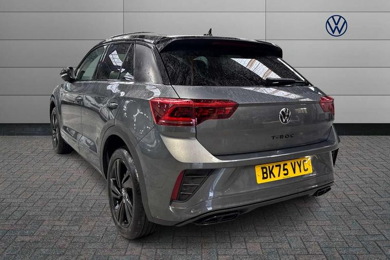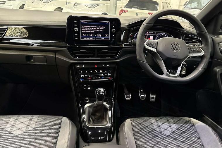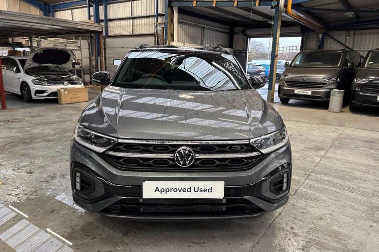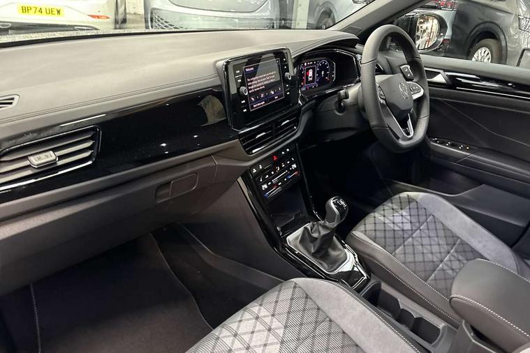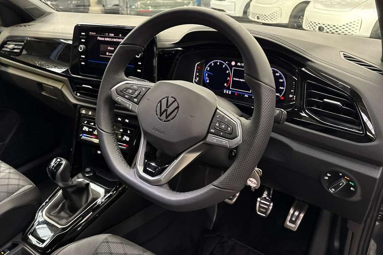 10.25" Digital cockpit pro, Advanced driver attention and drowsiness monitor, Emergency call service, Lane keeping system Lane Assist, Mobile phone interface, Modified key software - reduce switch off time for key status change to Long no motion, Online services, Park assist including front and rear parking sensors, Power assisted speed sensitive steering, Service interval indicator, Tailgate/trunk lid release from outside, Think blue trainer driver tips and journey analysis, Warning sound and light for front seatbelts unfastened, Wireless app connect, Battery regeneration during braking, Rear shock absorption chassis with increased ride height, Start/stop function with battery regeneration, DAB Digital radio, Diversity antenna for FM reception, Front and rear 6 speakers, Music playback - MP3, WMA and AAC files, Premium USB cable in choice of either Apple or Android smartphone compatibility, SD card slot, Simultaneous pairing of 2 compatible mobile devices, Title and cover art display, We Connect and We Connect Plus functionality, Auto dimming interior rear view mirror, Automatic hazard lights activation under emergency braking, Automatic headlight control with LED separate daytime running lights with coming/leaving home function, Dynamic cornering light, Electrically adjustable and heated door mirrors, Extended roof spoiler, Exterior mirrors aspherical on driver side, convex on front passenger side, External USB type C socket and charging sockets, Front windscreen wiper with intermittent wipe and 4 position delay, Heated rear window, Illuminated front grille, IQ LED matrix headlights, LED 3rd brake light, LED rear number plate lights, LED rear tail lights with dynamic turn signal, Light mode for poor weather, rain, fog or snow, Power windows with comfort operation and circuit breaker, R-Line design body coloured bumpers, Rain sensor, Rear exhaust tailpipe, Rear fog light on one side and reversing lights on both sides, Rear side wing doors, Rear wash/wipe with intermittent wipe setting, Remote electrically foldable door mirrors, puddle lights and reverse activated passenger's door mirror, 12V power socket in centre console, 3 rear head restraints, 3 seat bench in 2nd row, 4 load lashing points in luggage compartment, Air care climatronic air conditoning system with active combination filter and 2-zone temperature control, Artvelours cloth upholstery, Black roof lining, Chrome plated radiator grille inserts, air vent surrounds and light switch surrounds, Door and side trim panel with leatherette insert, Drawer under drivers seat, Driver seat height adjust, Driver's seat lumbar support, Front + rear carpet mats, Front centre armrest, Front comfort sports seats, Front cupholders x 2, Front footwell illumination, Front reading light, Front scuff plates with R Line logo, Front seat back storage pockets, Glove compartment door with light, Instrument lighting, white adjustable panel illumination, Interior ambient lighting and surround lighting, Interior light delay, Isofix child seat preparation, Leather gearshift handle, Load-through provision with cup holder when folded down ('Unsplit rear seat bench, split folding backrest, with centre armrest), Luggage compartment lighting, Non-folding front passenger seat backrest, Passenger seat height adjuster, Passenger seat lumbar support, Single front passenger seat, Stainless steel pedals, Storage compartment in left and right luggage area, Storage compartment in rear doors, Storage compartments in driver and front passenger doors, Sunvisors with illuminated vanity mirrors, Variable boot floor, height adjustable and removable, Winter pack without heated windscreen washer jets - T-Roc, 3 point height adj front seatbelts + pretensioners, 3 point seatbelts in outer rear with ECE label, ABS, Child locks on rear doors, City emergency braking and pedestrian monitoring, Driver and front passenger airbag with front passenger airbag deactivation, Driver and front passenger safety-optimised head restraints, Drivers seatbelt reminder, Electronic parking brake, Electronic Stability Control (ESC) inc EDL (Electronic Differential Lock) and ASR (Traction Control), Front and rear passengers curtain airbag system including front side airbags, Front disc brakes, Hill start assist, Predictive pedestrian protection, Rear disc brakes, Two tone horn, Tyre pressure loss indicator, Volkswagen roadside assistance, Tool kit, Trims for alloy wheels, Tyre mobility kit including compressor and sealing foam,