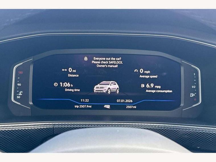 'Lights On' Reminder warning buzzer, 10.25" Digital cockpit pro, Advanced driver attention and drowsiness monitor, Car information display, Driver profile selection including ECO function, Dynamic road sign display, E-Sim card for online connectivity, eCall emergency call system, Front and rear parking sensors, Front assist, forward collision warning, autonomous emergency braking and speed limiter, Low washer fluid warning light, Multifunction computer with visual gear change recommendation for fuel consumption, Multifunction front facing camera for distance control, Operating permit alteration, Power assisted steering, Predictive adaptive cruise control, Preparation for navigation system with media and internet package, Preparation for We connect and We connect plus, Semi-automated driving assistance, travel assist including lane keeping system Lane Assist and emergency assisst, Side assist, Speedo, rev counter, electronic odometer, trip, service interval display, exterior temperature and fuel gauge, Warning sound and light for doors and tailgate open, Warning sound and light for front seatbelts unfastened, Wireless Car net app connect with Apple CarPlay, combined functionality of Apple CarPlay/Android Auto and MirrorLink, Wireless charging, Misfuel prevention device, Start-stop system with battery regeneration (recuperation - energy recovery during braking), 2 USB C ports in front, 2 USB charging sockets on the centre console in the rear charging capacity upto 45W, Diversity antenna for FM reception, Music playback - MP3, WMA and AAC files, Radio, Automatic dimming interior rear view mirror, Automatic hazard lights activation under emergency braking, Automatic headlight control with LED separate daytime running light and coming home and leaving home feature, Body colour door handles, Body coloured bumpers, Dynamic headlight range control with self adjusting whilst driving, Electric folding door mirror, adjustable, heated with front passenger exterior mirror lowering function, Exterior mirrors convex on the left and aspherical on the right, Front and rear electric windows, Front door sill protectors with R-Line logo, Galvanised body, Heat insulating and laminated safety glass windshield, Heat insulating darkened glass in side and rear windows, High Beam Assist, automatic sensing for switching between dipped and main beam, LED rear combination lights, LED third brake light, Lower door sills and door pillars in black, Rain sensor, Rear fog light on one side, reversing light on both sides, Rear side wing doors, Rear window aerial, Rear window wiper with intermittent control, Reflectors in all doors, Scuff plates, Tailgate with integrated roof spoiler, 12V Accessory socket in centre console, 2 Front and rear reading lights incorporating LED technology, 3 rear head restraints, 3 seat bench in 2nd row, 60/40 split folding rear seat backrest, Air care climatronic 2 zone air conditioning system, Ambient lighting, Brushed stainless steel pedals, Chrome plated radiator grille inserts, air vent surrounds and light switch surrounds, Cloth upholstery, Comfort front sport seats, Door and side trim panel, Driver and front passenger sunvisor with vanity mirror, Dust and pollen filter, Front + rear carpet mats, Front centre armrest with storage compartment, Front footwell illumination, Front seat back storage pockets, Glove compartment door with light, Heated front seats, Heating and fresh air system with 4 stage blower, Height/reach adjust steering wheel, Instrument lighting white adjustable panel illumination, Interior light with switch off delay and dimmer, Isofix anchors for child seats on outer rear seats and front passenger seats, Leather gearshift handle, Leather wrapped multifunction steering wheel, Luggage compartment floor, Luggage compartment lighting, Manual front seats with height adjustment, Padded dashboard, Removable luggage compartment cover, Single front passenger seat, Storage compartment in drivers and front passengers door, Titanium black roof lining, Unsplit sliding rear seat bench, Without drawers under front seats, 3 point outer rear seat belts with ECE label, 3 Point seatbelt for centre rear seat, Anti-lock Braking System (ABS) with Hydraulic Brake Assist (HBA), Automatic post collision braking system, Disc brakes in front, Disc brakes in rear, Driver and front passenger safety-optimised head restraints, Drivers and Front Passengers airbags with front passengers airbag deactivation switch, ESC with EDL and ASR (traction control), Extended and predictive pedestrian/cyclist protection, Front and rear passenger curtain airbag system including front side airbags, Height adjustable front 3 point seatbelts + pretensioners, Hill start assist, Pre crash preventive occupant protection, Proactive passenger protection system in combination with front assist, Rear door child safety locks, Rigid safety cell with front and rear crumple zones, Single tone horn, Tyre pressure loss indicator, Volkswagen roadside assistance, Alarm with interior protection, Anti theft alarm system, Electronic engine immobiliser, Remote tailgate unlocking using key fob, Titanium Black Decorative inserts - R Line, Low rolling resistance tyres,