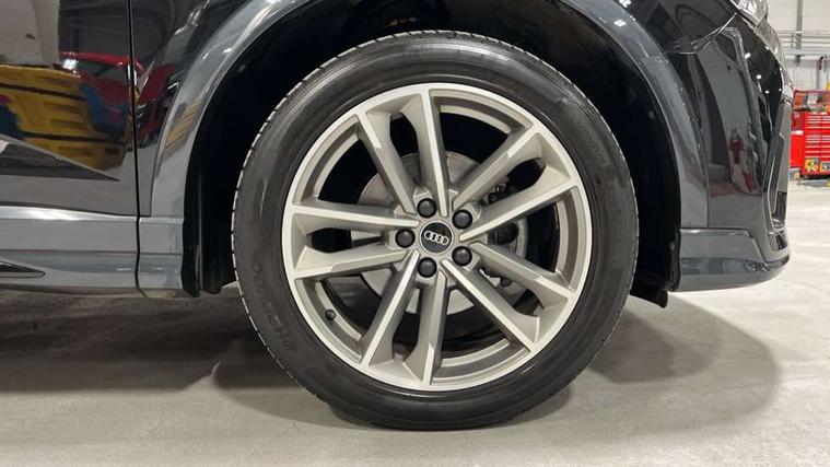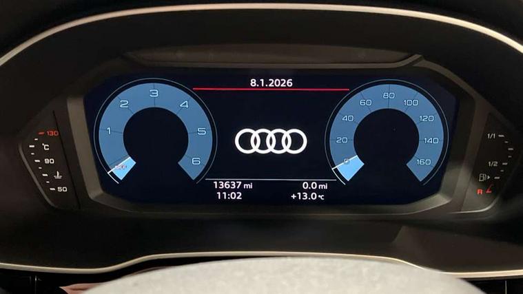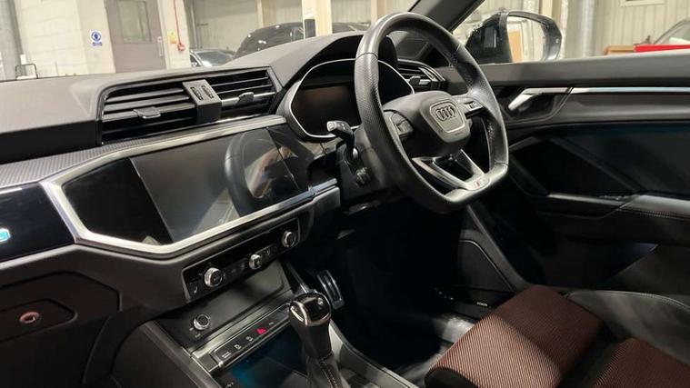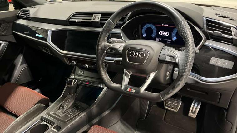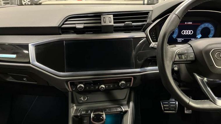 Audi connect safety and service (e-call), Audi drive select, Audi lane departure warning, Audi Virtual Cockpit - 10.25" display, Bluetooth interface, Camera based traffic sign recognition, MMI Navigation Plus with high resolution 10.1 inch touchscreen colour display, Power operated tailgate, Progressive steering, Service interval indicator, Smartphone interface includes wireless Apple carplay/Android Auto, Start stop system with recuperation, Voice control system with natural language interaction, Diesel particulate filter, Sports suspension, 2 USB-C ports with charge and data functions, 6 passive loudspeakers, DAB digital radio module, Acoustic windscreen, Auto dimming frameless rear view mirror, Diffuser grille in grained matt black, Diffuser trim in selenite silver, Electrically folding, adjustable and heated door mirrors with integrated LED side indicators and kerb view function for passenger side, Front and rear electric windows, Front fog lights, Front side air inlets in selenite silver, Front underbody protection in manhattan grey paint finish, High gloss black finish B and C pillars, LED headlights with LED daytime running lights, LED rear lights, LED third brake light, Privacy glass dark tinted rear and rear-side windows (from B-pillar backwards), Rain and light sensors, Rear side wing doors, Rear underbody protection in matt black, Rear wiper, Variable front intermittent wipers, 12V socket in rear centre console, 3 seat bench in 2nd row, 40:20:40 folding with manual adjustment for 60:40 forwards/backwards position and backrest angle, Adjustable rear seat bench/backrest with centre armrest and cupholder, Black cloth headlining, Dual zone electronic climate control, Front and rear black floor mats with contrast stitching, Front and rear headrests, Front and rear roof module including reading lights, Front centre armrest, Glove compartment lighting, Height and reach adjustable steering wheel, Illuminated door sill trims with S logo, ISOFIX child seat mounting for front passenger with airbag deactivation and outer rear seat including top tether attachment point for outer rear seats, Luggage compartment light right in white, Luggage compartment sill protection in stainless steel, Manual front seats with height adjustment, Perforated leather gearknob, Single front passenger seat, Stainless steel pedals, Black styling pack - Q3, Non smoking pack - Q3, 3x3 point rear seatbelts, 6 airbags - Driver, front passenger, curtain and side windows, Audi pre-sense front with pedestrain and cyclist recognition, Electromechanical parking brake, Electronic stabilisation control including ABS, ASR and EDL, Front seatbelt reminder, Hill descent control, Hill hold assist, Manual child lock in rear doors, Pre sense basic, Seatbelt monitoring, Tyre pressure warning, Warning triangle and first aid kit, Anti theft alarm, Anti theft wheel bolts, Immobiliser, Remote central locking, Black dashboard, Detail dashboard around MMI touch colour display in glass look, black with surround in aluminium look, Leatherette door armrest, Piano black inlay,