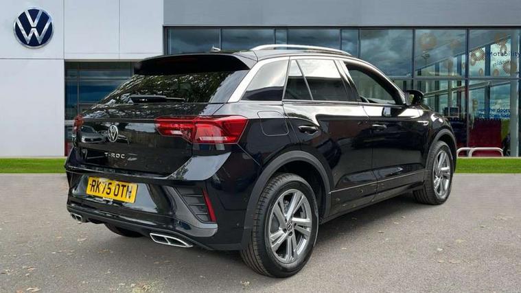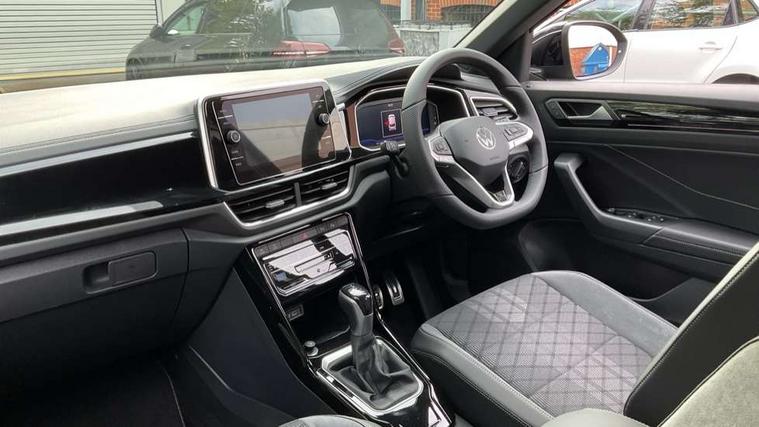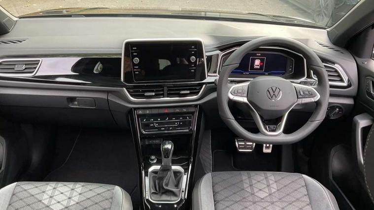 10.25" Digital cockpit pro, Advanced driver attention and drowsiness monitor, Emergency call service, Lane keeping system Lane Assist, Mobile phone interface, Modified key software - reduce switch off time for key status change to Long no motion, Online services, Park assist including front and rear parking sensors, Service interval indicator, Tailgate/trunk lid release from outside, Think blue trainer driver tips and journey analysis, Warning sound and light for front seatbelts unfastened, Wireless app connect, Battery regeneration during braking, Start/stop function with battery regeneration, DAB Digital radio, Diversity antenna for FM reception, Front and rear 6 speakers, Music playback - MP3, WMA and AAC files, Premium USB cable in choice of either Apple or Android smartphone compatibility, SD card slot, Simultaneous pairing of 2 compatible mobile devices, Title and cover art display, We Connect and We Connect Plus functionality, Auto dimming interior rear view mirror, Automatic hazard lights activation under emergency braking, Automatic headlight control with LED separate daytime running lights with coming/leaving home function, Body coloured exterior mirror housings and door handles, Electrically adjustable and heated door mirrors, Extended roof spoiler, Exterior mirrors aspherical on driver side, convex on front passenger side, External USB type C socket and charging sockets, Front windscreen wiper with intermittent wipe and 4 position delay, Heated rear window, LED 3rd brake light, LED rear combination lamps, LED rear number plate lights, Power windows with comfort operation and circuit breaker, Privacy glass for rear side windows and rear window, R-Line design body coloured bumpers, Rain sensor, Rear exhaust tailpipe, Rear fog light on one side and reversing lights on both sides, Rear side wing doors, Rear wash/wipe with intermittent wipe setting, Remote electrically foldable door mirrors, puddle lights and reverse activated passenger's door mirror, 12V power socket in centre console, 3 rear head restraints, 3 seat bench in 2nd row, 4 load lashing points in luggage compartment, Air care climatronic air conditoning system with active combination filter and 2-zone temperature control, Black roof lining, Chrome plated decorative trims, Chrome plated radiator grille inserts, air vent surrounds and light switch surrounds, Door and side trim panel with leatherette insert, Front + rear carpet mats, Front centre armrest, Front cupholders x 2, Front footwell illumination, Front reading light, Front scuff plates with R Line logo, Front seat back storage pockets, Glove compartment door with light, Instrument lighting, white adjustable panel illumination, Interior ambient lighting and surround lighting, Interior light delay, Isofix child seat preparation, Leather gearshift handle, Load-through provision with cup holder when folded down ('Unsplit rear seat bench, split folding backrest, with centre armrest), Luggage compartment lighting, Single front passenger seat, Stainless steel pedals, Storage compartment in left and right luggage area, Storage compartment in rear doors, Storage compartments in driver and front passenger doors, Sunvisors with illuminated vanity mirrors, Variable boot floor, height adjustable and removable, Driver assistance pack without proactive passenger protection - T-Roc, 3 point height adj front seatbelts + pretensioners, 3 point seatbelts in outer rear with ECE label, ABS, Child locks on rear doors, City emergency braking and pedestrian monitoring, Driver and front passenger airbag with front passenger airbag deactivation, Driver and front passenger safety-optimised head restraints, Drivers seatbelt reminder, Electronic parking brake, Electronic Stability Control (ESC) inc EDL (Electronic Differential Lock) and ASR (Traction Control), Front and rear passengers curtain airbag system including front side airbags, Hill start assist, Predictive pedestrian protection, Rear disc brakes, Two tone horn, Tyre pressure loss indicator, Volkswagen roadside assistance, Piano black decorative inserts in dashboard and front door trim panels, Trims for alloy wheels,