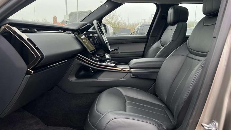 13.1" Touchscreen, 3D 360 degree surround camera with wade sensing, Adaptive cruise control with steering assist, Android Auto, Apple car play, Blind spot assist, Bluetooth connectivity streaming, Driver condition response, Eco mode, Electric power assisted steering (EPAS), Interactive Driver display instrument cluster, Lane departure warning system, Lane keep assist, Occupant protection assist, Push button start, Rear collision monitor, Rear traffic monitor, Remote, Traffic sign recognition with adaptive speed limiter, Trip computer, Wireless device charging with phone signal booster, 8 speed automatic transmission, Adaptive dynamics, All wheel drive system, Automatic access height, Home charging cable, Public charging cable, Terrain Response 2, Twin speed transfer box, DAB Radio (Digital Audio Broadcasting), Incontrol protect - SOS emergency call with automatic collision detection, optimised assistance call and Incontrol remote app essential, Pivi pro connected, USB/aux input socket, Adaptive brake lights, Automatic headlight levelling, Automatic headlights, Centre high mounted stop light, Electric heated/power fold memory door mirrors with approach lights and auto dimming driver side, Electric windows with one touch open/close and anti trap, Flush deployable exterior door handles, Follow me home lighting, Front and rear recovery eyes, Headlight power wash, Heated rear window, Heated washer jets, Heated windscreen, Integrated twin tailpipes, LED tail lights, No badges, Rain sensing windscreen wipers, Rear animated directional indicators, Rear fog lights, Rear side wing doors, Rear wash/wipe, Remote window closing, Side repeater indicators in mirror, Trailer stability assist, Winter wiper park position, 3 seat bench in 2nd row, 60:40 seats with power recline and loadthrough, Air quality sensor, Auto air recirculation, Centre console with armrest, Customer configurable single point entry, Driver's footrest, Easy boot loading, Electric adjustable steering column, Front and rear cupholders, Front door storage space, Front head restraints, Front map lights, Front seat back map pockets, Front stowage pocket, Front/rear passenger grab handles, Gearshift paddles, Heated steering wheel, Isofix child seat preparation, Loadspace cover, Loadspace Hook, Loadspace light, Loadspace mounting provisions, Lockable glovebox, Luggage tie-downs in loadspace, Multifunction steering wheel, Pollen filter, Power socket, Rear centre armrest, Rear head restraints, Rear ISOFIX, Seat colour match console, door armrests and seatbelts, Single front passenger seat, Three 12V accessory power outlets, Upper secondary glovebox, Online pack with data plan - Range Rover Sport, 3 point seatbelts on all seats, Anti-lock braking system (ABS), Brake pre-fill technology, Configurable autolock, Cornering brake control (CBC), DSC - Dynamic Stability Control, EBD - Electronic brakeforce distribution, Electric parking brake, Electronic traction control, Emergency braking, Front seatbelt pretensioners, Front side airbags, Height adjustable front seatbelts, Hill descent control, Hill launch assist, Low traction launch, Passenger seat occupant detector with front airbags, Power operated child locks, Roll stability control, Seatbelt warning, TPMS (Tyre pressure monitoring system), Immobiliser, Intrusion sensor, Keyless entry, Locking wheel nuts, Perimetric and volumetric anti theft alarm, Remote locking, Noble chrome interior finishers,