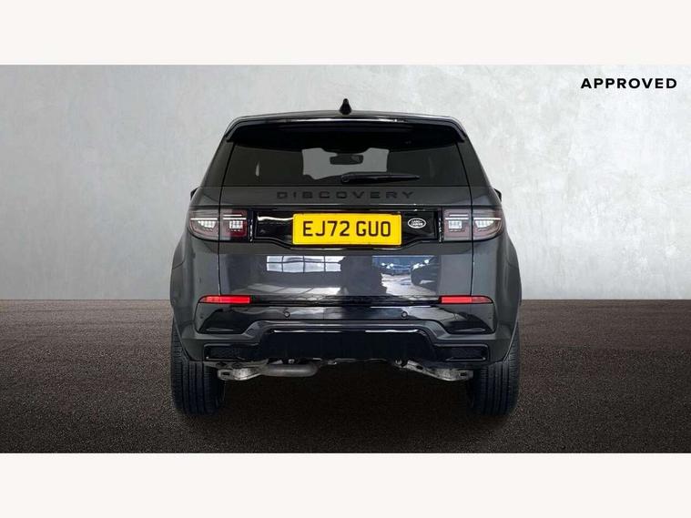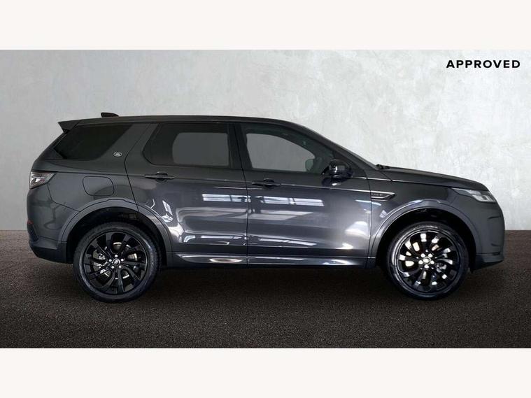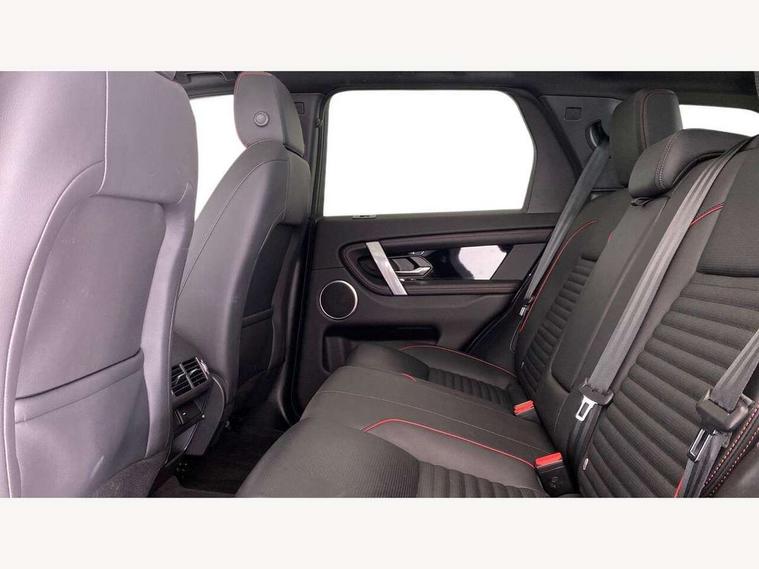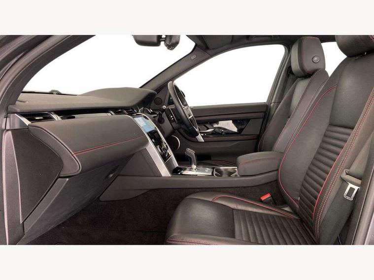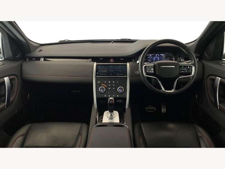 10" touch screen, Adaptive cruise control, Android Auto, Apple CarPlay, Driver condition monitor, eCall emergency call system, Front and rear parking aid, InControl remote premium, Lane keep assist, Locking fuel flap, PAS, Pivi Pro connected navigation system with upgraded Infotainment, Powered tailgate/boot lid, Push button start, Rear collision monitor, Service interval indicator, Traffic sign recognition with adaptive speed limiter, Trip computer, Wade Sensing, All terrain progress control, Coil suspension system, Diesel particulate filter, Dynamic stability control, Terrain Response 2, Bluetooth connectivity including audio streaming, Digital Audio Broadcast radio-DAB, Steering wheel mounted audio controls, 3rd brake light, Automatic headlights, ClearSight interior rear view mirror, Electric front/rear windows, Electric heated/power fold door mirrors with approach lights and auto dimming driver side, Fixed panoramic sunroof with powered sunblind, Front and rear recovery eyes, Heated rear window, Heated windscreen including heated washer jets, No badges, R Dynamic badge, Rain sensing windscreen wipers, Rear fog lights, Rear side wing doors, Rear wing door, Rear wiper, 5 seats, Bright metal pedals, Centre console with armrest, Footwell lights, Front and rear grab handles, Front passenger isofix child seat attachment, Loadspace cover, Loadspace light, Overhead lighting console, Overhead stowage for sunglasses, Rear headrests, Satin chrome gearshift paddles, Sunvisors with illuminated vanity mirrors, Tilt/reach adjustable steering wheel, Black exterior pack - Discovery sport, Online pack with data plan - Discovery, 3 point seatbelts on all seats, ABS, Brake hold function, Child locks on rear doors, Collision mitigation braking system, Cornering brake control (CBC), Driver/Front Passenger airbags, Drivers knee airbag, Electronic brake force distribution, Electronic parking brake, Emergency brake assist, ESP + traction control, Hill descent control, Hill launch assist, Pedestrian airbag system, Rear seat ISOFIX, Roll stability control, Side and curtain airbags for front and 2nd row seats, Trailer stability control, Tyre pressure monitoring system, Battery Back Up System (BBUS) with tilt sensor, Global lock and unlock switch on driver door, Intrusion sensor, Keyless entry, Locking wheel nuts, Centre stack rails in noble chrome,