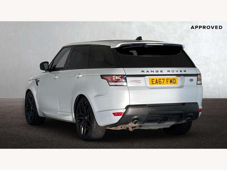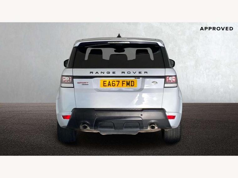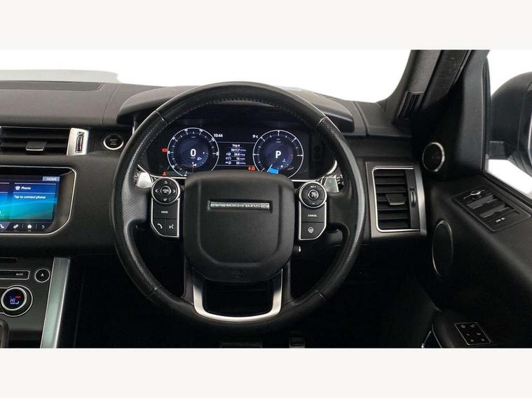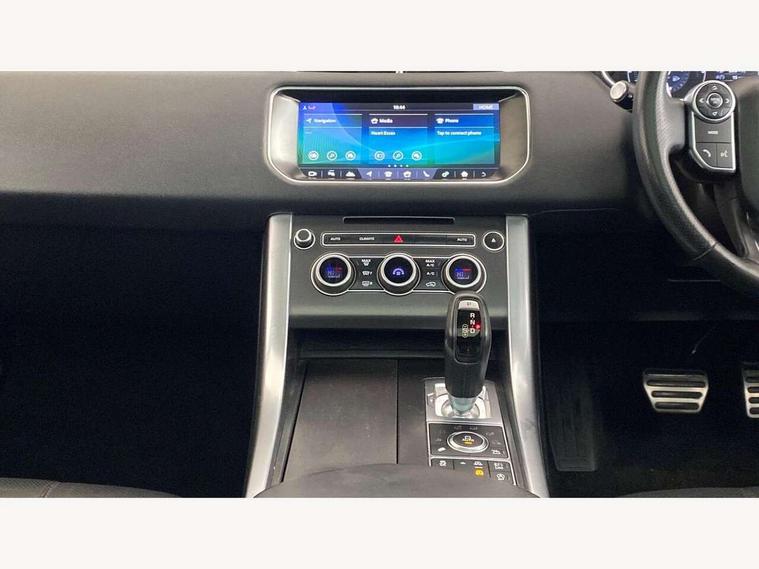 Bluetooth telephone connection, Dynamic response, Front parking aid with visual display, Gesture tailgate, HDD Premium navigation including voice control, TMC with touch screen and media storage, InControl secure, Mist sensor, Push button starter, Rear park distance control, Speed sensitive power steering, TFT Virtual Instrument Panel, Traffic sign recognition, Trip computer, Adaptive dynamics, All terrain progress control, Diesel particulate filter, Electronic air suspension, Terrain Response 2 Auto, Terrain Response 2 with dynamic program, Twin speed transfer box, Bluetooth audio streaming, DAB Digital radio, InControl protect, USB/aux input socket, Adaptive brake lights, Auto dimming rear view mirror, Daytime running lights, Door/quarter lights in toughened plate glass, Electric front/rear windows/one touch operation, Electric heated, adjustable, folding door mirrors with memory + approach lamp, Follow me home headlights, Front fog lights, Gloss black exterior trim, Headlight washers, Heated rear window, Heated washer jets, Heated windscreen, Illuminated aluminium treadplates with Range Rover lettering, Laminated front side windows, Laminated windscreen, LED rear lamps, Rain sensor windscreen wipers, Rear wash/wipe, Remote window closing, Trailer stability assist, Twin bright tailpipes, 2 way active front head restraints, 2 way rear head restraints, Auto air recirculation, Centre armrest with cubby box, Climate control memory, Driver's footrest, Front and rear cupholders, Front door storage bin, Front map lights, Front seat back map pockets, Front stowage pocket, Front/rear passenger grab handles, Glovebox, Isofix child seat preparation, Luggage compartment lighting, Multifunction steering wheel, Oxford perforated leather, Pollen filter, Premium Noble Plated Paddle Shift, Reach/rake electric adjustable steering column + entry/exit tilt away, Rear centre armrest, Roller blind loadspace cover, Sports pedals, Three 12V accessory power outlets, InControl connect Pack - Range Rover Sport, 3 point seatbelts on all seats, ABS + EBD + EBA, Auto lock system when vehicle in motion, Auto locking differential, Autonomous emergency braking, Cornering brake control (CBC), Curtain airbags, DSC - Dynamic Stability Control, Dual stage driver/passenger airbags, Electric child locks, Electronic parking brake, Electronic traction control, Front seatbelt pretensioners, Front side airbags, Height adjustable front seatbelts, Hill descent control, Low traction launch, Roll stability control, Seatbelt warning, Torque vectoring brake, Tyre pressure monitoring system, Keyless entry, Locking wheel nuts, Perimetric and volumetric anti theft alarm, Remote locking,