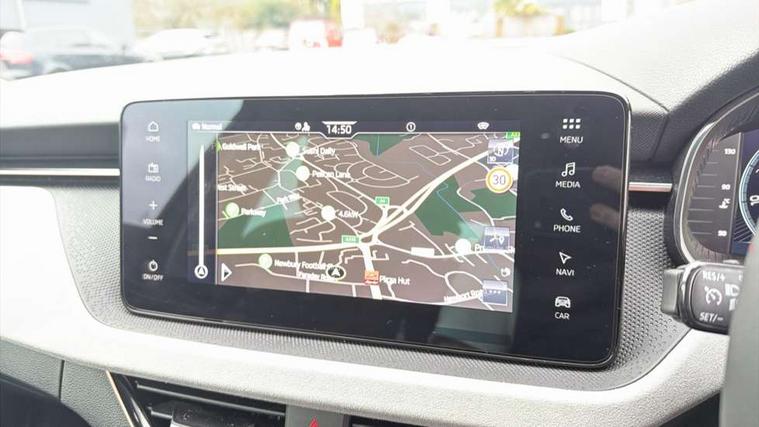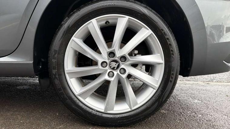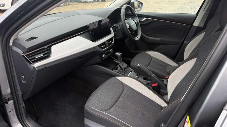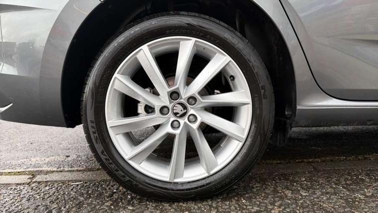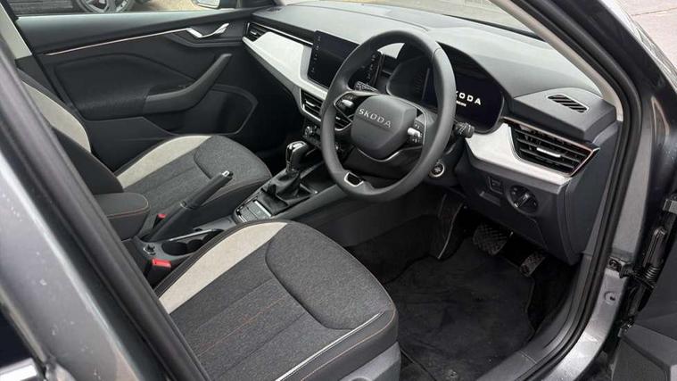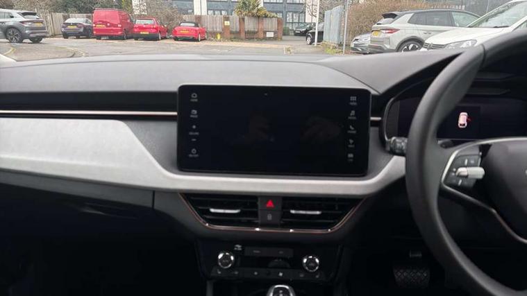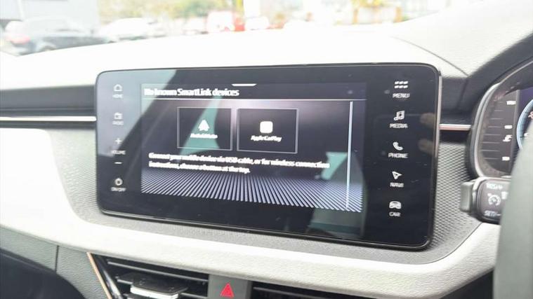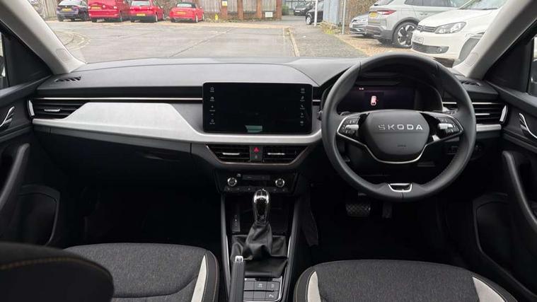 Advanced driver attention and drowsiness monitor, Bluetooth, e-Call (emergency call), Front assist system, PAS, Rear parking sensors, Rear view camera, Speed limiter, Tailgate, Traffic sign recognition, Virtual Cockpit - 10.25" digital display, Voice control system, Wireless smartlink, 4 USB C ports, 8 Speakers, 9.2" Skoda navigation display, DAB radio, Auto dimming rear view mirror, Automatic headlight control with manual coming and leaving home feature, Automatic intermittent wipers, Body colour bumpers, Body colour door mirrors and handles, Chrome moulding around grille, Chrome window frames, Front and rear electric windows, Heated rear window, LED 3rd brake light, LED daytime running lights, LED high beam, LED low beam, Light sensors, Privacy glass, Rear LED fog light, Rear side wing doors, Rear wiper, Tinted windows, Unique dark chrome design logo on alloy wheels, 12V socket in luggage compartment, 3 seat bench in 2nd row, Ambient lighting in white/red, Black / Copper armrest stitching, Cargo elements, Chrome inner door handles, Copper hotstamping, Door inserts in accent black, Driver and passenger sun visors with vanity mirror, Dual zone climate control, Front and rear roof lights, Front centre armrest, Front head restraints, Glasses storage in roof liner, Height adjustable driver seat, Height adjustable passenger seat, Ice scraper, Illuminated glove compartment, Inner circulation control with pollen filter, ISOFIX for front passenger seat, Isofix preparation for back seats, Leather gearknob and handbrake lever, Lodge cloth upholstery, Luggage net under rear parcel shelf, Manual lumbar support for front seats, Net package and top tether hooks in boot space, Pocket on the back of both front seats, incl. mobile phone pockets, Rear centre armrest, Single front passenger seat, Skoda lettering on steering wheel, Textile floor mats, Third rear headrest, Ticket holder, Top tether for front passenger seat, Umbrella in driver's door, Convenience pack without rear camera - Scala, 3x3 point rear seatbelts, ABS, Child locks, Curtain airbags and front side airbags, Disc brakes, Driver and front passenger airbags, ESP, Hill hold control, Manual leather parking brake, One tone horn, Passenger airbag switch off function, Seatbelt reminder for driver and front passenger, Tyre pressure monitoring system, Anti theft alarm system with interior monitoring, backup horn and towing protection, Anti-theft wheel bolts, Remote central locking with 2 remote folding keys, SAFE function for remote central locking, Decorative inserts,