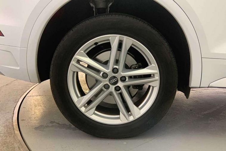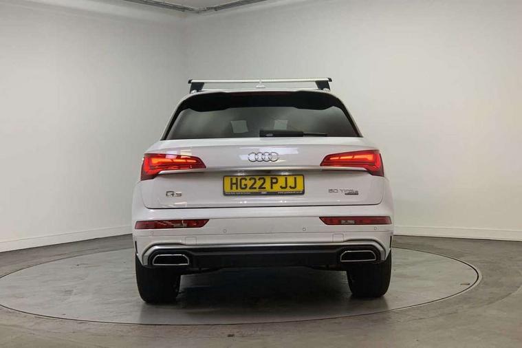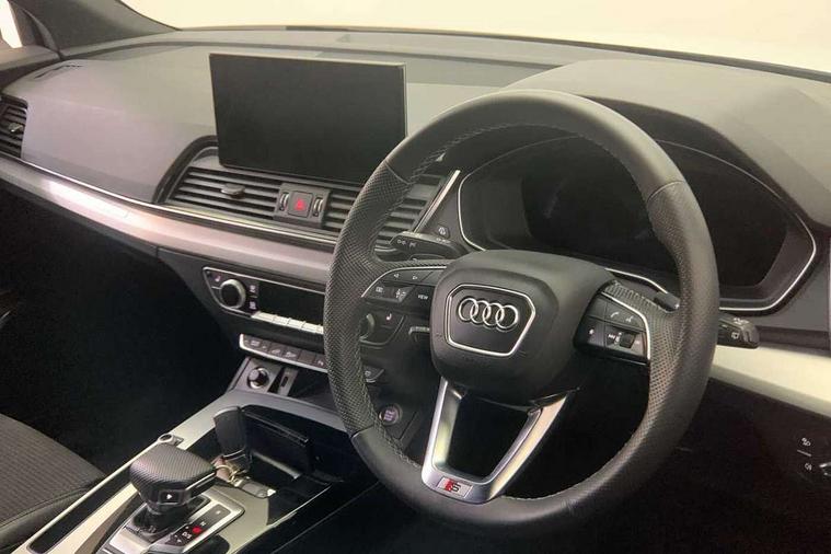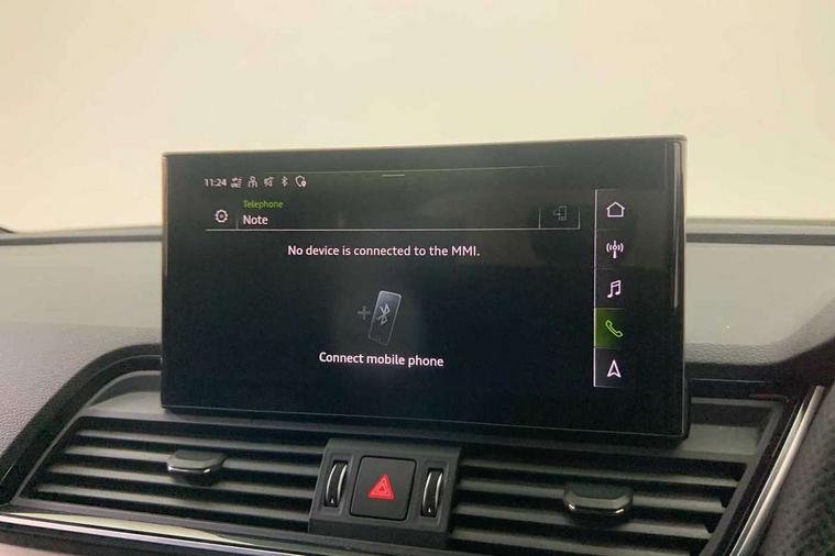 Audi connect safety and service (e-call), Audi connect with Amazon Alexa Integration, Audi drive select, Audi virtual cockpit plus with 12.3" screen and three different layout designs, Audi wireless smartphone interface, Automatic start-stop system with coasting functionality and efficiency programme, Bluetooth interface, Electro - mechanical power assisted steering, MMI navigation plus with 10.1" touch screen, Power tailgate, Reversing camera, Service interval indicator, Voice control system with Audi hotword activation "Hey Audi", 3 pin 10 amp domestic charging cable, 7.4 kW onboard charger, Dynamic suspension, Quattro on demand, Type 2 mode 3 22kW 32 amp charging cable, Type 2 socket for AC charging, 2 x USB charging port with aux input socket, DAB Digital radio, 3rd brake light, Acoustic windscreen, Aluminium roof rails, Audi matrix LED headlights with dynamic front and rear indicators, Auto dimming door mirrors, Auto dimming rear view mirror, Automatic headlights and windscreen wipers, Body colour bumpers, Body colour door mirrors, Body colour rear diffuser with matt aluminium silver surrounds, Body colour underbody protection, Chrome plated exhaust trims, Daytime running lights, Door sills in Selenite silver, Electric adjustable/heated/folding door mirrors, Front air inlet surrounds in aluminium, Front and rear electric windows, Front radiator grille in honeycomb design, Headlight washers, Lower bumpers painted in contrast Manhattan grey, Rear chrome trim strip below lights, Rear privacy glass and rear side windows, Rear side wing doors, Rear wiper, Roof bars, S Line badges on the front wings, S Line front and rear bumpers, S Line rear spoiler, S Line side skirts, 3 rear headrests, 40:20:40 split folding 3 rear bench seat in 2nd row with rear centre armrest, Black cloth headlining, Comfort front centre armrest, Contrast stitching on seats, steering wheel and gear lever gaiter, Deluxe 3 zone electronic climate control, Front/rear floor mats, Gear lever in black leather, Heated front seats, Height adjustable front head restraints, Height/reach adjustable steering column, Illuminated door sill trims with S logo, ISOFIX child seat mounting and top tether, Manual seat adjustment with 4-way electric lumbar support, Rear seat bench plus, Single front passenger seat, Sunvisors with vanity mirrors, Trunk roller cover, High gloss pack - Q5, LED interior light pack - Q5, 3 point seatbelts on all seats, 6 airbags - Driver, front passenger, curtain and side airbags, Electrically operated child locks on rear doors, Electromechanical parking brake, Electronic stabilisation control including ABS, ASR and EDL, Front passenger airbag deactivation, Hill descent control, Hill hold assist, Multi collision brake assist, Pop-up bonnet for pedestrian protection, Pre sense city, Seat belt force limiter, Seatbelt monitoring, Tyre pressure warning, Warning triangle and first aid kit, Anti theft alarm, Anti-theft wheel bolts, Keyless Go access/ignition system, Remote central locking, Matt brushed aluminium inlays, Tool kit, Tyre repair kit,