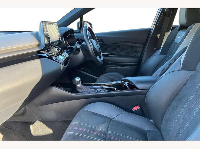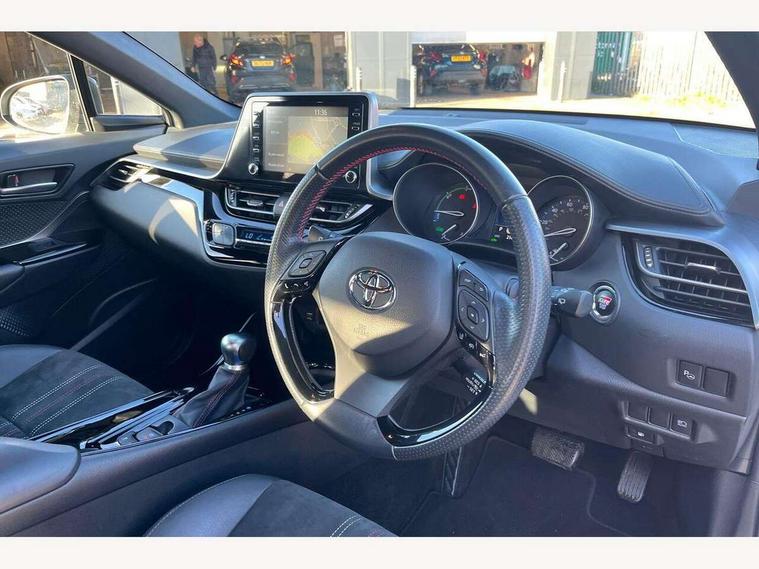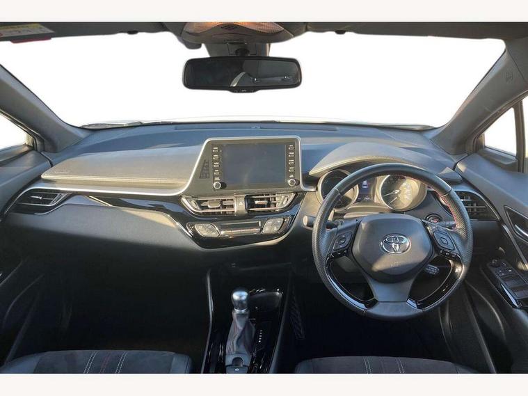 4.2" coloured TFT screen for multi-information display, Adaptive cruise control, Bluetooth connectivity, Electric power steering, Hybrid system indicator, Lane departure alert with steering control, Remote boot door release in cabin, Remote boot door release in key, Reversing camera, Road sign assist - RSA, Simple Intelligent parking assist, Touch 2 Go navigation system, Trip computer, Voice recognition, Vehicle Stability Control (VSC), 6 speakers, AM/FM radio, DAB Radio (Digital Audio Broadcasting), Toyota touch 2 multimedia system with 8" display, USB connector, Wi-fi connectivity, Adaptive front light system, Adaptive LED Headlights, Anti-jam protection on power windows, Auto high beam, Auto up and down function on all power windows, Automatic headlight levelling, Automatic headlights, Automatic headlights cut-off, Black and body coloured rear bumper, Black upper front grille, Body colour door handles, Body colour door mirrors, Body coloured front bumper, Boot door release with push button, Chrome front lower bumper, Electric heated door mirrors, Follow me home headlights, Front and rear power windows, Front spoiler lip in black, Hard tonneau cover, Honeycomb lower front grille, LED daytime running lights, LED fog lights, LED front light guide, LED High mounted stop light, LED rear brake lights, LED rear combination lights, Noise reduction layer on front windows and windscreen, Power adjustable door mirrors, Privacy glass, Rear sequential indicators, Rear spoiler, Rear tailgate, Rear window defogger, Rear window wiper, Shark fin antenna, UV-filter on driver and passenger windows, UV-filter on rear windows, 12v power outlet - front, 3 rear headrests, 3 spoke perforated leather steering wheel, 60/40 split folding rear seat, Adjustable rear headrests, Adjustable speed limiter switch on steering wheel, Assist grips front and centre pillar, Audio and telephone switches on steering wheel, Black front door assist grips, Blue ambient lighting on front cup holders, Blue ambient lighting on front doors, Boot light, Chrome interior door handles, Driver and front passenger personal light, Driver and front passenger Whiplash Injury Lessening seats, Driver and passenger seatback pockets, Dual zone automatic air conditioning, Fabric upholstery, Front cupholders, Front head restraints, Front sports seats, Glovebox with internal light, Heated driver and front passenger seats, Hooks for luggage holding net, Humidifying Nanoe air purifier, Illuminated entry system, Isofix attachments on rear seats, Leather gearshift, Light on driver sun visor, Light on passenger sun visor, Manual telescopic steering wheel, Manual tilt steering wheel, Manually height adjustable driver seat, Manually height adjustable front passenger seat, Manually reclining driver seat, Manually reclining front passenger seat, Manually sliding driver seat, Manually sliding front passenger seat, Microphone on front personal light, Mirror on driver sun visor, Mirror on passenger sun visor, Multimedia switches on steering wheel, Pollen filter, Power adjustable lumbar support on driver seat, Shopping bag hooks, Slow opening on lower glovebox, Voice recognition switch on steering wheel, Tech with parking sensor pack - C-HR, 16 Disk front wheel brake, 3x3 point rear seatbelts, ABS+EBD+Brake assist, Electronic parking brake, Front and rear seatbelt reminder, Front passenger airbag on/off switch, Hill start assist control (HAC), Pre collision system with pedestrian detection, Pre-tensioners and force limiters, Rear door child safety locks, SRS Airbags - Driver + Front passenger, front side, front and rear curtain and driver's knee airbags, Toyota safety sense, Tyre pressure monitoring system, Acoustic vehicle alert system (AVAS), Glass-breaking alarm sensors, Immobiliser, Intrusion alarm, Intrusion sensor, Motion sensor alarm, Power door locks, Power passenger window lock, Remote central locking, Black lower dashboard, Black upper dashboard, Piano black console, Silver deco line on upper dashboard, 19" Black machined alloy wheels, Tyre repair kit,