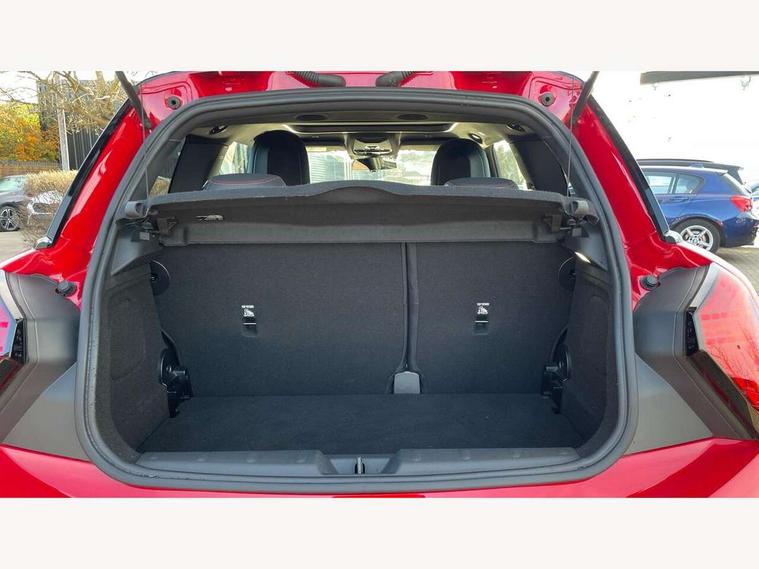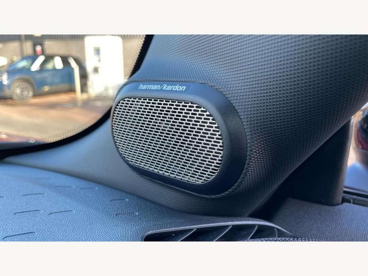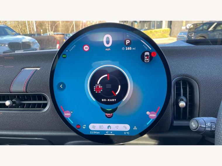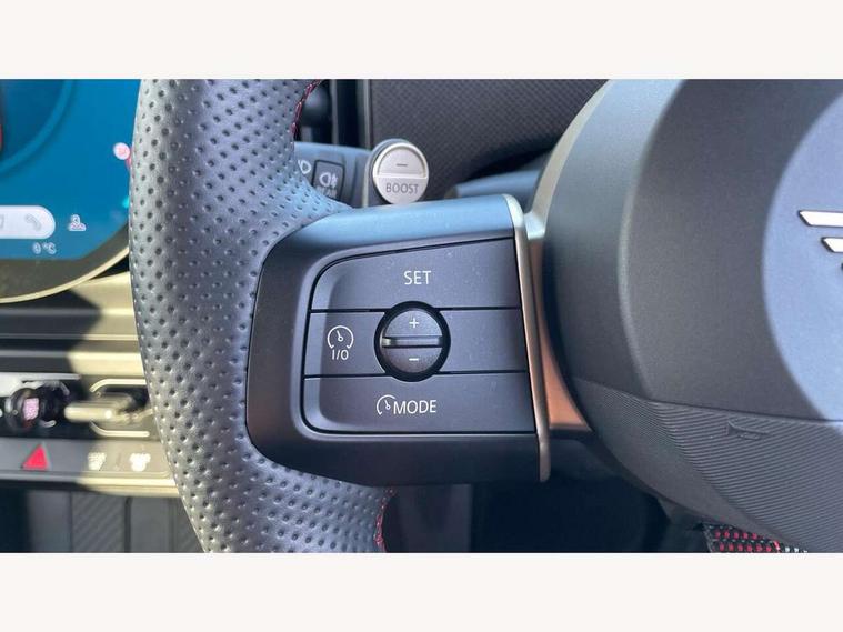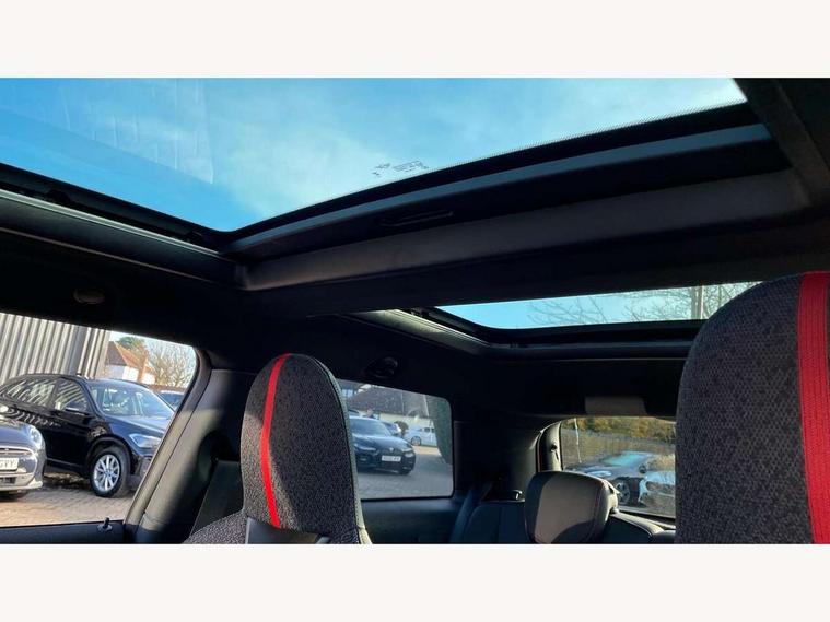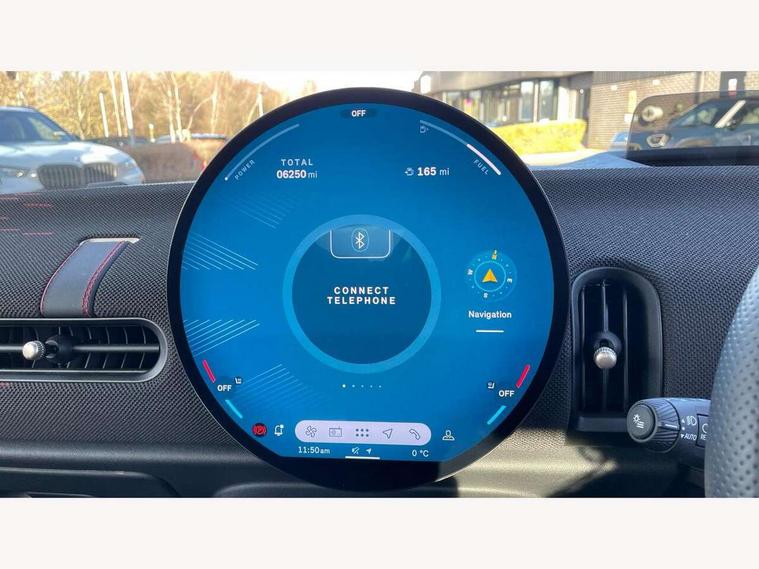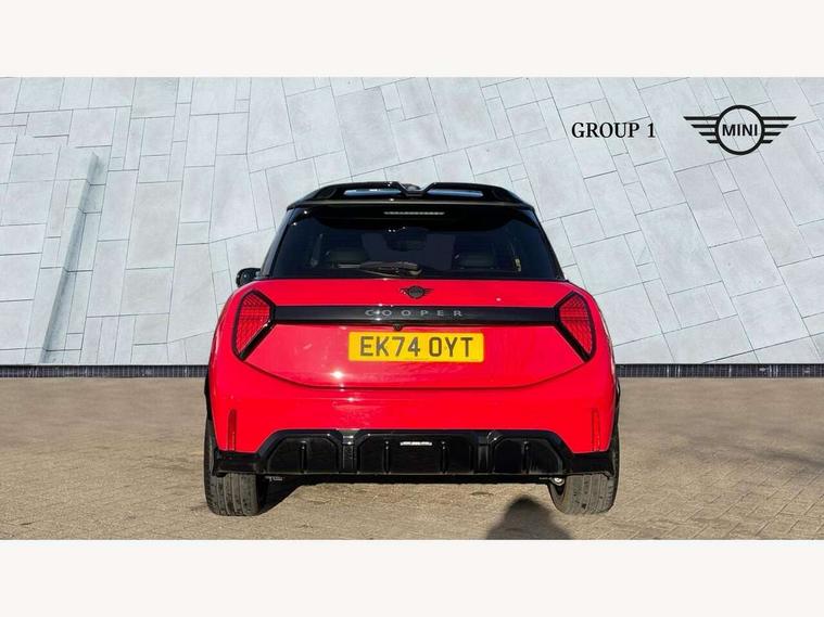 Central toggle bar, Circular OLED Screen, Compatible mobile phone bluetooth with audio streaming, Cruise control, Digital instrument cluster, Electro-mechanical speed dependant steering assistance, Emergency call service, MINI Experience Modes, Mini navigation system, On board computer, Service interval indicator, 7 speed steptronic sport transmission with double clutch, Adaptive suspension, DAB Digital radio, Personal eSim, Auto headlights, Electric adjustable heated door mirrors, Electric front windows, Front and rear apron, Heated rear window, Heated windscreen washer jets, High gloss black wheel arches, High gloss hexagonal patterned grille surround, JCW body kit, LED daytime running lights, LED Headlights, LED indicator lights, LED rear lights, Rain sensor window wipers, Rear fog lights, Rear roof spoiler with airblades, Rear window wiper, 2 seat bench in second row, 2 zone automatic air conditioning, 60/40 rear seat bench, Ambient lighting, Black lower band in high gloss, Cupholders, Dark headliner, Floor mats, Front and rear head restraints, Front compact armrest, Heated steering wheel, Height adjustable passenger seat, Lidded storage box in Black/Red knit, Luggage compartment lighting, Partially perforated vescin steering wheel with red accent, black/red decorative strap, Single front passenger seat, Steering wheel paddle shift, Sunvisors with vanity mirrors, Vescin/Cord upholstery, Driving assistant pack - Cooper Hatchback, Park assistant pack - Cooper Hatchback, 3 point seatbelts on all four seats, 6 Airbags - front, side, head and seat belt tensioners, Acoustic pedestrian protection, Anti-lock braking system (ABS), Brake caliper in Black with JCW badge, DSC - Dynamic Stability Control, Electronic parking brake, Front and rear disc brakes, Front ISOFIX (iSize), Front passenger airbag deactivation, JCW Sport Brakes, Traction control, Tyre pressure monitoring system, Alarm, Immobiliser, Remote central locking, Black/Red decorative dash strap, JCW Black/Red dashboard knit, Tyre repair kit,