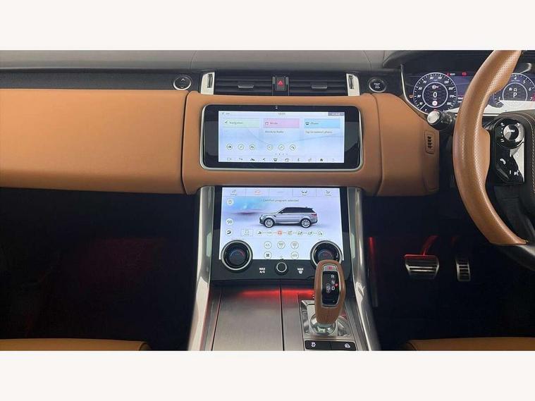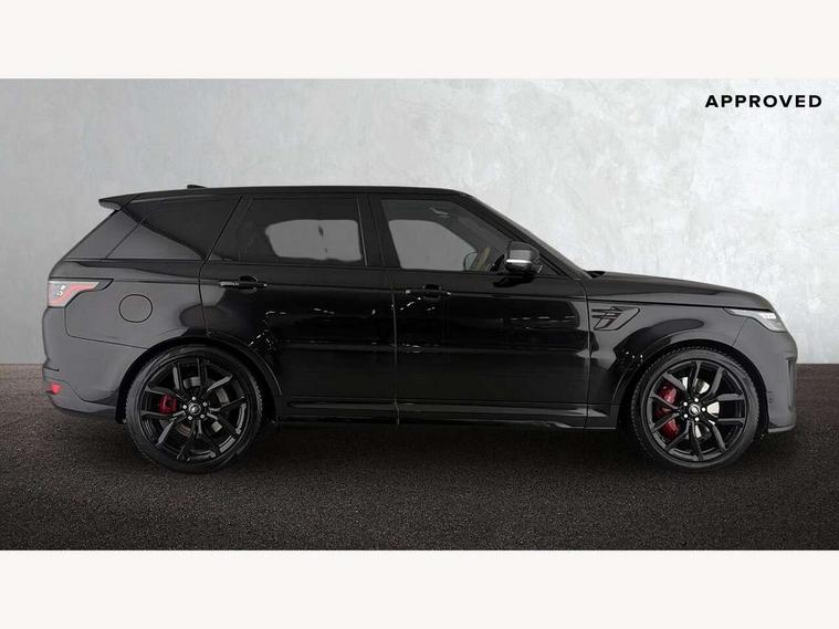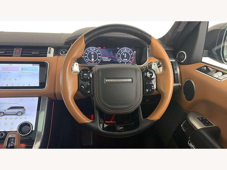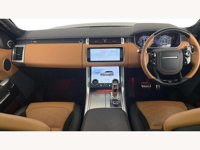 360 Parking aid, All Terrain Info Centre, Android Auto, Apple car play, Bluetooth connectivity, Clear exit monitor, Driver condition monitor, Electric power assisted steering (EPAS), Incontrol apps in vehicle touchscreen, Interactive Driver display instrument cluster, Mist sensor, Navigation pro system with 10" touch screen, app interface and media storage, Powered gesture tailgate/boot lid, Pro services and wifi hotspot, Push button start, Rear traffic monitor, Remote premium - Upgraded Incontrol remote app including remote climate control (engine dependent), remote lock + Unlock and remote beep + flash, Touch pro duo system, Traffic sign recognition with adaptive speed limiter, Trip computer, Adaptive dynamics, All terrain progress control, Configurable dynamics, Electronic active differential with brake torque vectoring, Gradient release control (GRC), SVR sports suspension with dynamic response (active roll control), Terrain Response 2 with dynamic program, Twin speed transfer box, Bluetooth audio streaming, DAB Radio (Digital Audio Broadcasting), Incontrol protect - SOS emergency call with automatic collision detection, optimised assistance call and Incontrol remote app essential, USB/aux input socket, Acoustic front and toughened rear side glass, Acoustic laminated front windows, Active exhaust system with integrated exhaust mounted quad tailpipes, Adaptive brake lights, Auto dimming interior rear view mirror, Automatic headlights, Body coloured side sills and bumpers corners, Centre high mounted stop light, Electric windows with one touch open/close and anti trap, Electrical towing preparation, Follow me home lighting, Front and rear recovery eyes, Headlight power wash, Heated rear window, Heated windscreen includes heated washer jets, Illuminated metal treadplates with brand name script, LED rear lamps, Power fold, auto-dimming, heated door mirrors with memory and approach lights, Rain sensing windscreen wipers, Rear fog lights, Rear side wing doors, Rear wash/wipe, Remote window closing, Side repeater indicators in mirror, SVR badge, SVR exterior styling, Switchable sports exhaust, Trailer stability assist, Unique light weight exhaust system, 16 way driver/passenger electrically adjustable SVR performance seats with memory, 2 way rear head restraints, 3 seat bench in 2nd row, 4 way lumbar support with memory function, 60/40 split folding rear seat, Aluminium gear shift paddles, Auto air recirculation, Bright metal foot pedals, Centre console with armrest, Climate control memory, Configurable Ambient interior lighting, Customer configurable single point entry, Driver's footrest, Extended leather upgrade includes door top rolls and leather instrument panel mid section, Front and rear cupholders, Front and rear premium carpet mats, Front door storage space, Front map lights, Front seat back map pockets, Front stowage pocket, Front/rear passenger grab handles, Heated steering wheel, Integrated front head restraints, Isofix child seat preparation, Loadspace light, Loadspace mounting provisions, Lockable glovebox, Multifunction steering wheel, Pollen filter, Power socket, Reach/rake electric adjustable steering column + entry/exit tilt away, Rear centre armrest, Rear ISOFIX, Roller blind loadspace cover, Single front passenger seat, Sports pedals, SVR leather steering wheel, SVR Performance seats, Three 12V accessory power outlets, Smartphone pack - Range Rover Sport, 3 point seatbelts on all seats, Anti-lock braking system (ABS), Brake pre-fill technology, Cornering brake control (CBC), Curtain airbags, Customer configurable autolock, DSC - Dynamic Stability Control, Dual stage driver/passenger airbags, EBD - Electronic brakeforce distribution, Electric parking brake, Electronic traction control, Emergency braking includes city, urban AEB and pedestrian, Front seatbelt pretensioners, Gradient acceleration control, Height adjustable front seatbelts, High speed emergency braking, Hill descent control, Hill launch assist, Low traction launch, Passenger seat occupant detector with front airbags, Power operated child locks, Roll stability control, Seatbelt warning, TPMS (Tyre pressure monitoring system), Immobiliser, Intrusion sensor, Keyless entry, Locking wheel nuts, Perimetric and volumetric anti theft alarm, Remote locking,