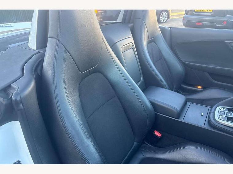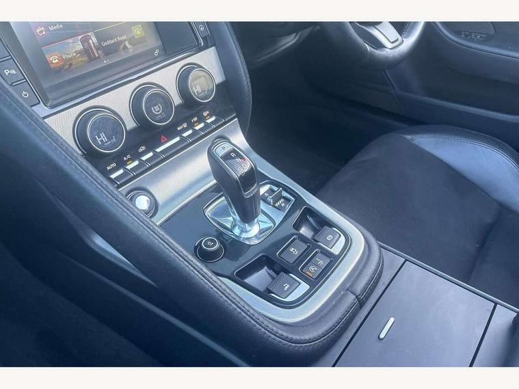 8" touch screen, Bluetooth telephone connectivity, InControl remote premium, Mobile App interface, Navigation system, PAS, Rear parking aid with visual display, Traffic messaging channel, Trip computer, Sports suspension, Audio remote control, DAB Digital radio, InControl app, USB/aux input socket, Auto dimming rear view mirror, Automatic headlights, Bi-Xenon headlights with LED day running lights, Body colour deployable rear spoiler, Body coloured bumpers, Bonnet louvres, Electric adjustable heated door mirrors, Electric front windows, Headlight washers, LED tail lights, Rain sensor windscreen wipers, Satin black grille, Tinted glass, Twin exhaust pipes, Wind deflector, 12V socket in glovebox, 2 X front 12v power sockets, Air vents on dashboard, Front centre armrest, Front cupholders, Front headrests, Interior stowage net, Jaguar sense, Leather door trim, Lockable storage compartment, Lumbar support, ABS + EBD + EBA, Driver/Front Passenger airbags, DSC - Dynamic Stability Control, Dynamic mode, Electronic parking brake, Front/rear seatbelt pre-tensioners, Pass airbag/seat occupancy detector, Passenger airbag off kit, Pedestrian contact sensing and deployable bonnet, Seatbelt reminder for driver and front passenger, Side airbags, Tyre pressure monitoring system, Deadlocks, Drive away door locking, Engine immobiliser, Keyless Start, Locking wheel nuts, Perimetric and volumetric anti theft alarm, Remote central locking, Two stage unlocking, Valet mode,