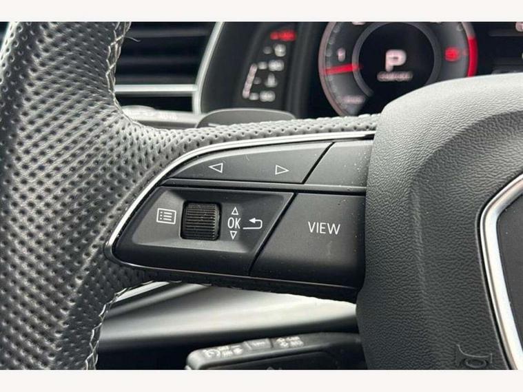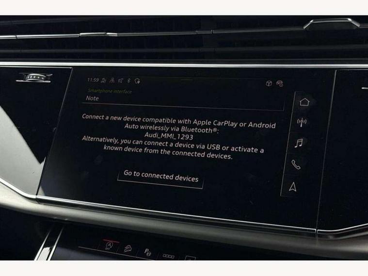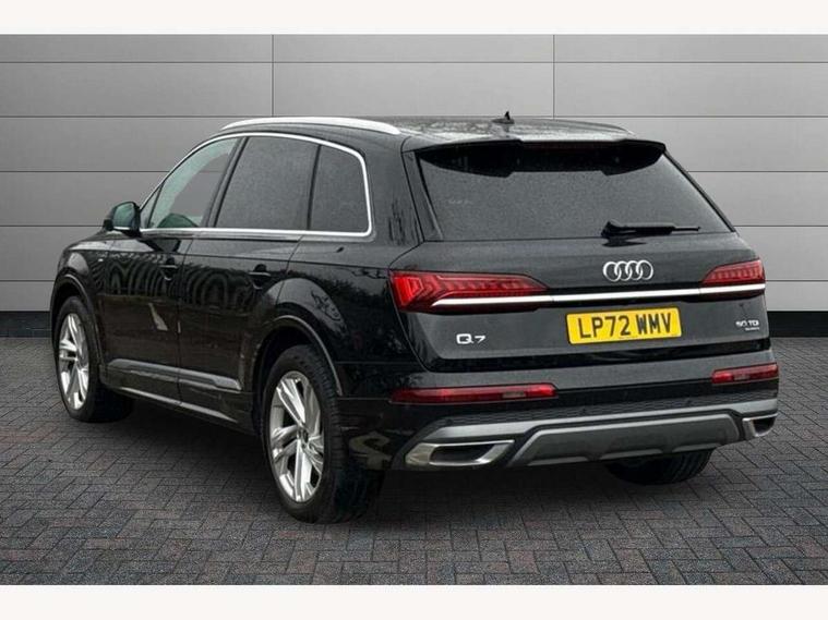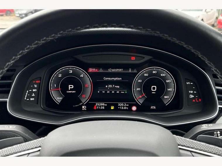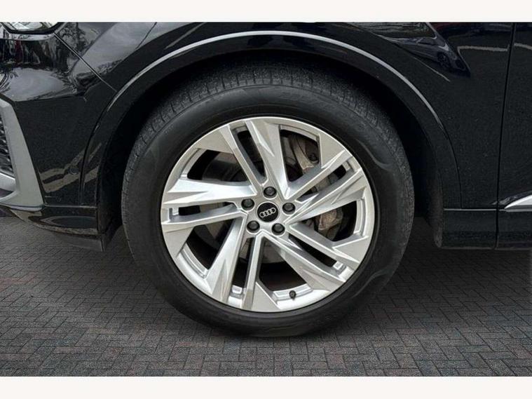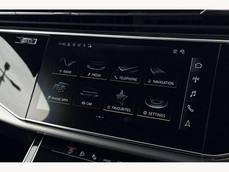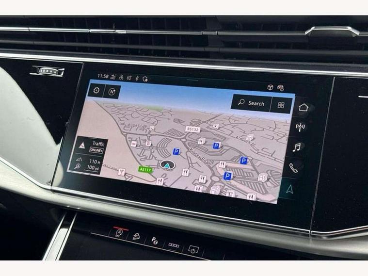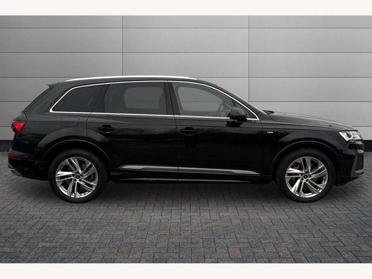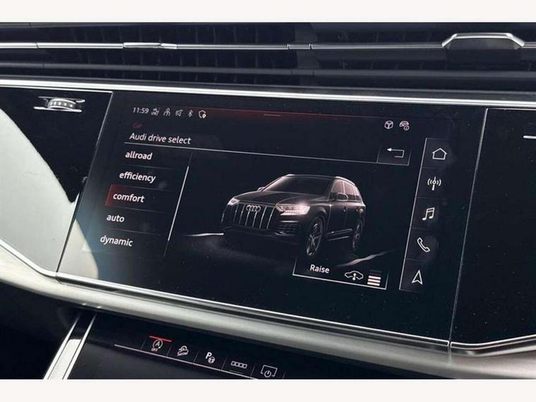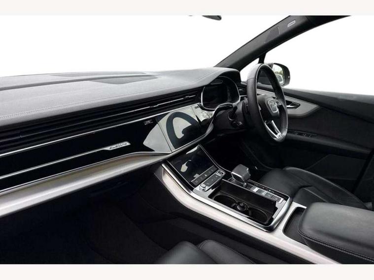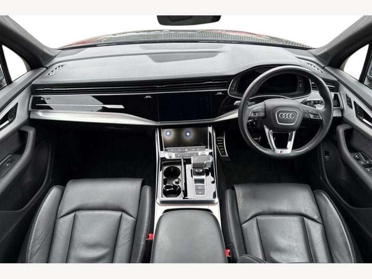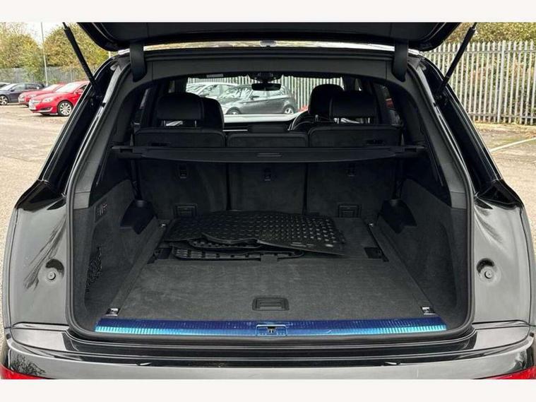 Audi connect safety and service (e-call), Audi connect with Amazon Alexa Integration, Audi drive select (Auto, Comfort, Dynamic, Efficiency, Individual, Off-road and All road), Bluetooth interface, Camera based traffic sign recognition, Electromechanical steering, MMI navigation plus with MMI touch screens includes 10.1" and 8.6" screens with haptic feedback, Natural voice recognition, Parking system plus with 360 degree display (front, rear and side sensors) - acoustic and visual park assist system, Power operated tailgate, Rear view camera, Smartphone interface includes wireless Apple carplay/Android Auto, Start/stop system, 48V Mild hybrid technology, Adaptive air suspension, Quattro all wheel drive with self locking centre differential, Audi music interface - front 2 USB-C ports with charger and data functions, Audi sound system with 6 channel amplifier, 180 watt amplifying capacity and 10 loudspeakers including subwoofer, DAB digital radio module, 3rd brake light, Aluminium roof rails, Aluminium window trim, Auto dimming frameless rear view mirror, Body coloured door mirrors, Dark tinted Matrix LED headlights with dynamic front and rear indicators, Electrically adj heated/folding + automatically dimming exterior mirrors with memory + automatic kerb side function for passenger side exterior mirror, Heat insulating glass in windshield, Integrated LED indications in door mirrors, LED daytime running lights, LED rear tail lights, Privacy glass - dark tinted rear and rear side windows from B-pillar backwards, Rear side wing doors, Rear wiper, S Line badge on wings, S line bumpers in full body colour paint finish, S line roof spoiler, S line styling side ventilation grilles and side skirts, 2 seat bench in 3rd row, 2 zone automatic climate control, 3 seat bench in 2nd row, 7 seat layout with ISOFIX points for the front passenger seat and rear passenger seat, Black cloth headlining, Comfort front centre armrest, Electric adjustable front seat with 4 way lumbar support, driver memory functionality, Folding rear seats, Front head restraints, Front/rear floor mats, Heated front seats, Illuminated door sill trims with S logo, LED interior ambient lighting, Luggage compartment cover, Luggage compartment sill protection in stainless steel, Rear head restraints, Single front passenger seat, Stainless steel pedals, Sunvisors with illuminated vanity mirrors, 3 point seatbelts on all rear seats, Audi pre sense front, Child locks on rear doors, Driver and front passenger, front side and curtain airbags, Electromechanical parking brake, Electronic Stabilisation Control (ESC) including ABS, ASR and EDL, Extended pedestrian protection measures, Hill hold assist, Seatbelt monitoring, Tyre pressure loss indicator, Warning triangle and first aid kit, Anti theft alarm, Anti-theft wheel bolts and wheel loosening detection, Keyless Go, Remote central locking, Darkened matt brushed aluminium inlays, Tool kit, Tyre repair kit,