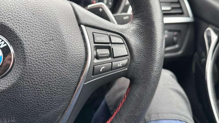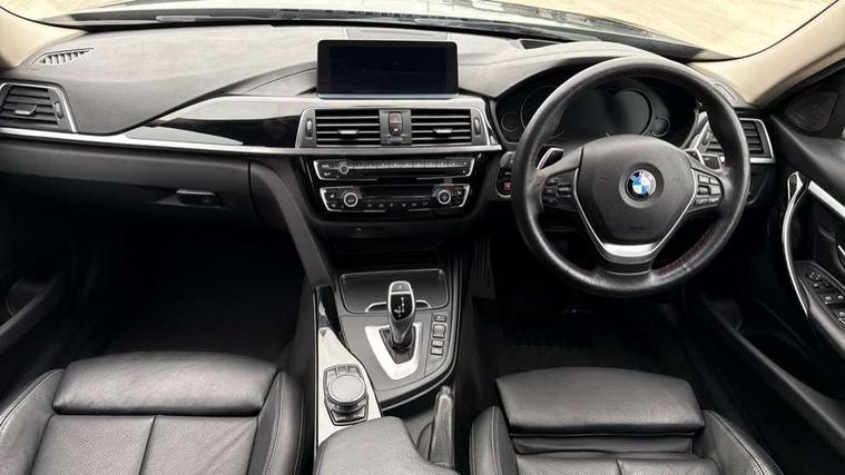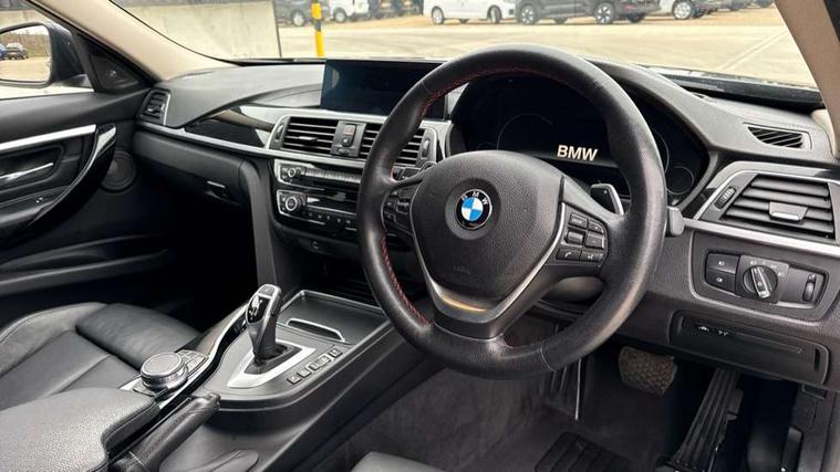 BMW Online services, BMW remote services, BMW Teleservices, Brake force display, Brake pad wear indicator warning light, Check control system, Digital clock, Door/boot open warning light, Lights on warning, Oil temperature gauge, On board computer, On board diagnostics, Operation warning of all exterior lights, Outside temperature display, Push button starter, Real time traffic information, Run flat tyre indicator, Service interval indicator, Traffic message channel (TMC), Drive Performance Control, Electronic differential lock, Sports function on gearbox with steering wheel mounted gearshift paddles, BMW professional radio/CD/MP3, CD Changer preparation, DAB Digital radio, 2 speed adjustable intermittent wipers with wash/wipe function, Auto dimming rear view mirror, Automatic headlight beam throw control, Body colour bumpers, Body colour door handles, Body colour roof mouldings, Chrome exhaust tailpipe, Clear indicator lenses, Dynamic brake lights, Electric adjustable door mirrors, Electric front and rear windows with one touch/convenient open/close function, Front ornamental grille with black kidney bars and chrome bezel, Green tinted heat insulating glass, Heated rear window with automatic switch off, Heated windscreen washer jets, LED daytime running lights, LED fog lights, LED welcome home lights, Rain sensor + automatic driving lights control, Shark fin roof aerial, 12V sockets in front centre console and passenger footwell, 2 x folding cupholders in instrument panel above glovebox, 3 rear seat head restraints, 4 foldable grab handles - rear with clothes hook, 4 lashing points to secure luggage, 40:20:40 split folding rear bench seat, Automatic interior light soft on/soft off system, Driver and passenger sunvisors with vanity mirrors + slide cover, Dual zone automatic air conditioning, Folding front centre armrest + storage, Front and rear door armrests, Front and rear velour floor mats, Front door storage bins with bottle holder, Front sports seats with electric side bolster adjustment, Glovebox light, Height adjustable front headrests, Indirect front interior illumination - soft-light function, Isofix system on outer rear seats, Leather gear knob, Leather gear selector lever handle, Leather handbrake grip, Lockable glovebox, Luggage compartment lighting, Multi-function controls for steering wheel, Reach + rake adjustable steering column, Rear centre armrest with 2 cupholders, Rear storage compartment in multifunction centre console with sliding cover, Storage compartment in rear doors, Toolkit located in luggage compartment, Extended lighting package - 3 Series, 3 point inertia reel seatbelts + pre-tensioners on outer rear seats, ABS, Automatic Stability Control (ASC), BMW emergency call, Cornering brake control (CBC), Crash sensor, Driver and passenger airbags, DSC+, Dynamic brake control, Dynamic Traction Control - DTC, Front and rear head airbags, Front passenger airbag deactivation, Front seat side impact airbags, Front seatbelt pretensioners + load limiters, Hill start assist, Rear child proof door locks, Seatbelt warning, Three 3 point rear seatbelts, Twin horns, Tyre pressure monitor, Warning triangle and first aid kit, Automatic drive away locking facility, Central locking fuel filler cap, Centre lock switch, Electronic immobiliser, Key integrated remote control central locking, Remote control alarm, Low rolling resistance tyres, Run-flat tyres,