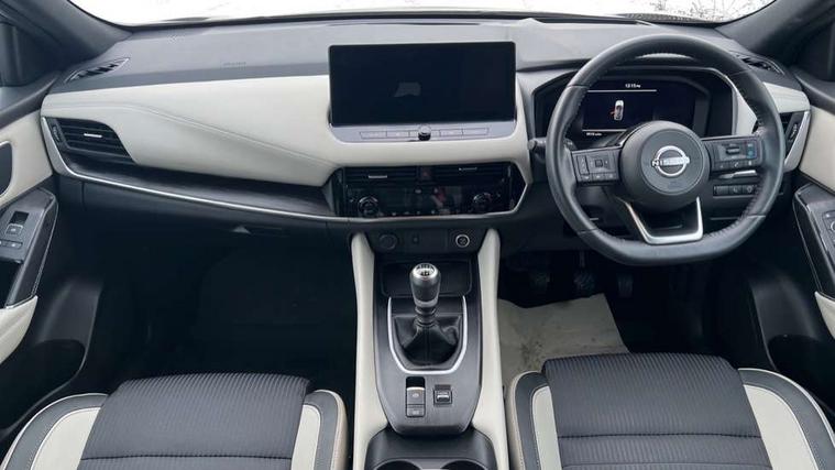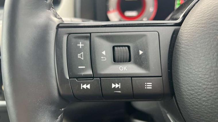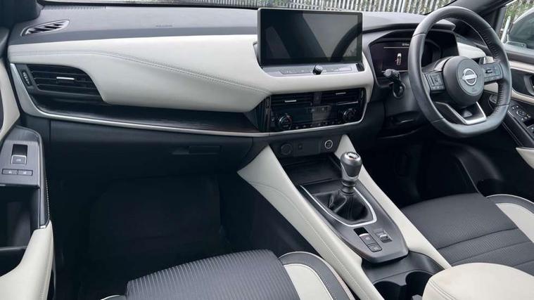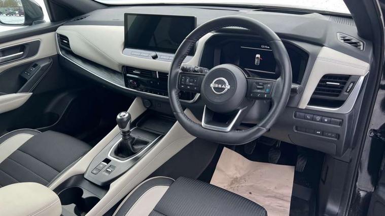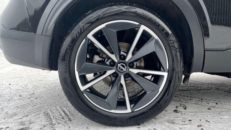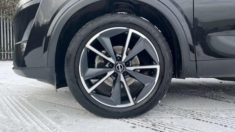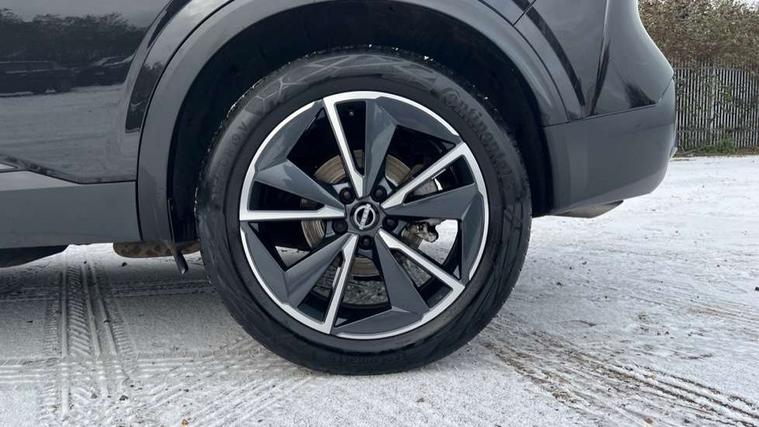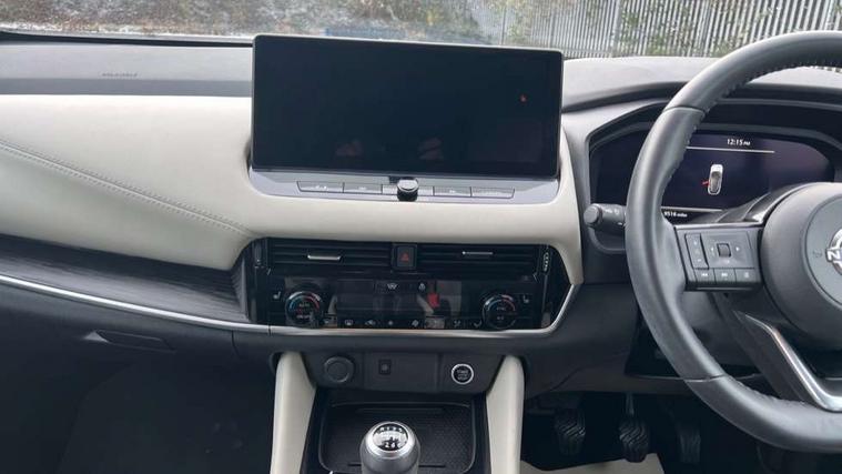 Advanced windscreen head up display, Android auto/Apple CarPlay (Wired), Blind spot warning, Drive assist, Drive modes (sport, normal, eco), Electric speed sensitive power steering, Emergency and breakdown call, Front and rear parking sensors, Full Digital 12.3" TFT Digital Combimeter, Google maps services - search, weather, 3D maps and Google street view, Hands free power tailgate, Idle stop/start system, Intelligent around view monitor, Intelligent Cruise control (ICC), Intelligent driver alert system, Intelligent forward collision warning, Intelligent lane intervention, Lane departure prevention, Lane departure warning system, Lane keep assist, Moving object detection, Nissan connect 12.3 inch touchscreen infotainment system, Nissan connect navigation, Push button starter, Rear cross traffic alert, Rear view camera, Remote control services - door locks, lights, horn and car locator, Telematics - notifications and connectivity services, TomTom live traffic services, Traffic sign recognition with legal speed adjustment, Trip computer, Virtual personal assistant and firmware over the air capability, Wireless apple carplay, Wireless charging pad, 6 speakers, AM/FM audio system with DAB, Bluetooth audio streaming, Front USB connections (Type-A and Type-C), Rear USB charging only ports (Type-A and Type-C), 3rd brake light, Auto dimming rear view mirror, Auto rear wiper when reversing, Automatic hazard signal with emergency stop signal, Body colour mirror caps, Body coloured door handles, Bodyside mouldings, Chrome side window finisher, Door handle with button, Electric auto folding door mirrors, Electrically adjustable and heated door mirrors with LED turn indicator, Follow me home headlights, Front and rear LED turning signals, Headlights auto levelling system, Intelligent auto headlights, LED daytime running lights, LED headlights with adaptive driving beam, LED rear lights, One touch front and rear electric windows with remote opening and closing, Partially body coloured bumpers, Privacy glass, Rear bumper with graphite insert, Rear reversing light (bulb lighting), Rear roof spoiler, Rear side wing doors, Rear styling plate, Shark fin antenna, Splash free rain sensing wipers, Super UV and infrared cut glass, Thermaclear heated windscreen, Three blink turn signal, 12v power socket in dashboard and luggage, 2x Rear coat hooks, 3 bench rear seats in 2nd row, 3 rear headrests, 4 folding assist grip, 6 Luggage hooks - 4 on floor, 2 on side, 60/40 split folding rear seat bench, Ambient lighting around centre console, Ambient lighting in front doors, Centre console storage tray, Chrome interior door handles, Cloth/syntech leather monoform upholstery, Dark black/blueish PVC wrapping, Dark headlining, Driver and front passenger sunvisors with illuminated vanity mirrors, Driver seat back pocket, Dual zone automatic climate control with pollen filter, Electrically adjustable driver seat, Electrically adjustable lumbar support for driver, Front and rear door storage, Front centre console and armrest, Front cupholders x 2, Front door with bottle holders, Glovebox with light, Hard trunk cover, Heated front seats, Heated steering wheel, Height adjustable driver's seat, Height adjustable front headrests, Height adjustable passenger seat, Leather shift knob, Leather steering wheel, Luggage board system, Luggage space lighting, Manual lumbar support on passenger seat, Manually adjustable passenger (slide recline + lifter), Multifunction steering wheel, Passenger seat back pocket, Rear armrest with 2 cupholders, Rear door bottle holders, Single front passenger seat, Soft PVC kneepad, Steering wheel switches, Tilt/telescopic adjustable steering wheel, Two rear isofix child seat anchorage points with top tether, Welcome light and doors with console tray ambient lighting, Glass roof pack with roof rails - Qashqai, 3x3 point rear seatbelt pretensioners + load limiters, ABS with EBD and brake assist, Active brake limited slip, Auto hold function, Child locks on rear doors, Curtain and front side, far side airbags, Driver and passenger airbags, Driver, passenger and 2nd row rear seat belt reminder, Electronic parking brake, Front seatbelt pretensioners + load limiters, Height adjustable front seatbelts, Hill start assist, Intelligent blind spot intervention, Intelligent front emergency braking with pedestrian, cyclist recognition and junction assist, Intelligent rear automatic braking, Tyre pressure monitoring system, Vehicle dynamic control, Capless fuel filler, Engine immobiliser, Intelligent Key, Remote central door locking with deadlocking, Thatcham Cat.1 alarm, Interior instrumental panel C finisher, 19" Alloy wheels, Tyre puncture repair kit,