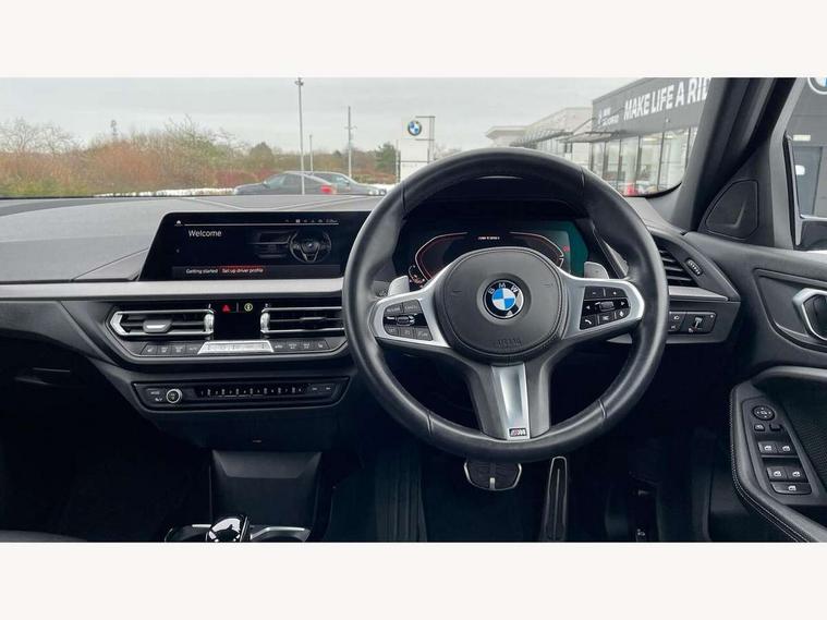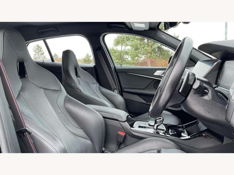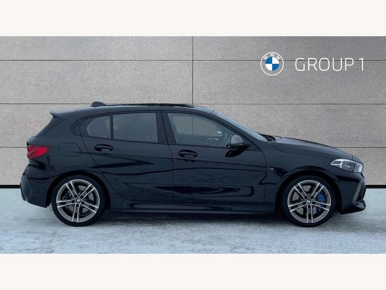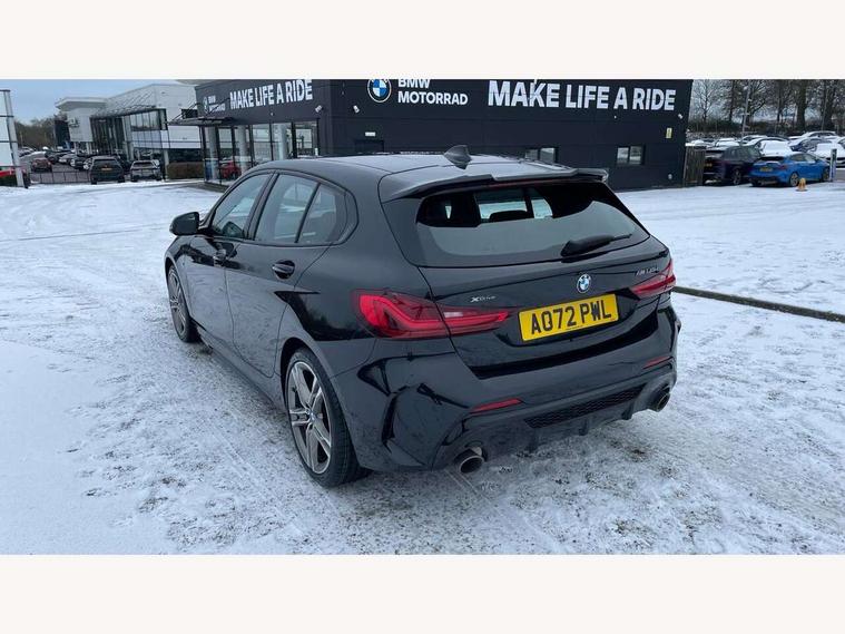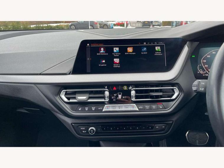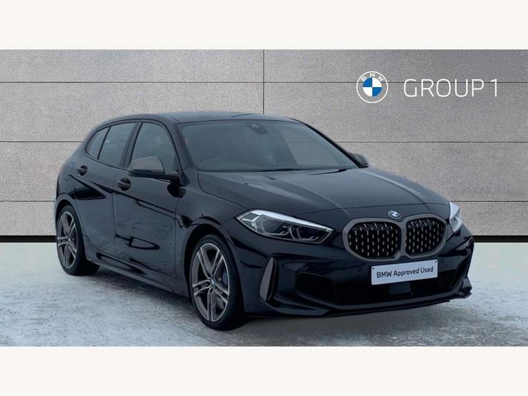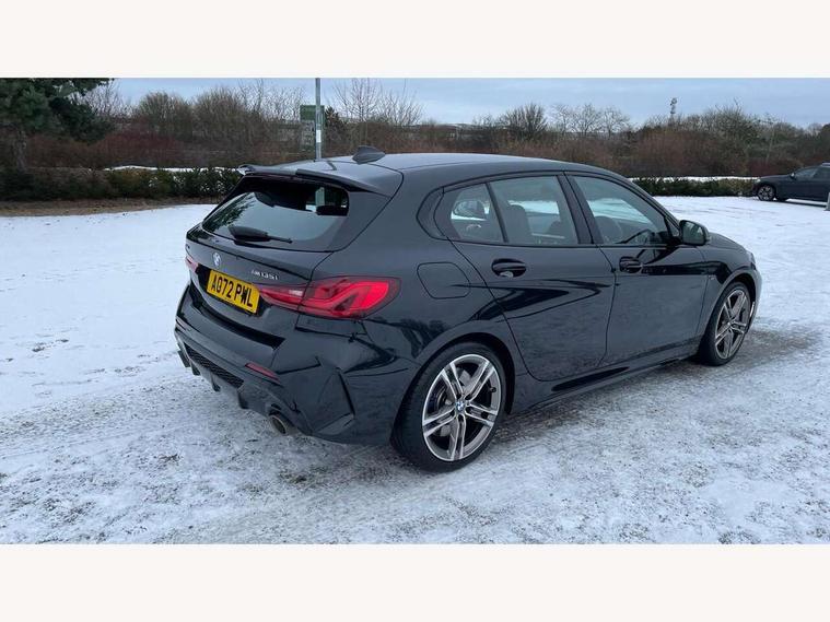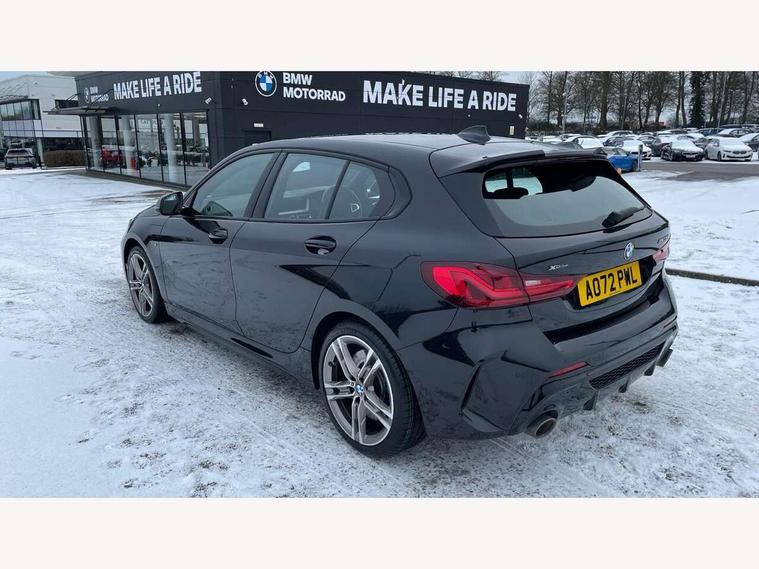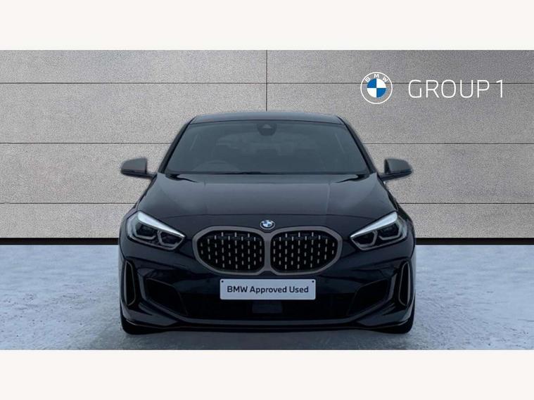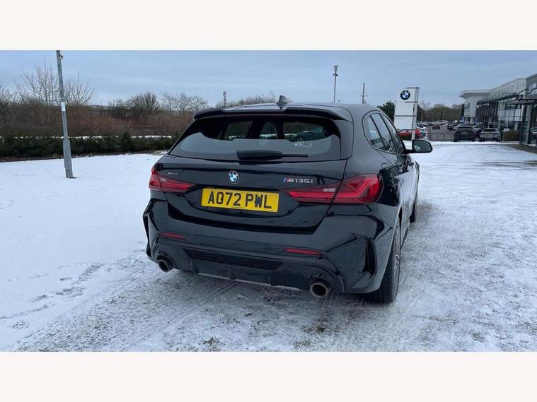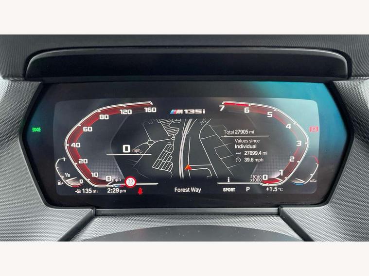 Active guard plus, Attentiveness assist, BMW ConnectedDrive online services, BMW Teleservices, Check Control warning system for monitoring of lights and door/luggage compartment open warning, Cruise control with brake assist, Eco pro mode, Electric power steering, Electro hydraulically controlled multi-plate clutch transfers drive to rear axle and with power take-off device located on the front differential., Energy efficient operating strategy, Front axle single joint with specific axle kinematics to minimise drive influences on steering + provide increased rigidity agile driving behaviour, Gearshift time display in manual mode, Integrated owners handbook, Lane departure warning system, M Sports steering with M135i xDrive specific settings, Oil sensor for level and grade, On board computer, Optimum shift indicator, Personal Profile, Pull away assistant, Rigidly mounted rear subframe - Multi link construction with separate spring / damper configuration and excellent driving characteristics, Speed limit Info including no-overtaking indicator, Speed limiter, Sporty fast gear shifting in sport mode, Aluminium lightweight construction, Anti roll bar front and rear, Balancer shaft, Double VANOS, Drive Performance Control, Eight speed sport automatic transmission with gearshift paddle switches, Electronic differential lock, Electronic selector lever, Engine cover with M performance designation, High precision injection, Larger fuel tank capacity (50 litres), Launch control, M135i specific heavily de-throttled engine intake air guide, M135i specific high-performance cooling package, M135i specific larger turbocharger with integrated divert-air valve, Petrol Particulate Filter, Twin tube gas filled shock absorbers with degressive characteristic curve, VALVETRONIC engine management, Variable, stepless and infinitely adjustable distribution of drive torque between the front and rear axles, xDrive intelligent all wheel drive with M135i specific reinforced components, DAB Digital radio, Auto dimming rear view mirror, Automatic headlight beam throw control, Automatic windscreen wipers and automatic headlight, Body colour door handles, Body colour roof trims, Cerium grey exterior mirror caps, Direction indicator side lights in exterior mirrors, Exhaust tailpipe, Cerium Grey with bevelled finish - twin, round 100mm, left and right split, Fading support, Folding side mirrors with auto dimming/folding wing mirrors with auto dimming, Follow me home headlights, Front and rear bumper system with replaceable deformation elements, Front and rear electric windows with open and close fingertip control, anti trap facility and comfort closing, Front door sill finishers with M135i designation, Green tinted heat protection glazing, Heated, electrically adjustable exterior mirror aspheric on driver side, convex on passenger side, High gloss shadowline window frame, Recess cover mirror frames and B/C pillar embelisher trim, High level third brake light, Integrated front windscreen with washer jets, Kidney grille frame in Cerium Grey with Mesh design, LED daytime running lights, LED eyebrow turn indicators, LED front fog lights, Lightweight engineering, M logo designation side in cerium grey, M Performance exhaust system with valve control and minimised exhaust back pressure, M Performance specific setup, M Sport spoiler, Matt black air guide grilles, Matt black wheel arch trim, Model designation on electric bootlid includes xDrive designation for M135i xDrive, Nearside reverse light in rear light cluster, Preparation for high beam assistant, Rear fog lights, Rear side wing doors, Rear window wiper, Reinforced crank drive, new pistons and adapted con rods, Shark fin antenna, Trailer stabilisation logic, Visible VIN plate, Welcome lighting, 12V power socket in front centre console with blanking plug, 3 rear seat head restraints, 3 seat bench in 2nd row, 3 spoke sports leather steering wheel with black leather and stitching, pearl chrome decorative finish, specific M Badge, Anthracite headlining, Black boot net with lashing eyes, Cargo function on 2nd seat row, Child seat ISOFIX attachment for two outer rear seats and front passenger seat with anchorage points, Conditioned based service, Driver and front passenger seat heating, Folding rear clothes hook, Four grab handles integrated in roof lining, Front and rear door pockets with bottle holders, Front and rear side armrest integrated into door trim, Front armrest, Front integrated head restraints, Front M sports seats, Glove compartment, Luggage compartment for bag hooks on left and right, foldable luggage compartment liner and four lashing eyelets, Manual adjust steering wheel, Multi-function controls for steering wheel, Single front passenger seat, Storage compartment in centre console, Sun visors with vanity mirrors and insert tab, Two front centre console cupholders, Two zone automatic air conditioning, Velour floor mats, Additional interior lighting pack - 1 Series M135i, BMW live cockpit professional pack- 1 Series, Connected pack professional - 1 Series, Interior lights pack - 1 Series, M Sport exterior styling aerodynamics pack - 1 Series 135i, 2 tone horn, 3 point seatbelts on all seats, front pyrotechnic belt tensioners, stopper and belt force limiters, rear coded belt buckles, Airbags - Front driver/passenger, front and rear curtain head protection, front side, manual deactivation of front passenger airbag, Anti lock braking system (ABS) with brake assist, BMW emergency call, Brake drying, Braking readiness, Child proof locking system in rear door, City braking function, Comfort modes, Cornering brake control, Crash sensor activating central locking release, hazard warning lights, fuel cut off, interior lighting + activation of safety battery terminal clamp, Driver and front passenger seat belt security check, Dynamic stability control + (DSC+), Dynamic Traction Control - DTC, Electrically operated hand brake including automatic hold function, Front and rear