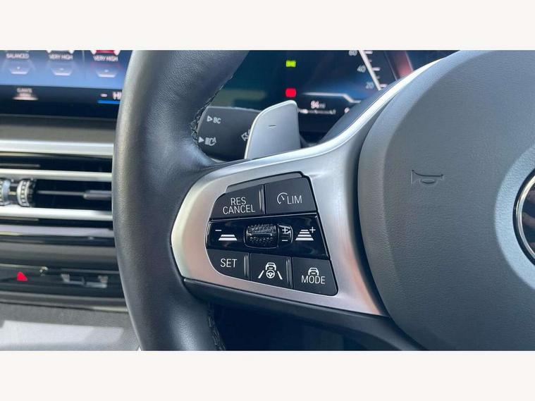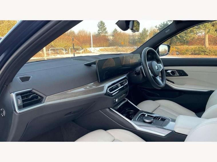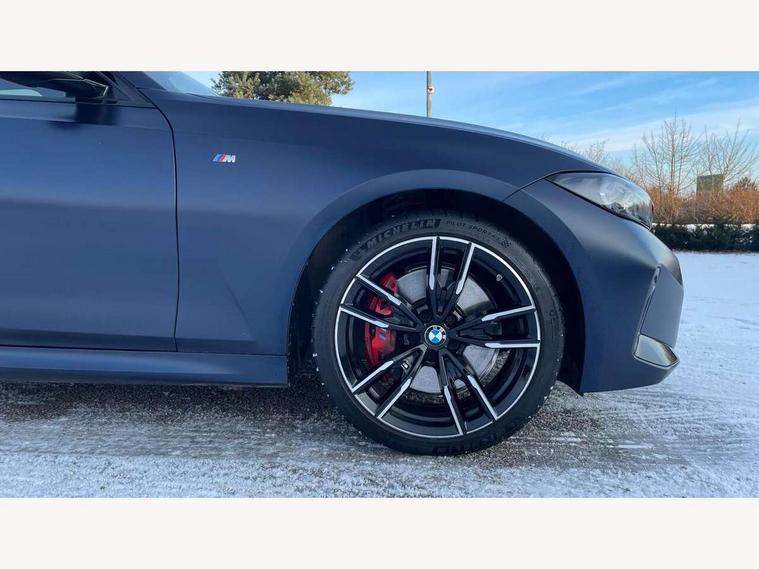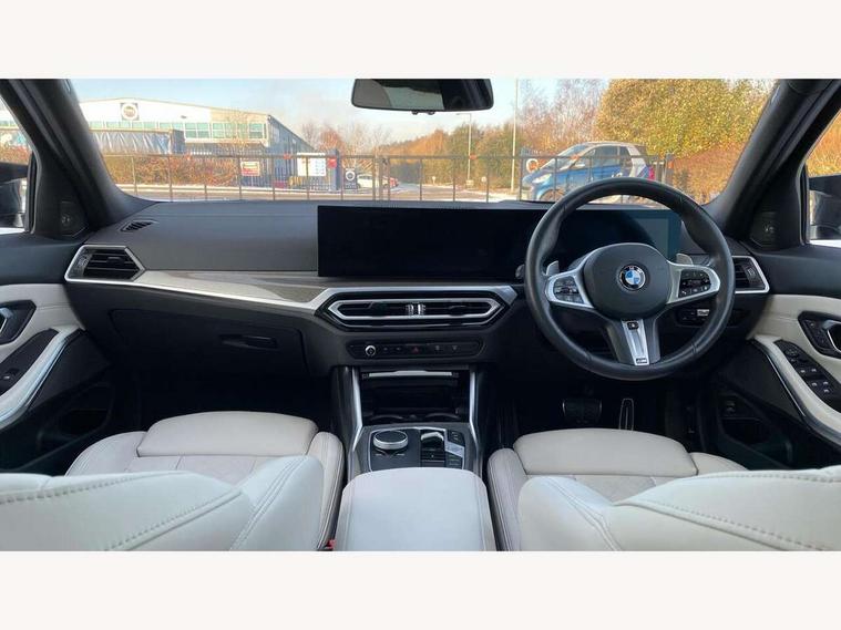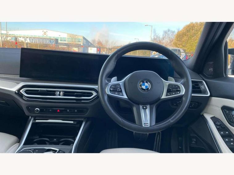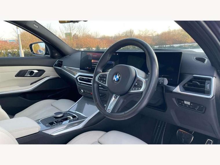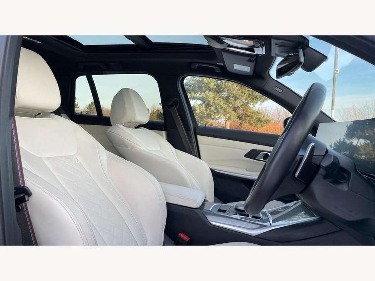 Active guard plus, Attentiveness assist, Automatic Start/stop button, BMW iDrive, BMW Teleservices, Condition based service, ConnectedDrive Services, Driving experience switch, Oil sensor for level and grade, Preparation for driver assistance, Shifting point display, Variable sport steering, 48V Mild hybrid technology, Double joint spring strut front axle, Fuel tank breather system, Larger capacity fuel tank, M Sport differential, Sport automatic transmission with steering-wheel mounted gearshift paddles and launch control, DAB tuner, 3rd brake light, Acoustic glazing, Adaptive LED Headlights, Automated High beam assist, Automatic headlight beam throw control with load dependent regulating reaction, dynamic compensation of braking dive and acceleration squat, BMW emblem, engine compartment lid and tailgate, BMW individual lights shadow line, BMW M Individual high gloss shadow line with extended contents, Body colour roof fin, Door sill strips, Electric windows - front and rear, with open/close fingertip control, anti-trap facility and comfort closing, Follow me home headlight function, Front and rear bumper system with replaceable deformation elements, Front apron plastic in body colour, Fuel filler flap - right rear in body colour, Heated washer jets, High gloss shadow line exterior trim, High gloss shadow line roof rails, Illuminated bow type door handles in body colour drivers side with door lock, Interior rear view electrochromatic mirror with automatic anti dazzle function, LED daytime running lights, LED rear lights, LED turn indicator, Licence plate panel integrated into front bumper and tailgate, Matt black B-pillar finsher, Matt black window recess cover, Model designation on right side of tailgate, One piece front bumper cover including towing eye cover in body colour, Rain sensor with automatic headlight activation, Rear side wing doors, Rear wiper, Reversing lights, Side frame decorative moulding black matt, Sun protection glass, Visible exhaust tailpipe finisher, Welcome lights in interior and door handle area, 12V power socket in front storage compartment, 2 front cupholder in centre console with clamping elements and matt black inlay, 3 seat bench in 2nd row, 3 zone automatic air conditioning, 40:20:40 split folding rear seat with loading system, Ambient inside door handle light, Ambient light design projected onto the left and right entering and exiting area, Ambient lighting front and rear with 9 selectable colours, Ambient storage compartment lighting in the centre console, Anthracite headlining, Armrest integrated in front and rear door trim + front centre console armrest, BMW ID, Contour lighting in instrument panel and door trim panel, Cruise control operation in steering wheel, Driver backrest width adjustment, Folding rear centre armrest with 2 cupholders, Front and rear ambient footwell lighting, Front and rear door exit lighting (left / right), Front and rear headrests, Front and rear reading lights, Front and rear velour floor mats, Heated front seats, Height adjustable mechanically and infinitely variable steering column, Illuminated armrest storage compartment, Illuminated glove compartment, Illuminated luggage compartment, Lashing eyelets in luggage compartment, M Sport multifunction leather steering wheel, Make-up mirror lights, Single front passenger seat, Standard seat for driver and passenger with manual adjustment, Sunvisors with vanity mirrors and ticket pocket, Toolkit located in luggage compartment, Connected pack professional - 3 Series Saloon/Touring, Interior and exterior mirror pack - 3 Series Touring/Saloon, M Aerodynamics package - 3 Series Saloon/Touring, M sport exterior styling pack - 3 Series Saloon/Touring, Storage compartment pack - 3 Series Saloon/Touring, 3x3 point rear seatbelts, BMW emergency call, Child locks on rear doors, Crash sensor activating of airbags, Unlocking doors, hazard warning lights, interior light, safety battery terminal, Driver and front passenger with seat occupancy detection for driver's and passenger side, Driver and passenger side airbags, body protection at side and airbags deploy from seat backrests, Dynamic brake control, Dynamic stability control + (DSC+) - Anti-lock Braking System (ABS) with brake assist and cornering brake control + Automatic Stability Control (ASC), Dynamic Traction Control - DTC, Electric parking brake including automatic hold function and automatic release of the parking brake when driving off, Electronic differential lock control (EDLC), Head airbags in 1st and 2nd row, head protection at side, curtain airbags open from headliner above 1st and 2nd row, M Sport brakes in red calipers, M sport seatbelt, Plastic fuel tank, Side impact protection, Tyre pressure monitoring with three level warning strategy, Ventilated front and rear disc brakes, Warning triangle and first aid kit, Alarm system, Centre lock switch, Closing system with central locking, Electronic vehicle immobiliser, Sensatec instrument panel,