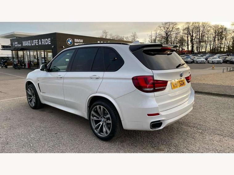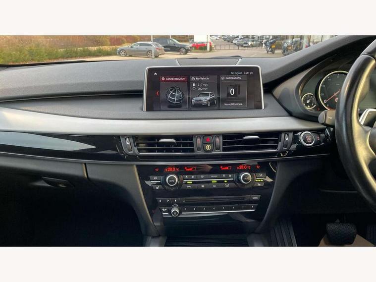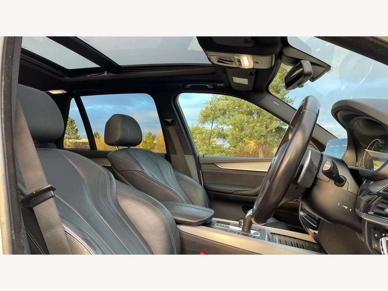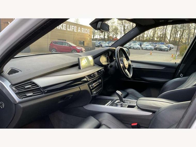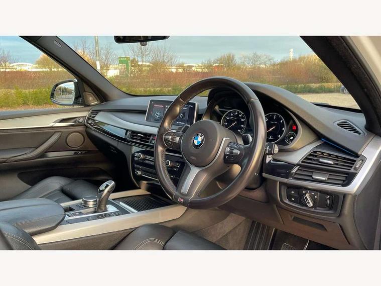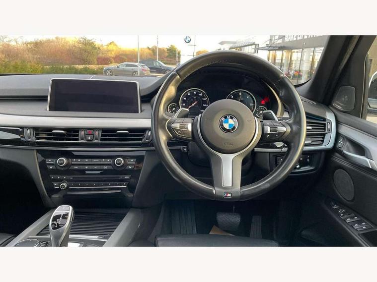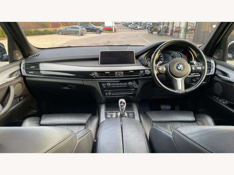 20GB Hard drive, 6.5" colour display screen, BMW online + Apps interface, BMW remote services, BMW Teleservices, Brake force display, Check control system, iDrive controller and display with 10.2" colour display monitor, Lights on warning, On board computer, Outside temperature gauge, Park distance control, Professional multimedia navigation system, Real time traffic information, Remote tailgate release, Service interval indicator, Servotronic PAS, Stop/start button, Voice control system, Adaptive M suspension, Diesel particulate filter, Sport automatic transmission, Auxiliary point for auxiliary devices, BMW professional twin tuner radio with single CD player and MP3 CD playback facility, DAB Digital radio, Auto dimming rear view mirror, Auto upper tailgate release, Body colour bumpers, Body colour door handles, Body colour door mirrors, Chrome exhaust tailpipes, Clear indicator lenses, Door mirror integrated indicators, Double kidney grille with chrome surround and black slats, Downlights in exterior door handles, Electric folding/heated door mirrors + electrochromic on drivers side, Electric front/rear windows with anti-trap, Electric headlight adjustment, Follow me home headlights, Green tinted glass, Headlight washer jets, Heat insulated glass, Heated washer nozzles, Individual door sill finishers, Intermittent rear wash/wipe, M aerodynamic body kit, Rain sensor with auto light activation system, Two piece tailgate, 12V accessory power point in centre console, 12V socket in luggage compartment, 2 x 12V socket in rear centre console, 40:20:40 split folding rear seats, Ambient interior lighting, Anthracite Velour floor mats, Boot lashing points, Electric front seats + driver memory, Front and rear cupholders, Front armrest with storage bin, Front/rear courtesy lights with soft on/off dimming, Front/rear reading lights, Gearshift paddles on steering wheel, Heated front seats, Height adj rear head restraints, Illuminated glovebox with lock, Isofix child seat preparation, LED footwell lights, Luggage compartment cover, M leather steering wheel, Reach + rake adjustable steering column, Securing rings in luggage compartment, Storage bins on all doors, Sunvisors with illuminated vanity mirrors, Tilt/height adjustable front head restraints, Toolkit located in luggage compartment, Extended storage pack - X5, 3 rear 3 point seatbelts, ABS, ADB - Automatic Differential Brake, Automatic Stability Control (ASC), BMW emergency call, Child locks on rear doors, Cornering brake control (CBC), Crash Sensor - activates hazard/interior lighting + unlocks doors, Driver/Front Passenger airbags, DSC - Dynamic Stability Control, Dynamic brake control, Dynamic Traction Control - DTC, Electronic brake force distribution, Electronic parking brake, Front and rear head airbags, Front passenger airbag deactivation, Front passenger seat occupancy sensor, Front side airbags, Height adjustable front seatbelts, Hill start assist, Pyrotechnically pre-tensioned front seatbelts, Tyre pressure monitor, Warning triangle and first aid kit, Locking wheel nuts, Remote central locking, Thatcham cat 1 remote alarm/immobiliser, Run flat tyres,