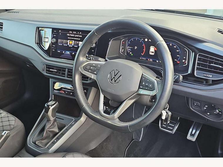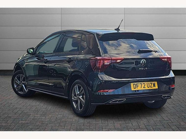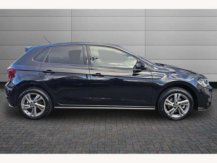 Adaptive cruise control with follow-to-stop and speed limiter, Bluetooth mobile phone interface, Digital Cockpit Pro with 10.25" Display, Driver alert system, Dynamic road sign display, Emergency call service, Power assisted speed sensitive steering, Preparation for We connect and We connect plus, Speedo and rev counter, electronic odometer, trip, service interval display and fuel gauge, Standard rear axle, Travel Assist - Lane keeping system and traffic jam assist, Travel assist including emergency assist, Trip computer, Warning signal and warning light for front and rear seatbelts not fastened, Washer fluid level indicator, Wireless app connect, Front wheel drive, Rear shock absorpion, Start-stop system with battery regeneration (recuperation - energy recovery during braking), DAB Digital radio, Diversity antenna for FM reception, Front and rear 6 speakers, Body colour bumpers, Body colour door handles, Electric front windows, Front scuff plates with R-Line logo, Heat insulating darkened glass in side and rear windows, Heat insulating glass windscreen, Power folding adjustable/heated exterior mirrors and front passenger exterior mirror lowering function, Rear electric windows, Rear fog light, Rear side wing doors, Rear windscreen washer and wiper with interval delay, Third brake light, 12V power socket in centre console, 2 USB-C ports in the front, 2 USB-C charging sockets on the center console in the rear, 3 rear head restraints, 60/40 split folding rear seat and rear seat bench not split, Air care climatronic air conditoning system with active combination filter and 2-zone temperature control, Black roof lining, Chrome plated radiator grille inserts, air vent surrounds and light switch surrounds, Door and side trim panel, Driver and front passenger seat height adjustment, Driver/passenger sunvisors with illuminated vanity mirrors, Front + rear carpet mats in recycled material, Front centre armrest, Front footwell illumination, Front seat backrest storage pockets, Front sports comfort seats, Handbrake lever handle in leather, Headliner in recycled material, Isofix child seat preparation easy-fit (for two outer rear seats, and front passenger seat) compatible with I-size, Karoso artvelours cloth upholstery, Leather trimmed gear knob, LED interior light with switch off delay and dimmer, 2 reading lights front and rear, Luggage compartment cover, Luggage compartment floor, Luggage compartment lighting, Lumbar adjustment for front seats, Single front passenger seat, Stainless steel pedals, Standard pedal cluster, Three spoke leather wrapped multifunction steering wheel with shifting paddles, Light and sight pack - Polo R-Line/Black Edition, 3 point height adj front seatbelts + pretensioners, 3x3 point rear seatbelts, ABS, Driver and front passenger airbag with front passenger airbag deactivation, Drivers and front passengers safety optimised head restraints, ESC (Electronic stability control) + EDL (Electronic Differntial lock) and ASR (Traction control), Extended and predictive pedestrian/ cyclist protection, Front curtain and side airbags with center airbag, Front/rear disc brakes, Hill hold control, Manual child lock in rear doors, Single tone horn, Tyre pressure loss indicator, Alarm with interior protection, Anti-theft alarm system with interior monitoring, backup horn, and towing protection, Anti-theft wheel bolts, Electronic engine immobiliser, Chrome applications on rotary light, mirror adjustment, window regulator switches, outlet with frame in black, Dark grey anodised matt decorative inserts in dash and front door panels, Low rolling resistance tyres,