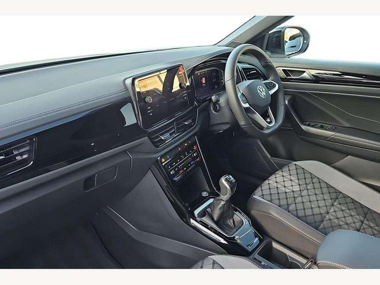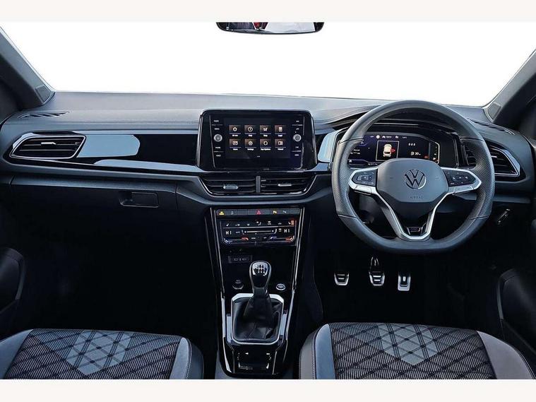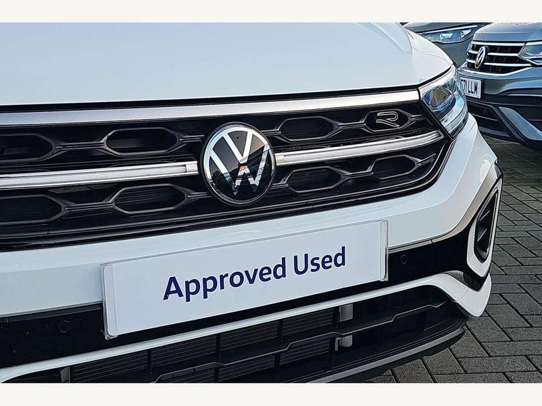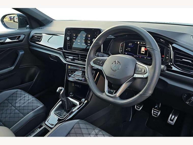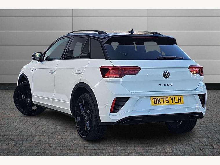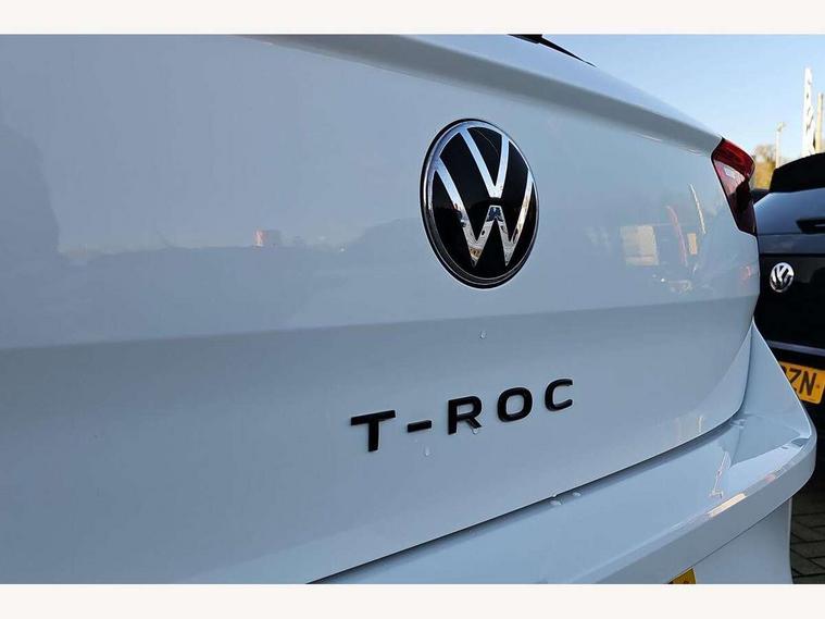 10.25" Digital cockpit pro, Advanced driver attention and drowsiness monitor, Emergency call service, Lane keeping system Lane Assist, Mobile phone interface, Modified key software - reduce switch off time for key status change to Long no motion, Online services, Park assist including front and rear parking sensors, Power assisted speed sensitive steering, Rear view camera, Service interval indicator, Tailgate/trunk lid release from outside, Think blue trainer driver tips and journey analysis, Warning sound and light for front seatbelts unfastened, Wireless app connect, Battery regeneration during braking, Start/stop function with battery regeneration, DAB Digital radio, Diversity antenna for FM reception, Music playback - MP3, WMA and AAC files, Premium USB cable in choice of either Apple or Android smartphone compatibility, SD card slot, Simultaneous pairing of 2 compatible mobile devices, Title and cover art display, We Connect and We Connect Plus functionality, Advanced dynamic light assist for LED matrix headlights, Auto dimming interior rear view mirror, Automatic hazard lights activation under emergency braking, Black roof rails, Dynamic cornering light, Dynamic headlight range control with self adjusting whilst driving, Electrically adjustable and heated door mirrors, Extended roof spoiler, Exterior ambient lighting, Exterior mirrors aspherical on driver side, convex on front passenger side, External USB type C socket and charging sockets, Front windscreen wiper with intermittent wipe and 4 position delay, Heated rear window, Illuminated front grille, IQ LED matrix headlights, LED 3rd brake light, LED rear number plate lights, LED rear tail lights with dynamic turn signal, LED separate daytime running light, Light mode for poor weather, rain, fog or snow, Power windows with comfort operation and circuit breaker, Privacy glass for rear side windows and rear window, R-Line design body coloured bumpers, Rain sensor, Rear exhaust tailpipe, Rear fog light on one side and reversing lights on both sides, Rear side wing doors, Rear wash/wipe with intermittent wipe setting, Remote electrically foldable door mirrors, puddle lights and reverse activated passenger's door mirror, Tilting and sliding panoramic sunroof with rear panoramic sunroof, 12V power socket in centre console, 3 rear head restraints, 3 seat bench in 2nd row, 4 load lashing points in luggage compartment, Air care climatronic air conditoning system with active combination filter and 2-zone temperature control, Chrome plated radiator grille inserts, air vent surrounds and light switch surrounds, Door and side trim panel with leatherette insert, Front + rear carpet mats, Front centre armrest, Front cupholders x 2, Front footwell illumination, Front reading light, Front scuff plates with R Line logo, Front seat back storage pockets, Glove compartment door with light, Instrument lighting, white adjustable panel illumination, Interior ambient lighting and surround lighting, Interior light delay, Isofix child seat preparation, Leather gearshift handle, Load-through provision with cup holder when folded down ('Unsplit rear seat bench, split folding backrest, with centre armrest), Luggage compartment lighting, Single front passenger seat, Stainless steel pedals, Storage compartment in left and right luggage area, Storage compartment in rear doors, Storage compartments in driver and front passenger doors, Sunvisors with illuminated vanity mirrors, Variable boot floor, height adjustable and removable, Black design pack - T-Roc black edition plus, Easy open package with safelock - T-Roc, 3 point height adj front seatbelts + pretensioners, 3 point seatbelts in outer rear with ECE label, ABS, Child locks on rear doors, City emergency braking and pedestrian monitoring, Driver and front passenger airbag with front passenger airbag deactivation, Driver and front passenger safety-optimised head restraints, Drivers seatbelt reminder, Electronic parking brake, Electronic Stability Control (ESC) inc EDL (Electronic Differential Lock) and ASR (Traction Control), Front and rear passengers curtain airbag system including front side airbags, Hill start assist, Predictive pedestrian protection, Rear disc brakes, Two tone horn, Tyre pressure loss indicator, Volkswagen roadside assistance, Keyless locking and starting system keyless access with safelock, Gloss deep iron dash trim, 19" Misano alloy wheels with low rolling resistance and anti theft wheel bolts, Tool kit, Trims for alloy wheels, Tyre mobility kit including compressor and sealing foam,