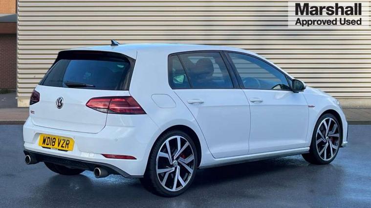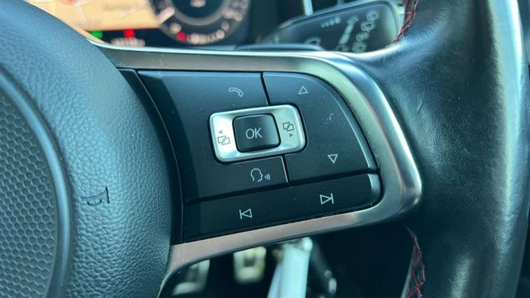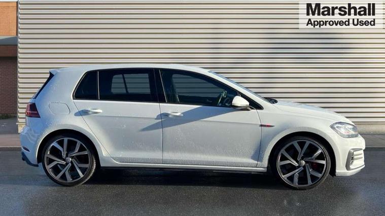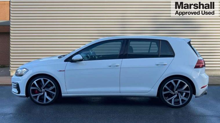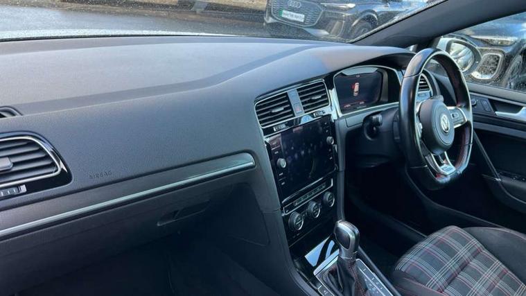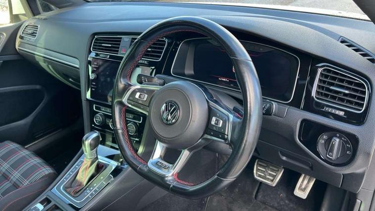 'Lights On' Reminder warning buzzer, 8" colour touch screen, ACC - Adaptive cruise control with front assist, forward collision warning, distance monitoring, city emergency brake and speed limiter, Active info display, App-Connect, Bluetooth hands free telephone connection, Brake pad wear indicator warning light, Driver alert system, Driver profile selection, Exterior temperature gauge, Front assistant collision mitigation, Instrument cluster in white, Multifunction computer, Power assisted speed sensitive electro-mechanical steering, Progressive power assisted steering, Rev counter, Stop/start system, Trip and service interval display, Ultrasonic front and rear optical and audible parking sensors, Warning buzzer and light for front seatbelts unfastened, Battery regeneration during braking, Limited slip differential, Lowered sports suspension, CD/MP3/WMA, USB and SD card reader, aux-in, Composition media system, DAB Digital radio receiver, 3D-LED tinted rear light clusters with indicator sweep function, Automatic coming/leaving home lighting function and rain sensor, Automatic dimming rear view mirror/rain sensor, Automatic headlights, Black rear diffuser, Body colour door handles, Body colour door mirrors with integrated indicators, Body colour rear roof spoiler, Body colour sports bumpers, Darkened rear light clusters, Electric front windows, Electric rear windows, Electrically adjustable and heated door mirrors, Halogen headlights range adjustable via infotainment system with LED daytime running lights, Heated rear windscreen, High level 3rd brake light incorporating LED Technology, Honeycomb radiator grille - black, LED front fog lights, LED rear lights, Rain sensor, Rear number plate lights incorporating LED technology, Rear window aerial, Rear window wash/wipe with intermittent wipe, Reflectors in all doors, Twin exhaust tailpipe, Windscreen wipers/ intermittent wipe + 4 position delay, 12V socket in luggage compartment, 3 rear headrests, 60/40 split folding rear seat backrest, Air conditioning - 2 zone electronic climate control, Bag hook in luggage compartment, Black headlining, Boot lashing points, Cooled glovebox, Courtesy light delay, Cover for storage compartment in centre, Driver/front passenger seat height adjustment, Dust/pollen filter, Front + rear carpet mats, Front centre armrest with storage compartment and two rear air vents, Front reading lights, Front seat back storage pockets, Grab handles front x 2, rear x 2 with integrated coat hooks, Height/reach adjust steering wheel, Illuminated door sills, Illuminated vanity mirrors, Instrument lighting white adjustable panel illumination, Isofix preparation for 2 rear child seats, Load through provision with rear centre armrest and cupholders x2, Luggage compartment cover, Luggage compartment light, Multi-function leather steering wheel with red stitching, Multifunction leather steering wheel with leather trimmed gear knob including paddle shift, Overhead storage box, Stainless steel pedals, Storage box in luggage compartment, Storage compartments in doors, Storage compartments in front doors, Storage compartments in rear doors, Sun visors, Three spoke multi-function leather trimmed steering wheel and gearknob, Three spoke steering wheel, Variable boot floor, height adjustable and removable, Ambient lighting pack - Golf, Mirror pack - Golf, 3 rear three point seatbelts, Anti-lock braking system (ABS), Automatic post collision braking system, Child locks on rear doors, Driver/Passenger optimised head restraints, Drivers and Front Passengers airbags with front passengers airbag deactivation switch, Drivers knee airbag, Electronic stability control (ESC) including Electronic differential lock (EDL) and ASR (Traction control) with deactivation via infotainment system, Front and rear curtain airbags, Front seat side impact airbags, Hydraulic Brake Assist (HBA), Pre crash preventive occupant protection, Red brake calipers, Three point height adjustable front seatbelts with tensioners, Tyre pressure loss indicator, Uprated front disc brakes + calipers, Alarm with interior protection, Electronic engine immobiliser, Remote central locking with 2 remote folding keys, Chrome-plated light switch surround, Honeycomb black decorative inserts, Piano black centre console, Space saver spare wheel,