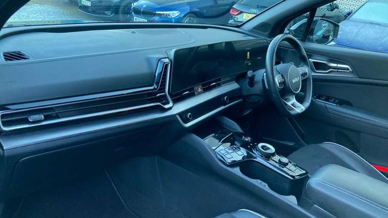 12.3" Display with navigation, 4.2" supervision colour cluster display, Apple car play/Android Auto with voice control, Drive mode selector, E-call, Forward collision avoidance assist (FCA) - city/pedestrian/cyclist/junction covering, Front and rear parking sensors, Highway Driving Assist (HDA), Intelligent speed limit assist, Kia Connect (UVO), Lane Following Assist (LFA), Lane keep assist, Low washer fluid warning, Rear view monitor, Reversing camera system integrated into centre fascia screen, Smart cruise control with stop and go functionality, Speed sensitive power steering, Trip computer, Windscreen washer level indicator, Intelligent Stop and Go, 6 speaker audio system, Bluetooth audio streaming, DAB Radio with MP3, Rear USB port, Steering wheel mounted audio controls, USB C type charging ports on centre console, USB C type charging ports on side of front seats, USB port for connection of a media device, All round electric windows with drivers and front passenger auto up/down function, Automatic headlight control system, Automatic window defogger, Backlite glass heated with timer, Body colour and black bumper with silver accents, Body colour exterior door handles, Body colour radiator upper garnish and door garnish, Electrically adjustable/heated/folding door mirrors with LED indicators, Front and rear chrome skid plates, Gloss black door mirrors, Gloss black radiator grille, Gloss black side sill and wheel arch body mouldings, Glossy black roof rack, High beam assist, Interior electrochromic mirror, LED daytime running lights, LED front fog lamps, LED headlamps (low and high beam - MFR type), LED High mounted stop light, LED rear combination lamp, Rain sensing wipers with aero blades, Rear fog lamp, Rear privacy glass, Rear side wing doors, Rear spoiler, Rear wiper, Satin finished beltline, Silver coloured inserts to bumpers, Tinted rear glass, Trailer stability assist, 12V power socket in front centre fascia and luggage compartment, 2nd row personal lamps, 3 seat bench in 2nd row, 3 x passenger assist grips, 40/20/40 split folding rear seat, All-round height adjustable headrests, Black headlining, Centre console storage box, Cupholders in rear armrest, D-Shaped sports leather steering wheel and perforated inserts with GT-Line logo, Door courtesy lamps, Drink holder at centre armrest, Driver and front passenger side sunvisors with illuminated vanity mirrors, Driver's seat manual height adjust, Drivers seat power lumbar support, Front and rear door storage, Front seat and rear pockets, Front/rear centre armrests, Gear shift indicator, Glovebox illumination, Heated front seats, Heated steering wheel, Interior door lock/unlock function, ISOFIX Child seat top tethers and anchor fixings outer rear seats, Luggage area light, Luggage area load cover, Luggage net with hooks, Metal paint interior door handles, Overhead console lamp, Paddle shift controls, Rear cabin light, Rear coat hooks, Single front passenger seat, Sports pedals, Suede leather upholstery, Three zone climate control, Tilt/telescopic adjustable steering wheel, Ventilation ducts to rear compartment, Active front headrests, All round 3-point seatbelts, Anti-lock braking system (ABS), Dual front side airbags, Dual horn, Electronic parking brake, Electronic stability control with downhill brake control, Front passenger airbag cut-off switch, Front seatbelt pretensioners + load limiters, Height adjustable front seatbelts, Hill start assist control (HAC), Impact sensing auto door unlocking, Multi collision brake assist, Rear door child safety locks, Rear seat alert system, Traction control, Twin curtain airbags, Twin front airbags, Tyre pressure monitoring system, Advanced anti-theft system including immobiliser and alarm, Door deadlocks, Engine Start/Stop Button with Smart Entry System, Locking wheel nuts, Speed sensitive auto door locking, Visible vehicle identification number, Aluminium pattern finish centre fascia and door garnish, 18" GT-Line alloy wheels, Tyre mobility kit,