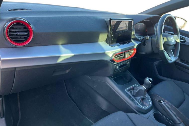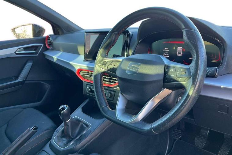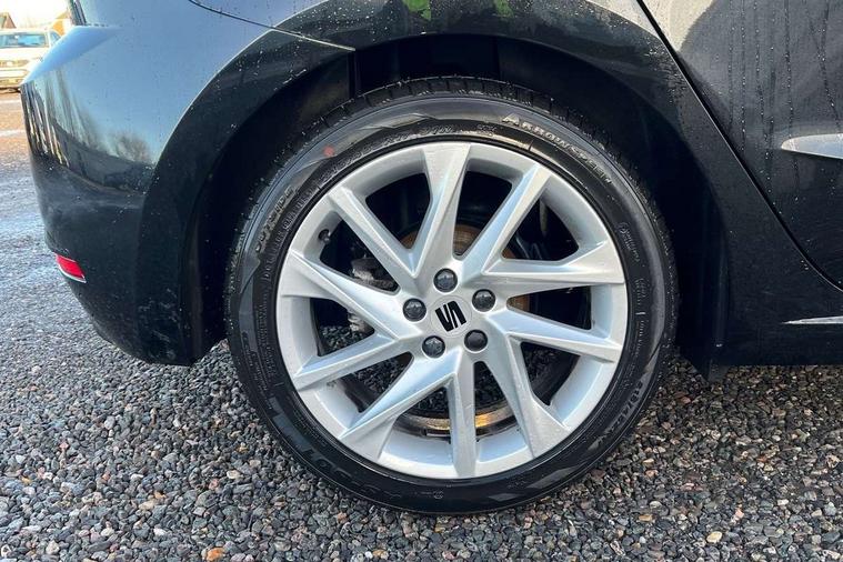 'Lights On' Reminder warning buzzer, 8" Digital cockpit, 9.2" touchscreen navigation system with type C USB socket, Voice control and DAB/AM/FM radio, Auto start and stop system, Bluetooth audio streaming with handsfree system, Digital clock, E-call, Full link smartphone integration with mirror link, wireless apple carplay, Google android auto + USB Type C cable for apple and android devices, Lane assist, Low fuel warning light, Outside temperature gauge, Power Steering, Seat connect with safety, service, remote and online, SEAT drive profiles and ECO function, SEAT logo boot release, Speed limiter, Trip computer, Sports suspension, Auxiliary input socket, Radio/MP3 player, SD card slot, Steering wheel mounted controls, Anti theft roof antenna, Auto dimming rear view mirror, Automatic rain sensing wipers, Black door mirrors, Body colour bumpers, Body colour door handles, Brilliant black window surrounds, Dark tinted rear windows, Electric adjustable/heated/folding door mirrors, Electric front windows, Electric headlight adjustment, Electric rear windows, Front/rear fog lights, FULL LED automatic headlights with dynamic headlight range control, coming and leaving home, LED daytime running lights, LED tail lights, Rear roof spoiler with FR twin exhausts, Rear side wing doors, Rear wiper, Third brake light, 3 seat bench in 2nd row, 60/40 split folding rear seat, Ambient interior lighting, Chrome detailing and black headlining, Cloth upholstery, Dual zone climate control with combination filter, Front courtesy lights, Front cupholders x 2, Front reading lights, Gear shift indicator, Glovebox, Height adjustable front and rear headrests (five), Height adjustable front seats, Height/reach adjust steering wheel, Illuminated air vent surrounds, Illuminated boot, Instrument lighting with brightness control, Isofix, Leather multifunction flat bottomed sports steering wheel, Passenger sunvisor, Single front passenger seat, Sports seats, Sunvisors with mirror and driver side card holder, 3 point seatbelts on all 3 rear seats, ABS, Active front headrests, Child locks on rear doors, Electronic stability control, Energy recovery system, Front assist forward collision warning and autonomous emergency braking, Front driver and passenger side airbags with curtain airbag and front passenger airbag deactivation, Hill hold control, Multi-Collision braking, Seat belt reminder for front and rear seats, Tiredness recognition system, Tyre pressure monitoring system, Electronic engine immobiliser, Locking wheel bolts, Perimeter alarm and interior monitoring with backup horn and tow away protection, Remote central locking + deadlocks, 17" Alloy wheels in Brilliant silver,