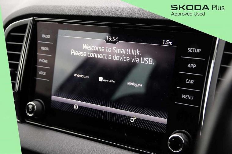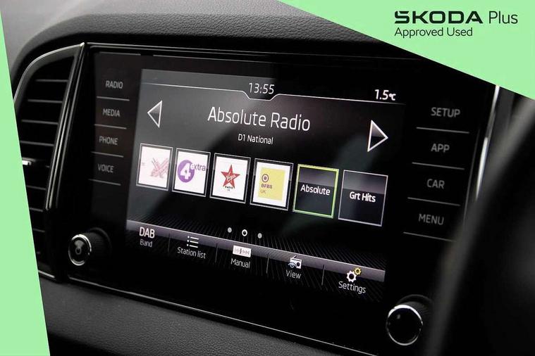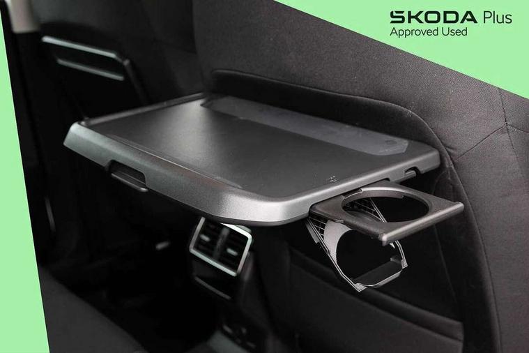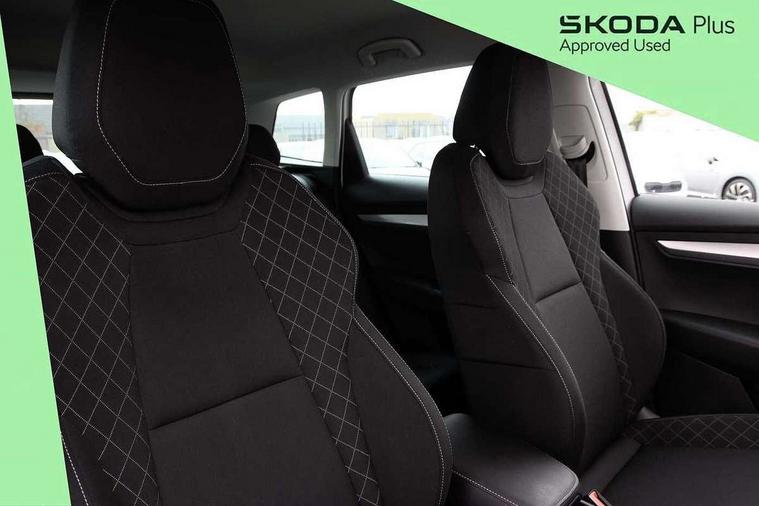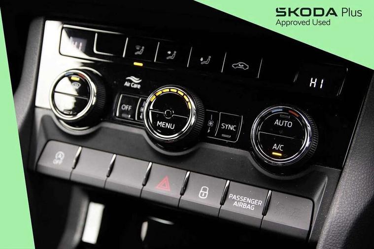 Driver alert system, Driver fatigue sensor, Driver profile selection, Electro-mechanical PAS, Outside temperature gauge, Service interval indicator, Start/stop system with regenerative braking, Diesel particulate filter, DAB radio with Bluetooth, SD card slot, USB connection, Acoustic glass, Aero front windscreen wipers with intermittent function, Automatic headlight control system, Body colour door mirrors and handles, Body coloured bumpers, Electric front and rear windows with child proof lock, Electrically adjustable heated folding and auto dimming door mirrors with boarding spots, Heated rear windscreen, LED rear lights with high functionality, Light assistant (coming/leaving home/tunnel light), Privacy glass, Safety reflectors on front doors, Third brake light, 1.5 litre bottle holders in driver and front passenger door panels, 12V socket in boot, 12v socket in front centre armrest with storage compartment and rear air vents, 2 Folding hooks and nets in boot, 2 Front readings lights for driver and passenger, 3 rear height adjustable headrests, 4 foldable roof handles with rear coat hooks, 4 lashing points on luggage floor, Backrest release, Cargo elements in boot, Chrome inner door handles, Driver and passenger seats height adjust, Dual zone climate control, Folding tables on the front seat backrests, Front seat and rear pockets, Height adjustable front three point seats belts with tensioners, Height/reach adjust steering wheel, Ice scraper, Illuminated and cooled glovebox, Illuminated luggage compartment, Isofix child seat preparation outer rear, Manual lumbar support for front seats, Net programme in boot, Pen holder, Pollen filter, Rear boot cover, Rear reading lights, Rear seats fixed folding and divided 60:40, Removable LED torch in the boot, Safety vest holder, Storage box in upper central dashboard closed, Storage net on centre console passenger side, Sunglasses storage compartment, Sunvisors with illuminated vanity mirrors, Umbrella under passenger seat, Airbags - Front side, head, knee and curtain, Automatic door unlocking in case of crash, Automatic fuel cut off in case of crash, Driver airbag, Electronic parking brake with auto hold function, Emergency rear braking signal, ESC including ABS, MSR, ASR, EDS, HBA, DSR, RBS, MKB and traction control, Front assist radar scanning of the space in front of the car with automatic braking, Hill hold control, Passenger airbag with switch-off function, Pedestrian monitor, Seatbelt reminder signalisation and pretensioner for all seats, Three point seatbelts rear, Two tone horn, Tyre pressure display, Tyre pressure monitor, Alarm with interior monitoring, back up horn and tilt sensor with safe function, Electronic engine immobiliser, Remote central locking with 2 remote folding keys, Chrome framed air vents, Storage on wheel cover,