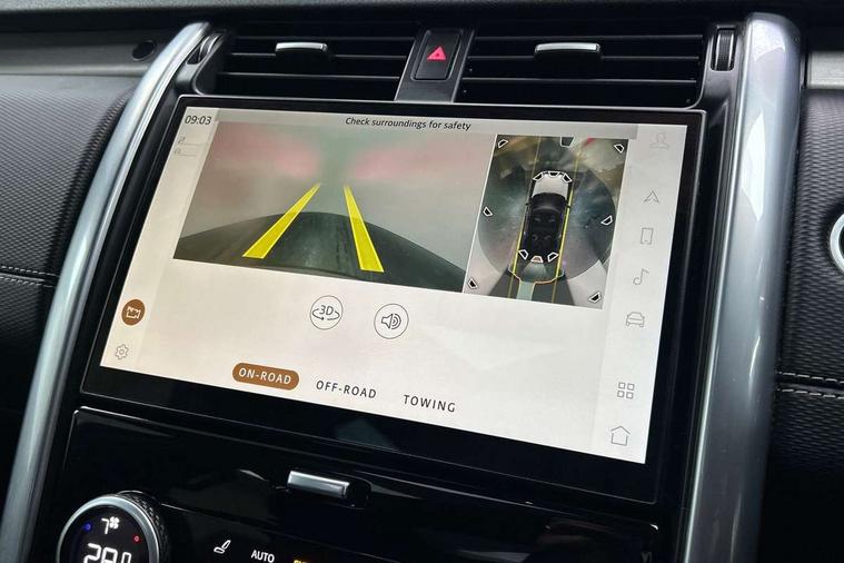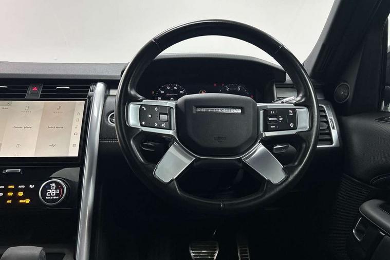 11.4" touchscreen, 3D surround camera, Android Auto, Apple car play, Click and go integrated base unit, Driver condition monitor, Electric power assisted steering (EPAS), Front and rear parking aid, Interactive driver display, Lane keep assist, Power inner tailgate, Push button start, Remote, Remote boot release, Service interval indicator, Speed proportional steering, Sportshift selector, Stop/start system, Traffic sign recognition with adaptive speed limiter, Trip computer, Wade Sensing, Adaptive dynamics, Dynamic stability control, Electronic air suspension, Front axle open differential, Digital Audio Broadcast radio-DAB, Dynamic volume control, Pivi pro connected, USB/aux input socket, Acoustic laminated windscreen, Auto dimming interior rear view mirror, Automatic headlights, Body colour bumpers, Body colour door handles, Centre high mounted stop light, Electric windows with one touch open/close and anti-trap, Front fog lights, Heated rear window, Heated windscreen, LED desaturated signature tail lights, Metal treadplates with R-Dynamic branding, Narvik black Discovery script, Puddle lights, Rain sensing windscreen wipers, Rear fog lights, Rear wash/wipe, Trailer stability assist, Variable intermittent wiper, 12V power sockets, 12V USB charging socket in loadspace, Central hinged twin lidded storage, Ebony morzine headlining, First and second row door bins, Footwell lights, Front and rear 12V with front USB, Front passenger seat isofix location point, In-facia storage, Loadspace cover, Loadspace Hook, Loadspace light, Lockable glovebox, Lower centre console storage, Luggage tie downs in loadspace, Multi function steering wheel, Overhead lighting console, Premium carpet mats, Rear ISOFIX, Shopping bag hook, Storage glovebox, Sunvisors with illuminated vanity mirrors, Third row storage, Twin front cupholders with cover, USB with 12V socket in centre console, Online pack with data plan - Discovery, R-Dynamic black exterior pack - Discovery, 3x3 point rear seatbelts, Anti-lock braking system (ABS), Brake pre-fill technology, Cornering brake control, Curtain airbags, Customer configurable autolock, Driver and passenger airbags, EBD - Electronic brakeforce distribution, Electronic traction control, Emergency brake assist, Emergency braking, ESP, Front side airbags, Gradient acceleration control, Hill descent control, Hill launch assist, Power operated child locks, Rear airbags, Roll stability control, Seat belt reminder, Torque vectoring brake, Tyre pressure monitoring system, Immobiliser, Intrusion sensor, Keyless entry, Locking wheel nuts, Remote central locking, All terrain tyres,