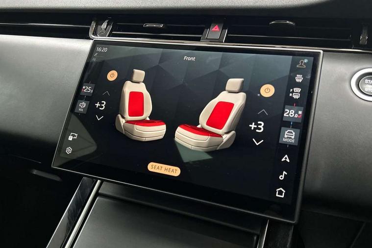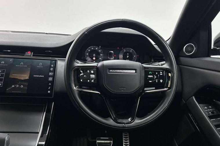 11.4" touch screen, Adaptive cruise control, Android Auto, Apple car play, Blind spot assist, Bluetooth connectivity, Brake pad wear indicator warning light, Driver condition monitor, eCall emergency system, Eco mode, Electronic power assisted steering (EPAS), Front and rear parking aid, InControl remote, Interactive driver display, Land Rover InControl apps, Lane keep assist, Pivi pro connected includes diamond pivi variant, smart settings, connected navigation pro, nuance speech licence, Powered tailgate/boot lid, Rear collision monitor, Rear traffic monitor, Traffic sign recognition with adaptive speed limiter, Voice control system, Wireless device charging, All terrain progress control, Diesel exhaust fluid (DEF) large tank, Efficient Driveline, Large fuel tank, Passive suspension, Terrain Response 2, Digital Audio Broadcast radio-DAB, Steering wheel mounted controls, Acoustic laminated windscreen, Auto headlights, Automatic headlight levelling, Electric windows with one touch open/close and anti trap, Flush deployable exterior door handles, Front and rear recovery eyes, Heated rear window with timer, Heated washer jets, Heated windscreen, Pixel LED headlights with signature DRL and LED tail Lights, Power fold, auto-dimming, heated door mirrors with approach lights and auto dimming driver side, Rain sensing windscreen wipers, Rear animated directional indicators, Rear fog lights, Rear side wing doors, Rear wiper, Side repeater indicators in mirror, Tailgate spoiler, Third brake light, Winter wiper park position, 14 way driver memory electric front seats with 2 way manual headrests + 4 way lumbar support, bolsters, 40:20:40 split folding rear seats with centre headrest and armrest, Ambient interior lighting, Bright metal pedals, Carpet mats, Chrome tread plates with range rover branding Includes stainless steel loadspace scuff plate with etched graphic, Customer configurable single point entry, Electrically adjustable steering column with memory function and easy entry/exit, Front and rear cupholders, Heated steering wheel, Isofix system on outer rear seats, Overhead lighting console, Overhead stowage for sunglasses, Passive front head restraints, Rear air vents, Rear head restraints, Satin chrome gearshift paddles, Single passenger seat, Sunvisors with illuminated vanity mirrors, Twin sliding front centre armrest, Online pack with data plan - Evoque, Power socket pack 2 - Evoque, 3 rear 3 point seatbelts, Anti-lock braking system (ABS), Brake hold function, Customer configurable autolock, DSC - Dynamic Stability Control, Electronic brake force distribution, Electronic parking brake, Electronic traction control, Emergency braking, Front and rear seatbelt reminder, Hill descent control, Hill launch assist, Low traction launch, Occupant protection assist, Passenger seat occupant detector, Power operated child locks, Roll stability control, Six airbags - Driver and passenger airbags/driver knee airbag/front side airbag and curtain airbags, Torque vectoring brake, Tyre pressure monitoring system, Alarm, Immobiliser, Intrusion sensor, Keyless entry, Locking wheel nuts,