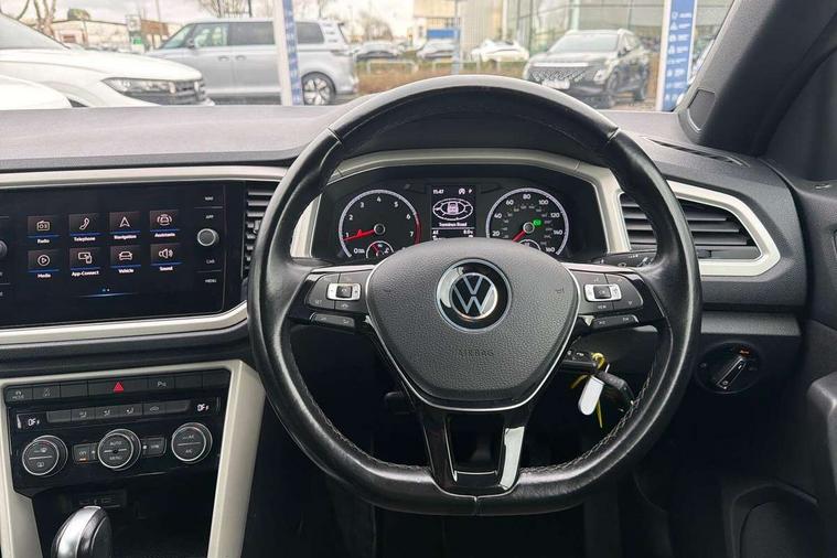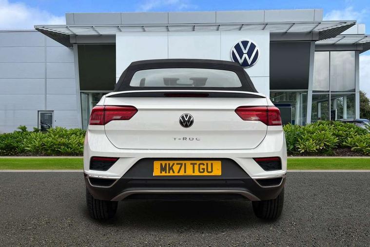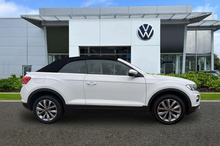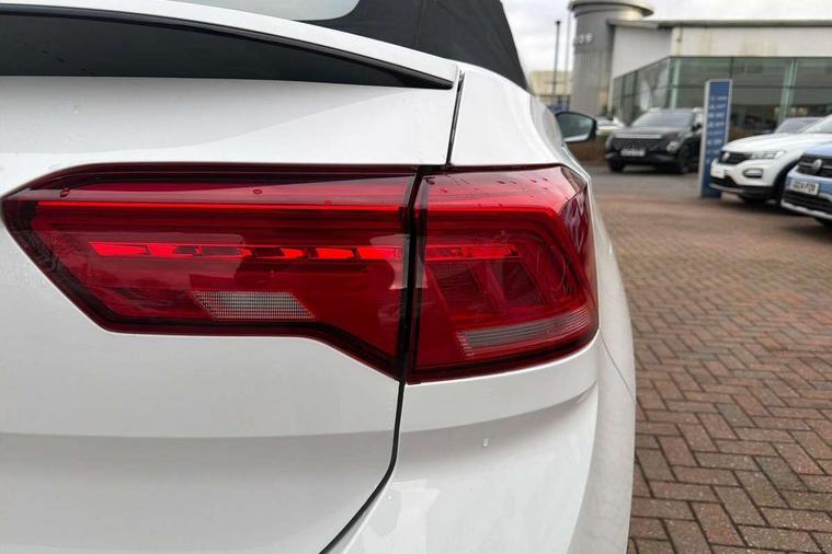 8" colour touch screen, Adaptive cruise control, Bluetooth telephone and audio connection for compatible devices, Brake pad wear indicator, Car information display, Car-Net Security and Service, Driver alert system with fatigue detection, Driver tips and journey analysis, Dynamic road sign display, Emergency call service, Lane assist with warning text instrument cluster, Mobile phone interface, Modified key software - reduce switch off time for key status change to Long no motion, Multifunction computer with visual gear change recommendation for fuel consumption, Navigation system discover media including streaming and internet, Online services, Power assisted speed sensitive steering, Speedo and rev counter, electronic odometer, trip, service interval display, digital clock and fuel gauge, Start/stop system with brake energy recovery, Tailgate/trunk lid release from outside, Warning sound and light for front seatbelts unfastened, Wired and wireless app connect, Bluetooth - Simultaneous pairing of 2 compatible mobile devices, DAB Digital radio, Diversity antenna for FM reception, Music playback - MP3, WMA and AAC files, SMS functionality - read, compose and send SMS messages using touch-screen display, Title and cover art display, USB-C Interface and USB charging socket, WeConnect plus, Auto dimming interior rear view mirror, Automatic coming/leaving home lighting function and daytime running lights, Automatic hazard lights activation under emergency braking, Body colour rear roof spoiler, Body coloured bumpers and radiator grille with chrome trim and front fog lamps with chrome bezel, Body coloured exterior mirror housings and door handles, Chrome effect left and right trapezoid exhaust tailpipe fascia surround, Chrome trim on upper and lower radiator grille, Dusk sensor, Electrically power adjustable, heated, folding, auto dimming, front passenger exterior door mirror lowering function, Front and rear electric windows, Heat insulating glass windscreen, High level 3rd brake light, LED rear number plate lights, LED tail lamp rear comination lamps, Power operated canvas convertible top, Rain sensor, Rear exhaust tailpipe, Rear fog lamp, Volkswagen roundel, Windscreen wiper with intermittent wipe light, 12V socket in centre console storage area, 2 front reading lights, 3 spoke leather wrapped multifunction steering wheel, 50/50 rear seat bench split folding rear seat backrests, Activated charcoal canister for intensified evaporation system, Black door lower parts with chrome trim, Chrome plated surround to light, mirror and window switch, Climate control - 2 zone electronic air conditioning with automatic air recirculation and allergy filter, Entry aid easy entry (Front folding seats), Front + rear carpet mats, Front centre armrest, Front comfort seats with manual height adjustment, Front cupholders x 2, Front seat back storage pockets, Glove Compartment with light, Height/reach adjust steering wheel, Illuminated vanity mirrors in sun visors with air bag label on sun visor and b-pillar, Instrument lighting, white adjustable panel illumination, Interior light delay, Interior light in footwell, Isofix easy fit child seat preparation for 2 outer rear seats, Luggage compartment lighting, Rear head restraints, Standard pedal cluster, Storage compartments in driver and front passenger doors, White ambient lighting, 2 x 3-point rear seatbelts, ABS, Autonomous emergency braking, Driver and front passenger safety-optimised head restraints, Drivers and front passengers airbags with passengers deactivation switch, Drivers seatbelt reminder, Electronic parking brake with auto hold, Electronic stability control (ESC) includes ASR, EDL, EDTC and trailer stabilisation function, Front assist with city emergency braking and pedestrian monitoring, Pedestrian monitoring, Predictive pedestrian protection, Rigid safety cell with front and rear crumple zones, Side airbag/thorax airbag system, for front passengers, Single tone horn, Three point height adjust front seatbelts + pretensioners, Tyre pressure loss indicator, Tyre pressure monitor, Ventilated front and rear disc brakes, Volkswagen roadside assistance, Alarm with interior protection and deactivation via infotainment system, Electronic engine immobiliser, Dashboard unicolour out of hard material including decorative insert 1st line different colours chooseable, Silver silk decorative inserts in dash and front door panels,