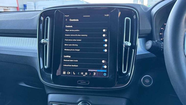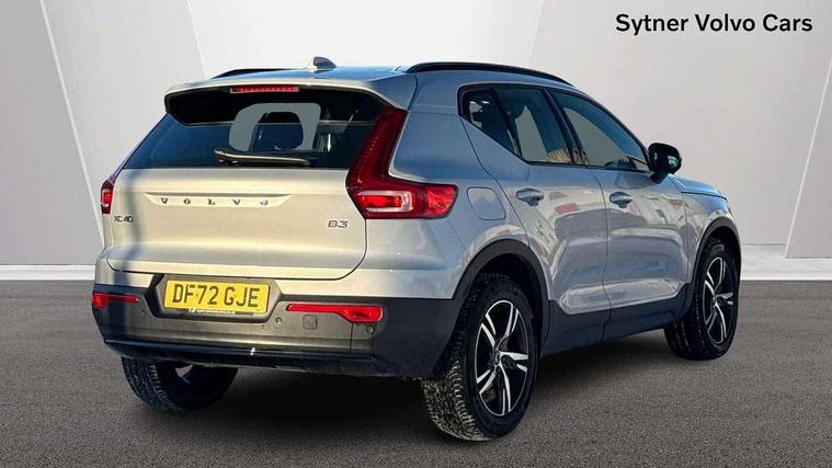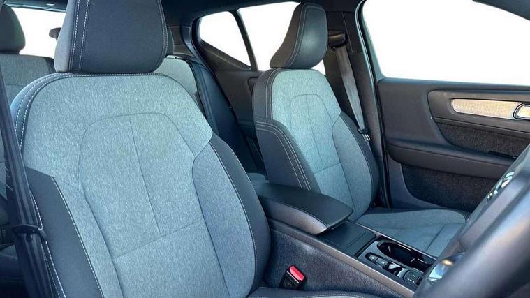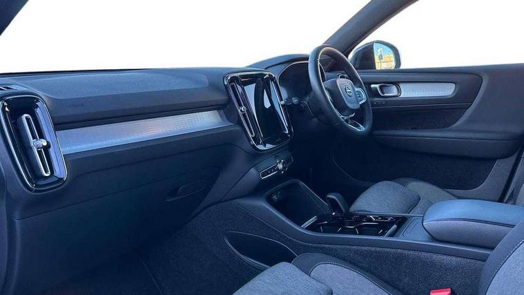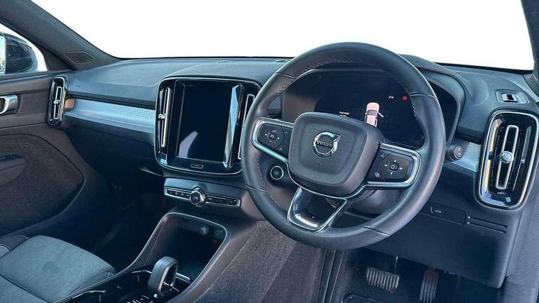 12.3" Progressive Driver Display, 9" centre console portrait touch screen, Adjustable steering wheel force, Bluetooth hands free telephone kit, Cruise control, Driver awareness - blind spot information system with steer assist, cross traffic alert with autobrake, rear collision warning and migitation, E-call, Front park assist, Google automatic services - Nav with google maps, apple carplay/android auto, voice recognition with google assistant, Hands free power tailgate, Lane keep assist with driver alert control, Oncoming Lane Mitigation, Rear park assist, Rear park assist camera, Speed limiter, Speed sensitive steering, Wireless/Inductive Mobile Phone Charging, Dynamic chassis, DAB Digital radio, High performance sound, 8 speakers/250W, front USB and 2 rear type C USB, Steering wheel mounted remote controls, Adaptive brake lights with high level LED brake lights, Auto dimming feature for exterior door mirrors, Auto dimming interior mirror, Automatic headlamp levelling, Automatic LED Headlights + Active high beam incorporating daytime running lights, Front aluminium tread plates, Front and rear electric windows, High gloss black front and rear skid plate, High gloss black mesh front grille with high gloss black surround, High gloss black window trim, Home safe and approach lighting, Integrated roof rails in high gloss black, LED front fog lights, Puddle lights, Rain sensor with automatic windscreen wiper activation, Rear side wing doors, Rear wiper, Roof antenna, Roof spoiler, Visible VIN plate, 12V socket in front tunnel console and luggage compartment, 2-Zone electronic climate control with CleanZone air quality system and pollen filter, 3 seat bench in 2nd row, 3 Spoke tailored steering wheel with chrome trim, 60/40 versatile split folding rear seat, A-pillar parking ticket holder, Ambient front door and instrumental panel lighting, Centre console cupholders and storage, Flexible load floor and grocery bag holder, Floor mats, Front door pocket and front cupholder illumination, Front footwell illumination, Front headrests, Front reading light and theatre lighting, Front seat cushion extensions, Front tunnel pocket, Glovebox bag hook, Heated front seats, Height adjustable passenger seat, Height/reach adjustable steering column, High gloss centre tunnel deco, Illuminated glovebox, Illuminated luggage compartment, Illuminated tailgate, Illuminated vanity mirrors, Integrated waste bin, Isofix attachments on outer rear seats, Load protection net, Multi directional lumbar support, Power driver seat with memory + exterior mirrors memory, Rear armrest / integral cup holders / storage tray, Rear headrests, Rear reading and courtesy lights, Single front passenger seat, Underfloor cargo storage, Climate pack without heated front seats - XC40, 3x3 point rear seatbelts, City safety with steering support with Pedestrian + cyclist + front collision warning with full auto brake and rear auto brake, Drivers knee airbag, Dual stage driver/passenger airbags, Electronic parking brake with auto hold, First aid kit, Front and outer rear seatbelt reminder and pretensioners, Front seats SIPS airbags, Hill descent control, Hill start assist, Inflatable curtain, Passenger airbag cut-off device, Power child locks on rear doors, Road sign information display, Run off Road Mitigation, Run off Road Protection, SIPS (Side Impact Protection System), Slippery road and hazard light alert, Stability and Traction Control with Spin control, Engine Drag Control and Corner Traction Control, Tyre pressure monitoring system, Vehicle deceleration control with Anti-lock Brake System, Electronic Brake Distribution and Emergency Brake Assist, Warning triangle, WHIPS whiplash protection system - front, Anti-theft alarm including immobiliser/volume sensor + level sensor, Key integrated remote control central locking + fuel flap with deadlocking system and auto open/close power windows, Keyless drive includes keyless entry and keyless start, Locking wheel nuts,