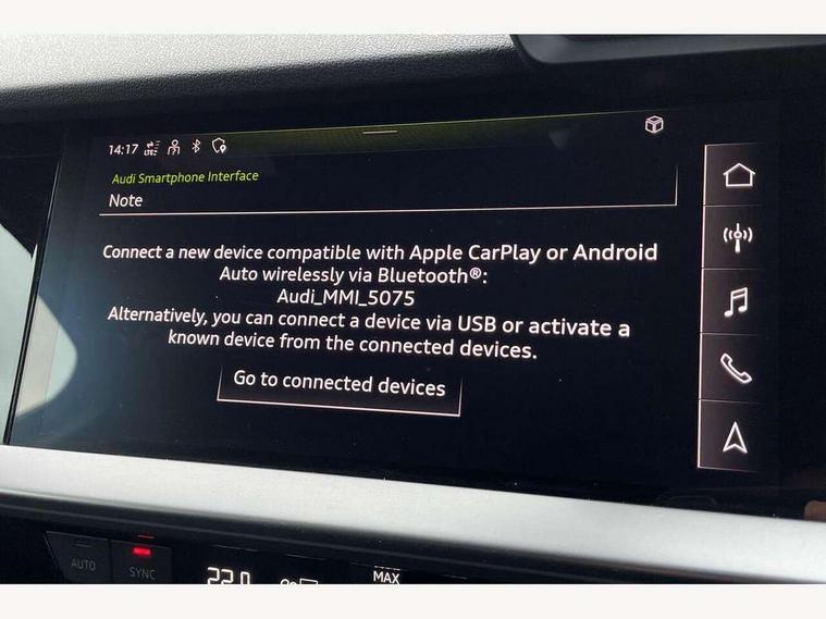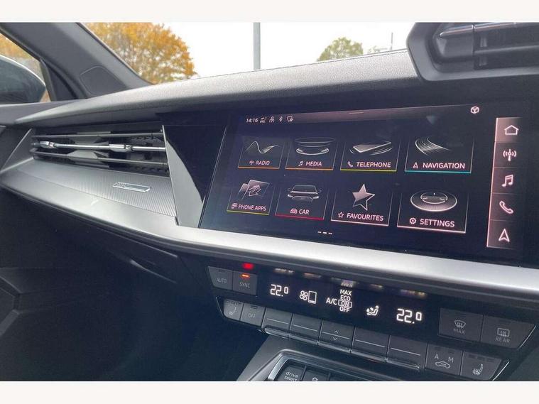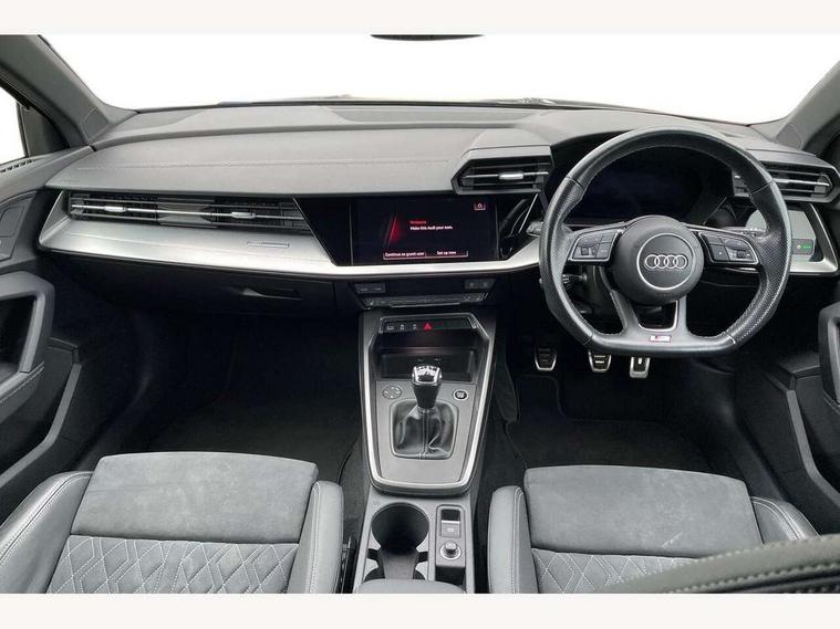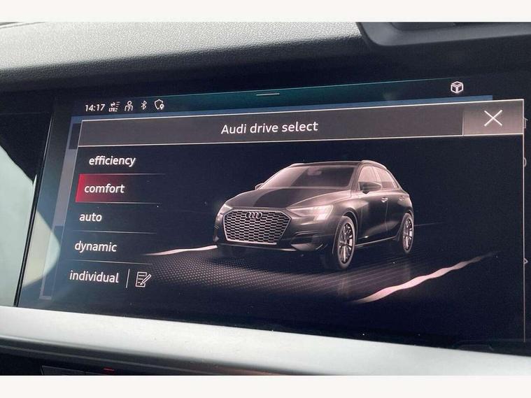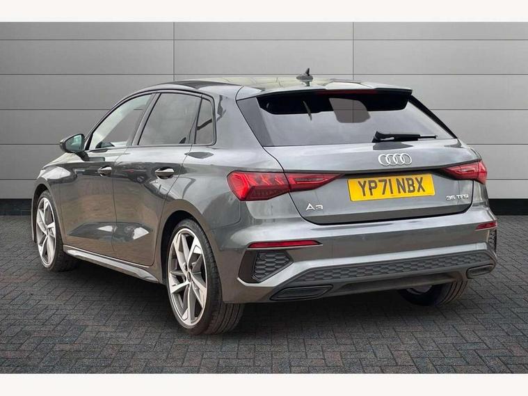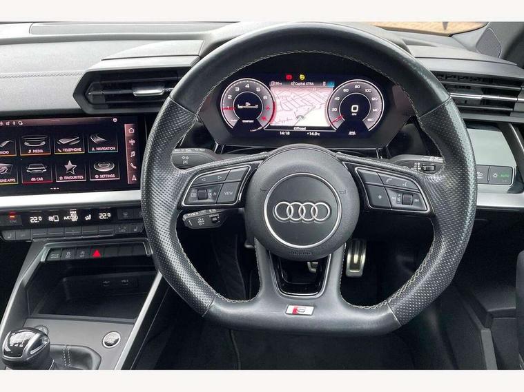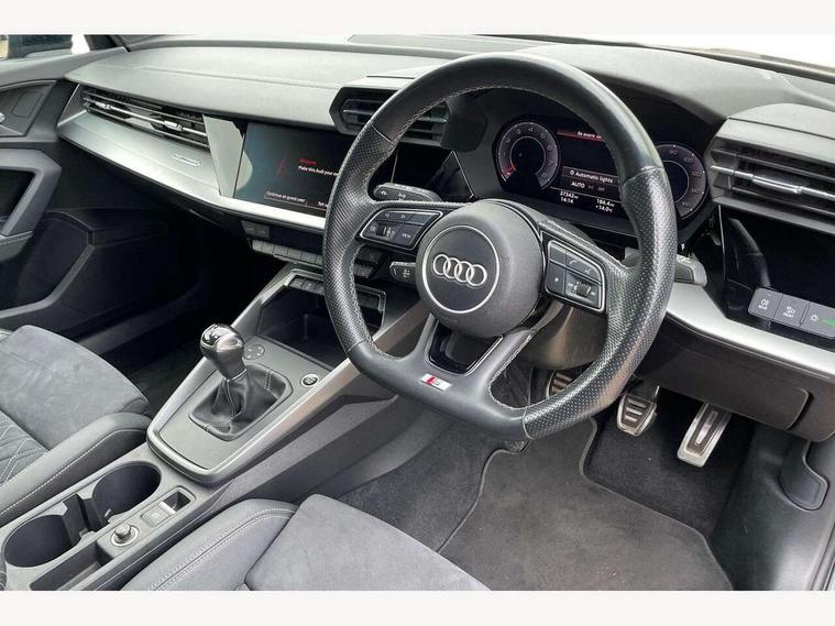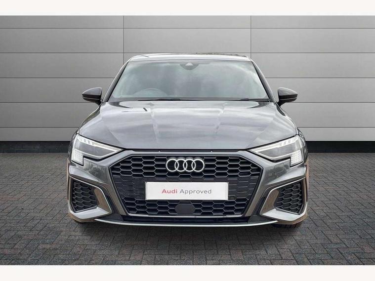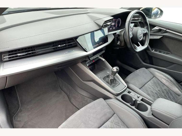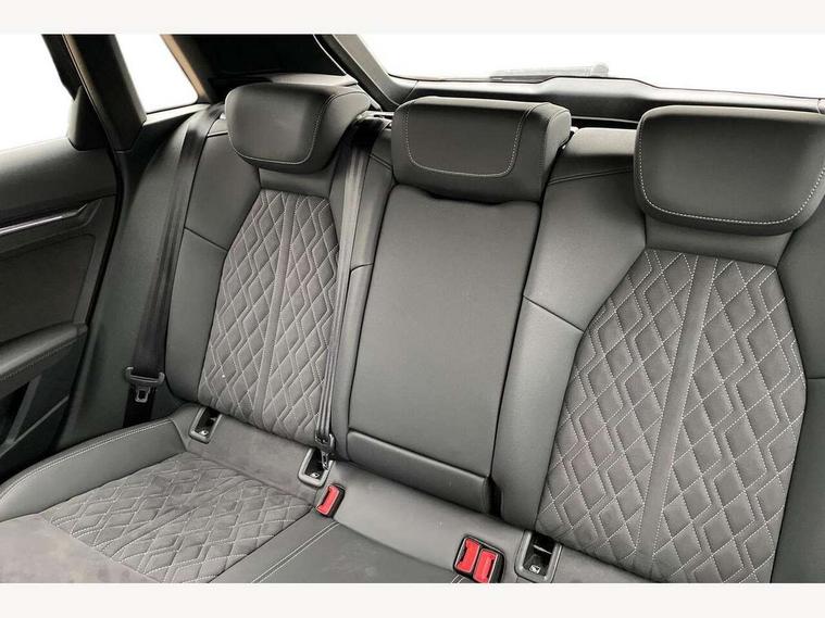 Audi connect emergency call and service, Audi drive select (Auto, Comfort, Dynamic, Efficiency and Individual), Audi smartphone interface, Audi virtual cockpit plus - 12.3" full HD resolution dynamic digital instrument cluster, Automatic start/stop system with recuperation, Bluetooth interface, Collision avoidance assistant, Electromechanical power speed sensitive steering, Lane departure warning system, MMI Navigation Plus with high resolution 10.1" colour touch screen display, Service indicator, Trip computer, Voice control system with natural language interaction, Sports suspension, 2xUSB-C connection with data and charging functions, 6 passive loudspeakers, DAB Digital radio, 3rd brake light, Acoustic glass windscreen, Audi matrix LED headlights with LED rear lights + dynamic front and rear indicators, Auto dimming frameless rear view mirror, Body colour front spoiler blade, Front electric windows, Headlight washers, Illuminated aluminium inserts front door sills with S logo, LED daytime running lights, Light and rain sensors, Privacy glass - dark tinted rear window, rear door and side windows, Rear diffuser in grained matt black, Rear electric windows, Rear side air outlets in grained matt black, Rear wiper, S roof spoiler, 12V socket and storage compartment in front centre console, 4 way electrically adjustable lumbar support for driver and front passenger, 40/20/40 split folding rear seat bench with cupholder, Black cloth headlining, Dual zone electronic climate control, Front and rear centre armrest in leather, Front and rear headrests, Front/rear floor mats, Heated front seats, Height and reach adjustable steering wheel, Interior lighting - glove compartment light and right hand side, Luggage compartment floor covering, Seat side bolsters, Stainless steel pedals and front footrest, Aluminium interior elements pack - A3 Sportback, Black styling pack - A3 Sportback, Dinamica microfibre/mono.pur 550 artificial leather pack - A3 Sportback, Extended ambient lighting pack - A3 Sportback, LED interior lighting pack - A3 Sportback Edition 1/Vorsprung, 3x3 point rear seat belts, Driver and front passenger airbag with passenger airbag deactivation, Electronic Stabilisation Control (ESC) including ABS, ASR and EDL, First aid kit with warning triangle and 2 safety vests, Front side airbags with head airbags and interaction airbag, Hill hold assist, Pre-sense front with pedestrian and cyclist detection, Seatbelt monitoring, Tyre pressure loss indicator, Anti theft alarm, Anti-theft wheel bolts, Electronically operated child lock, Immobiliser, Remote control central locking, Accent surfaces in the dashboard and centre console in platinum grey silk effect paint finish, Dark spectrum aluminium inlays, 19" 5 arm trapezoid design alloy wheels in titanium matt grey with diamond cut finish,