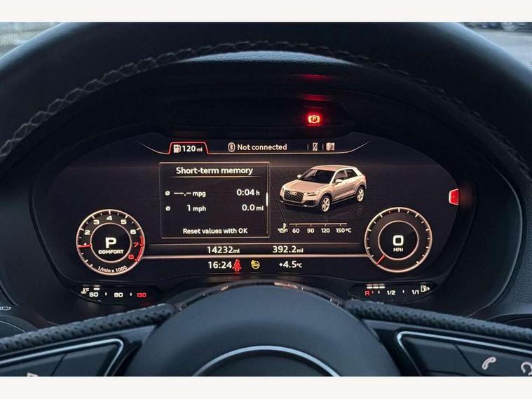 3D map display, Audi connect navigation and infotainment includes innovative services, Audi connect remote and control connects your vehicle to your smartphone, Audi drive select: S tronic - power steering assistance + engine + gearshift (modes: comfort, auto, dynamic, efficiency, individual), Audi smartphone interface - Apple carplay/Android Auto, USB connect, 2xSDXC card readers, voice control for navi, telephone, music and 3rd party apps, Audi virtual cockpit, Automatic start/stop system with recuperation, Bluetooth interface includes bluetooth audio streaming, Cruise control, E-call, Jukebox hard drive memory for music (10GB), MMI navigation plus with 8.3" colour MMI screen and MMI touch, Natural voice recognition, Power operated tailgate, Progressive steering, Rear parking sensors, Sport suspension, 6 passive loudspeakers, DAB Digital radio, Auto dimming rear view mirror, Black window trims, Body colour door mirrors, Electrically adjustable, folding, auto dimming and heated door mirrors with integrated LED side indicators, Front windscreen with grey tinted sunband, LED daytime running lights, LED headlights with dipped beam, high beam, position lights, indicators, LED rear lights, LED third brake light, Privacy glass - dark tinted rear and rear side windows from B-pillar backwards, Rear side wing doors, Rear wiper, S Line badges on the front wings, S Line body styling - front and rear bumpers, side skirts, radiator grille, rear diffuser insert and front air intakes, Variable front intermittent wipers, Wheel arch trims in manhattan grey, 12V socket in front, 3 seat bench in 2nd row, 3 spoke multi-function leather steering wheel with S badging, 4-way electric lumbar support for front seats including manual seat height adjustment for both front seats, 60/40 split folding rear seat bench, Black carpets, Black cloth headlining, Front and rear head restraints, Front centre armrest, Front sport seats, Front/rear floor mats, Height/reach adjust steering wheel, Illuminated door sill trims with S logo, ISOFIX child seat mounting in front passenger and rear outer seats, Manual air conditioning, Single front passenger seat, Stainless steel pedals, 3x3 point rear seatbelts, 6 airbags - Front, curtain and front side airbags, Electromechanical parking brake, Electronic stabilisation control including ABS, ASR and EDL, Front passenger airbag deactivation, Hill hold assist, Pre-sense front with pedestrian recognition, Seatbelt monitoring, Tyre pressure warning light with visual and acoustic warning, Warning triangle and first aid kit, Anti theft alarm, Anti theft wheel bolts, Electronically operated child locks, Remote central door locking, Aluminium interior element, Black dashboard, Matt brushed aluminium trim inlays, Tool kit,
