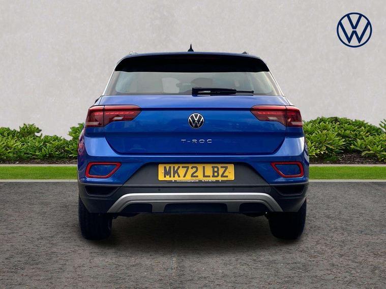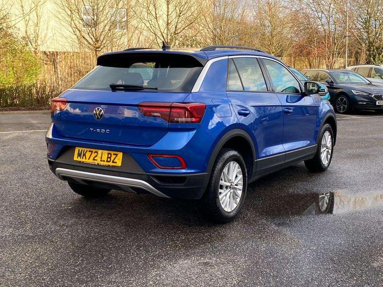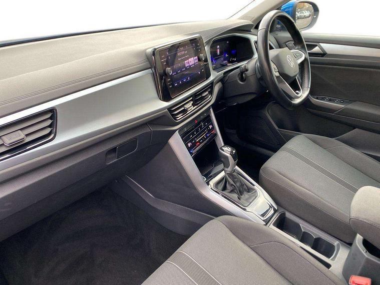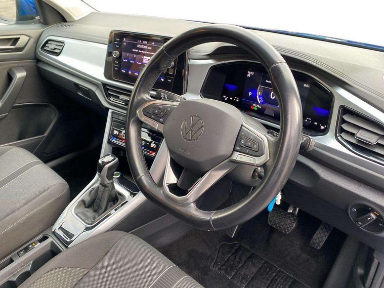 Bluetooth mobile phone interface, Driver alert system with fatigue detection, Driver tips and journey analysis, Emergency call service, Lane keeping system Lane Assist, Modified key software - reduce switch off time for key status change to Long no motion, Online services, Park assist including front and rear parking sensors, Power assisted speed sensitive steering, Service interval indicator, Tailgate/trunk lid release from outside, Think blue trainer driver tips and journey analysis, Warning sound and light for front seatbelts unfastened, Wireless app connect, Battery regeneration during braking, Front shock absorption, Rear shock absorption chassis with increased ride height, Start/stop function with battery regeneration, DAB Digital radio, Diversity antenna for FM reception, Front and rear 6 speakers, Music playback - MP3, WMA and AAC files, Premium USB cable in choice of either Apple or Android smartphone compatibility, SD card slot, Simultaneous pairing of 2 compatible mobile devices, Title and cover art display, We Connect and We Connect Plus functionality, 3rd brake light, Auto dimming interior rear view mirror, Automatic hazard lights activation under emergency braking, Automatic headlight control with LED separate daytime running lights with coming/leaving home function, Black roof rails, Body coloured bumpers and radiator grille with chrome trim and front fog lamps with chrome bezel, Body coloured exterior mirror housings and door handles, Extended roof spoiler, Exterior mirrors aspherical on driver side, convex on front passenger side, External USB type C socket and charging sockets, Front windscreen wiper with intermittent wipe and 4 position delay, Heated rear window, LED Headlights, LED rear combination lamps, LED rear number plate lights, LED tail lamp rear comination lamps, Power windows with comfort operation and circuit breaker, Rain sensor, Rear exhaust tailpipe, Rear fog light on one side and reversing lights on both sides, Rear side wing doors, Rear wash/wipe with intermittent wipe setting, Remote electrically foldable door mirrors, puddle lights and reverse activated passenger's door mirror, 12V power socket in centre console, 3 rear head restraints, 3 seat bench in 2nd row, 4 load lashing points in luggage compartment, Air care climatronic air conditoning system with active combination filter and 2-zone temperature control, Ambient lighting with mirror logo projection, Cloth upholstery, Door and side trim panel in cloth, Drawer under drivers seat, Driver/front passenger seat height adjustment, Front centre armrest, Front comfort sports seats, Front cupholders x 2, Front reading light, Instrument lighting, white adjustable panel illumination, Interior light delay, Isofix child seat preparation, Leather gearshift handle, Load-through provision with cup holder when folded down ('Unsplit rear seat bench, split folding backrest, with centre armrest), Luggage compartment lighting, Lumbar support for driver's and front passengers seat, Non-folding front passenger seat backrest, Single front passenger seat, Storage compartment in left and right luggage area, Storage compartment in rear doors, Storage compartments in driver and front passenger doors, Sunvisors with illuminated vanity mirrors, Variable boot floor, height adjustable and removable, Driver assistance pack without proactive passenger protection - T-Roc, 3 point height adj front seatbelts + pretensioners, 3 point seatbelts in outer rear with ECE label, ABS, Child locks on rear doors, Driver and front passenger airbag with front passenger airbag deactivation, Driver and front passenger safety-optimised head restraints, Drivers seatbelt reminder, Electronic parking brake, Electronic Stability Control (ESC) inc EDL (Electronic Differential Lock) and ASR (Traction Control), Front and rear passengers curtain airbag system including front side airbags, Front assist with city emergency braking and pedestrian monitoring, Front disc brakes, Front seat side impact airbags, Hill start assist, Predictive pedestrian protection, Rear disc brakes, Single tone horn, Tyre pressure loss indicator, Volkswagen roadside assistance, Alarm with interior protection, Anti-theft alarm system with interior monitoring, backup horn, and towing protection, Remote central locking with SAFELOCK, radio remote control with 2 remote control folding keys, Pewter matt decorative inserts for intrument panel, centre console and door panels at the front, Trims for alloy wheels,