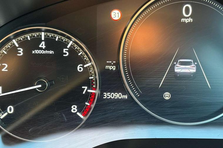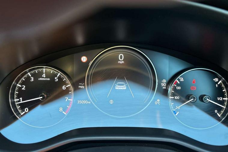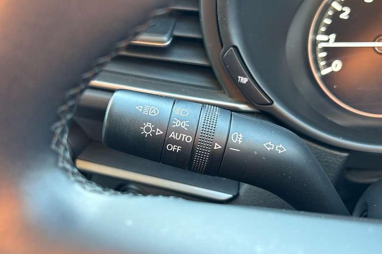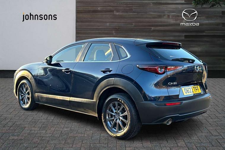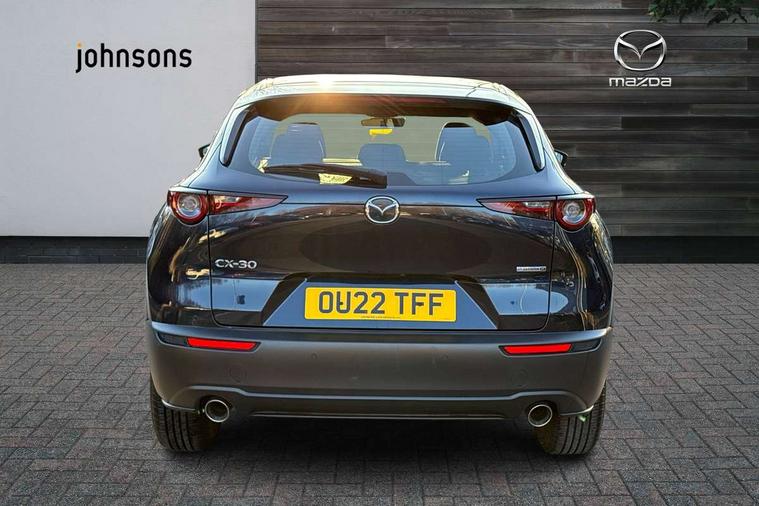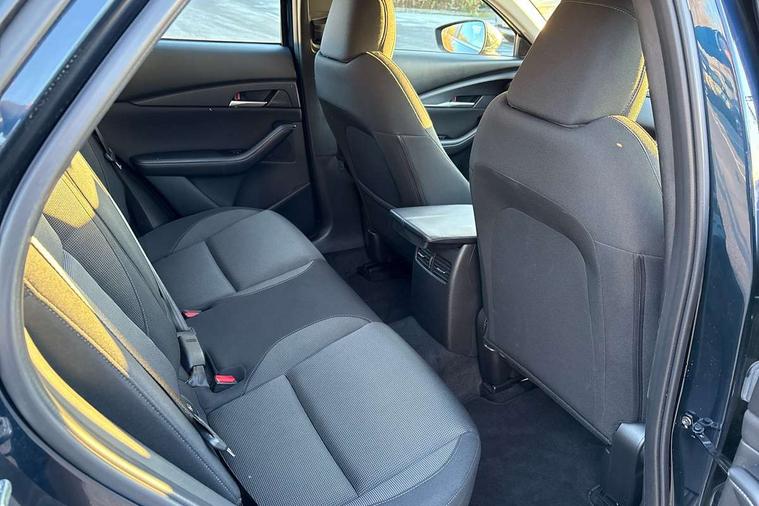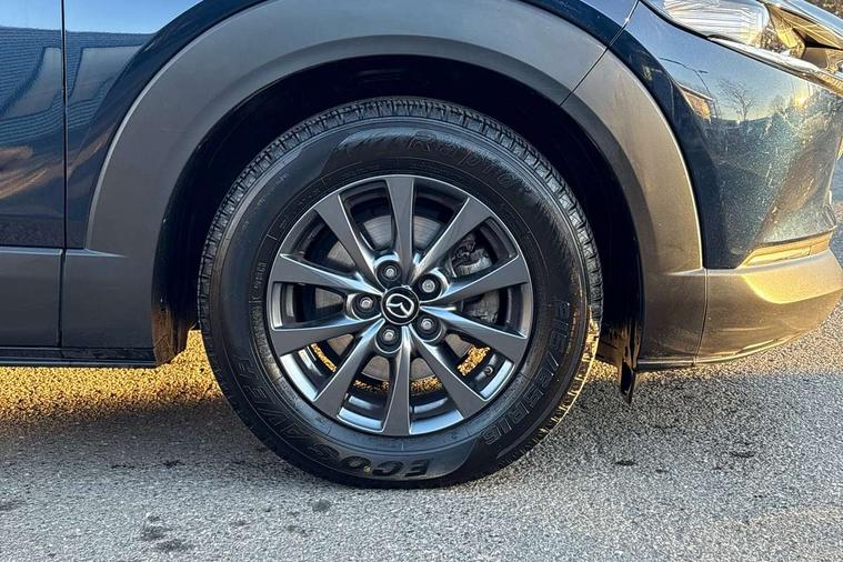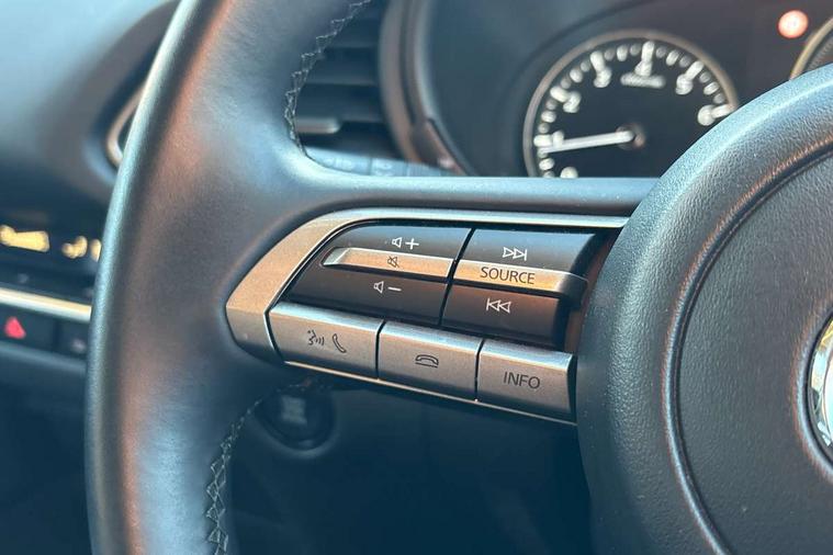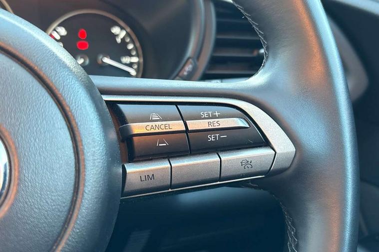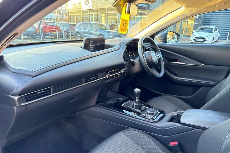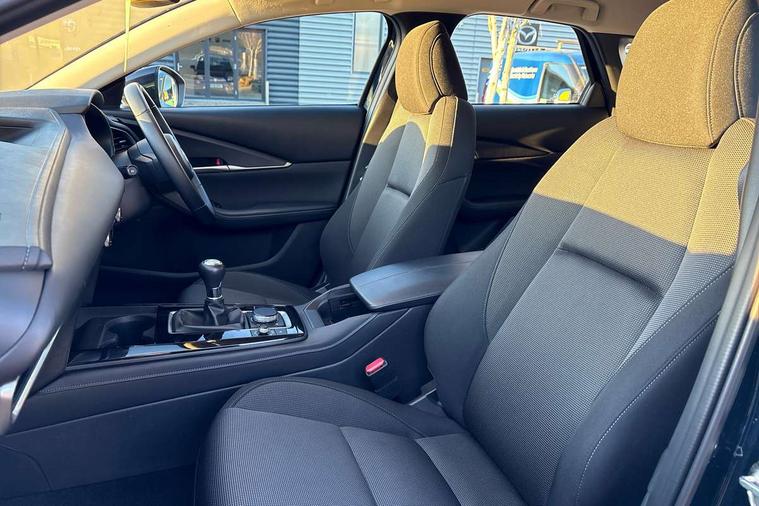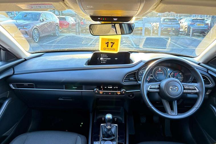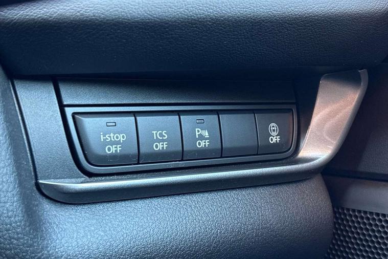 7" TFT Colour driver instrument panel display, 8.8" Colour centre touch screen display with Mazda Connect infotainment, Adaptive cruise control (Mazda radar cruise control), Apple car play/Android Auto, Blind spot monitoring with rear cross traffic alert, Driver attention alert system, E-call with GPS, Emergency stop signalling system, Engine start/stop button, Front and rear parking sensors, Integrated bluetooth, Integrated Mazda navigation system, Intelligent speed assist, Lane keep assist system (LAS) with Lane departure warning system (LDWS), Mazda connected services, PAS, Reversing camera, Service indicator, Traffic sign recognition, Trip computer, i-stop, 2 USB charging ports in front inner central armrest, AM / FM / DAB radio with 8 speakers, Multimedia Commander including separate volume dial, Steering wheel mounted audio/bluetooth controls, B-pillar and C-pillar garnishes in satin black finish, Auto dimming driver's door mirror, Auto dimming rear view mirror, Auto headlight levelling, Body coloured, electrically adjustable, heated auto power folding door mirrors with integrated indicators, Chrome finish signature wing in front grille, Coming/leaving home lighting function, Dual chrome exhaust, Dusk sensing headlights, Electric front/rear windows with one touch auto up/down, Front kodo turn signal, Gloss black rear roof spoiler, LED headlights with halogen daytime running lights and high beam control, LED rear combination lights, Rain sensing front wipers with adjustable speed and intermittent wipe, Rear fog lights, Rear side wing doors, Rear wiper, Satin black front grille, Third brake light, 12V power outlet in centre console, 3 seat bench in 2nd row, 60/40 split fold down rear seats, Cloth upholstery with interior accents, Dark cloth door panel inserts, Dashboard, door cards and front centre armrest in black cloth, Driver and front passenger visors with covered vanity mirror and driver ticket holder, Driver seat manual slide, recline, height and seat tilt adjust, Driver, front passenger and two rear door storage, Driver, Front passenger and two rear grab handles with coathooks, Dual zone climate control air conditioning with rear air vents, Folding rear centre armrest with two cup holders, Front and rear (x3) head restraints, Front and rear LED lighting, Front armrest, Front centre storage with two cupholders, Front passenger seatback pockets, Front passengers seat manual slide, recline and height adjustment, Gear shift indicator, Glovebox illumination, Heated front seats with 3 stage setting, ISOFIX child seat anchorage points attached on outer rear seats, Leather wrapped gear shift knob, Leather wrapped steering wheel with telescopic and tilt adjustment, LED luggage compartment lighting, Light roof headlining and pillars, Roof mounted sunglasses holder, Single front passenger seat, 3 point ELR front seat belts x2 with pretensioners, 3 point ELR rear seat belts, Anti-lock braking system (ABS), Drivers knee airbag, DSC - Dynamic Stability Control, Electronic parking brake with auto disengage function and auto hold function, Front and rear curtain airbags, Front dual stage driver and single stage front passenger airbags, Front passenger airbag cut-off switch, Front side airbags, Front smart city brake support, G-Vectoring control plus, Hill launch assist, Manual child lock in rear doors, Mild Hybrid system with regenerative braking, Seatbelt reminder for driver/front passenger and rear seats, Traction control system (TCS), Tyre pressure monitoring system (TPMS), Remote central locking with deadlocking and automatic door lock when driving, Smart keyless entry, Thatcham accredited alarm and immobiliser, 16" Grey alloy wheels, Emergency tyre repair kit,