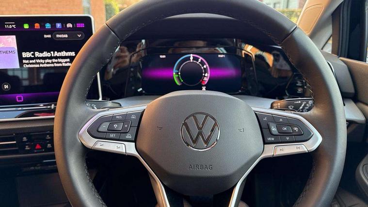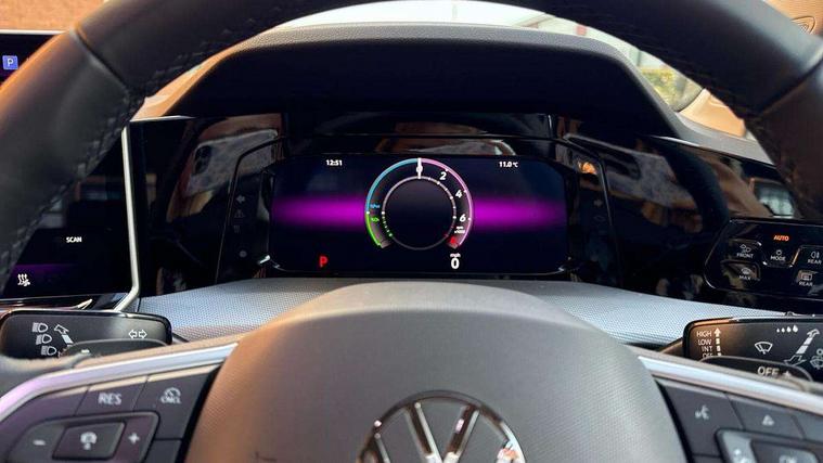 Activated carbon canister, Adaptive cruise control (ACC), Advanced driver attention and drowsiness monitor, Dynamic road sign display, E-Sim card for online connectivity, eCall emergency call system, Multi-color Digital cockpit pro, selection of different info profile possible, Multifunction front facing camera for distance control, Navigation system, Oncoming vehicle braking when turning including swerve support, Side assist blind spot lane change system, rear traffic alert and exit warning system, Speed limiter, Speedo, rev counter, electronic odometer, trip, service interval display, exterior temperature and fuel gauge, Traffic jam assist, Voice enhancer and voice control, Warning signal and warning light for front and rear seatbelts not fastened, We connect plus preparation, We connect preparation, Wireless app connect, Charging cable Mode 2 Type 2 (10A), Charging cable mode 3, type 2 32 A, Hybrid propulsion system, Start-stop system with battery regeneration (recuperation - energy recovery during braking), XDS electronic differential lock for improved traction and handling, 2 USB C ports in front, 2 USB charging sockets on the centre console in the rear charging capacity upto 45W, 6 Speakers - 4 in front and 2 in rear with central speaker, Digital radio reception (DAB), Diversity antenna for FM reception, Gaming platform via car app, Infotainment system with 12.9" display, Mobile phone interface with inductive charging feature, 3rd brake light, Automatic headlamp activation with Coming home and Leaving home feature, Body colour bumpers, Body colour door handles, Body colour door mirrors, Chrome trimmed front air intake surrounds, Chrome trims on the side window bottom, Exterior mirrors convex on the left and aspherical on the right, Front and rear electric windows, Heat insulating windshield made of laminated glass, LED separate daytime running light, Rear exhaust tailpipe, Rear fog light on one side and reversing lights on both sides, Rear side wing doors, Rear windscreen washer and wiper with interval delay, Remote electrically foldable door mirrors, puddle lights and reverse activated passenger's door mirror, Welcome light with surround lighting, 12V socket in front centre console, 12V socket in luggage compartment, 3 rear head restraints, 3 seat bench in 2nd row, Air care climatronic 3 Zone automatic climate control with rear air conditioning control panel, Ambient lighting with 30 colour including LED light unit in front footwell with selectable light colour, Chrome plated radiator grille inserts, air vent surrounds and light switch surrounds, Front + rear black carpet mats, Front centre armrest, ISOFIX anchors for child seats on outer rear bench seats and on front passanger seat compatible for i-Size, Luggage compartment lighting, Plastic gear knob, Rear cupholder and loadthough, Single front passenger seat, Soul black instrument panel, Split folding backrest with centre armrest and unsplit rear seat bench, Standard pedal cluster, Storm grey roof lining, Sun visors with illuminated vanity mirrors, Driver assistance pack - Golf Estate/Hatchback Auto, 3 point height adj front seatbelts + pretensioners, 3 rear three point seatbelts, ABS, Autonomous emergency braking front assist with pedestrian and cyclist monitoring, Child locks on rear doors, Driver and front passenger airbag with front passenger airbag deactivation, Electronic parking brake with auto hold, ESC (Electronic Stability Control), Extended pedestrian protection measures, Hill start assist, Rear disc brakes, Two tone horn, Tyre pressure loss indicator, Volkswagen roadside assistance, Anti theft wheel bolts, Preparation for alcohol interlock, New brushed dark metal decorative inserts for dashboard and front door panels, Tool kit for tyre mobility set, Tyre mobility kit Includes 12V compressor and tyre sealant,