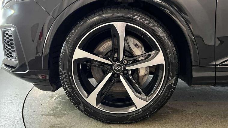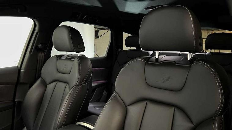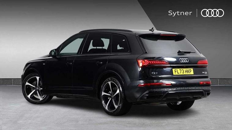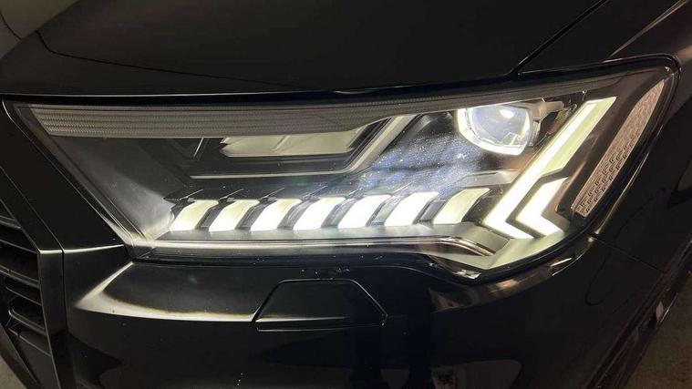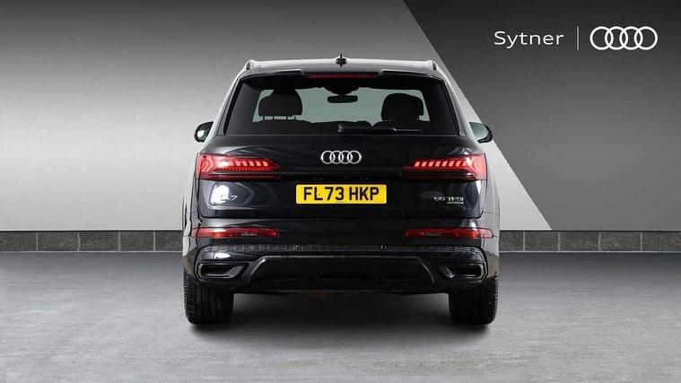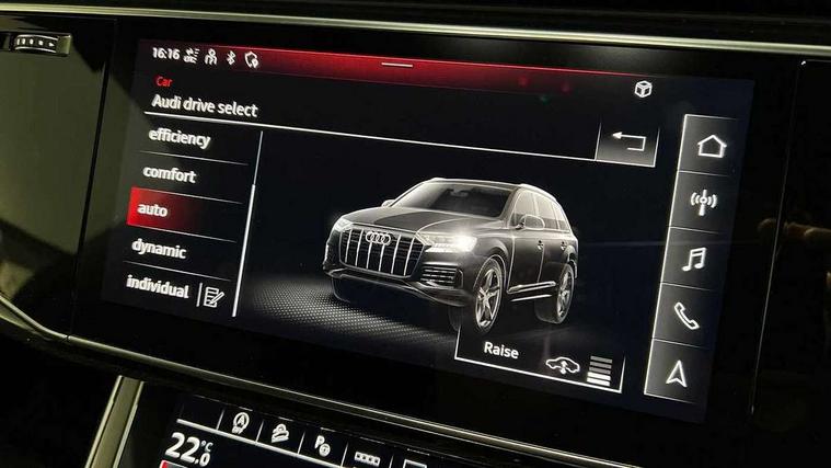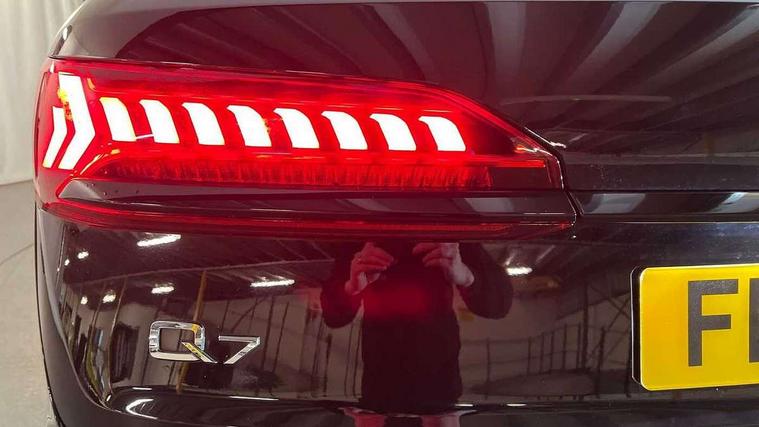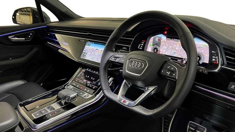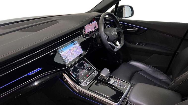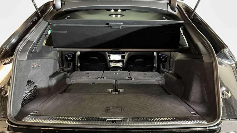 Audi connect safety and service (e-call), Audi connect with Amazon Alexa Integration, Audi drive select (Auto, Comfort, Dynamic, Efficiency, Individual, Off-road and All road), Audi phone box light with wireless charging, Audi virtual cockpit - 12.3" high-resolution LCD display with fully customisable instrument cluster, Bluetooth interface, Camera based traffic sign recognition, Electromechanical steering, MMI navigation plus with MMI touch screens includes 10.1" and 8.6" screens with haptic feedback, Natural voice recognition, Parking system plus with 360 degree display (front, rear and side sensors) - acoustic and visual park assist system, Power operated tailgate, Rear view camera, Smartphone interface includes wireless Apple carplay/Android Auto, Start/stop system, 48V Mild hybrid technology, 85 litre fuel tank, Adaptive air sports suspension, Quattro all wheel drive with self locking centre differential, Audi music interface - front 2 USB-C ports with charger and data functions, Audi sound system with 6 channel amplifier, 180 watt amplifying capacity and 10 loudspeakers including subwoofer, DAB digital radio module, 3rd brake light, Aluminium window trim, Audi Beam uses LEDs to project S emblem with red rhombus onto the ground when opening the side doors (front/rear), Auto dimming frameless rear view mirror, Black roof rails, Bumpers in contrast paint scandium grey finish includes door trim and wheel arch trim strips, inlays in door strip contain quattro embossing, Dark tinted Matrix LED headlights with dynamic front and rear indicators, Electrically adj heated/folding + automatically dimming exterior mirrors with memory + automatic kerb side function for passenger side exterior mirror, Heat insulating glass in windshield, Integrated LED indications in door mirrors, LED daytime running lights, LED rear tail lights, Privacy glass - dark tinted rear and rear side windows from B-pillar backwards, Rear side wing doors, Rear wiper, 2 seat bench in 3rd row, 2 zone automatic climate control, 3 seat bench in 2nd row, 7 seat layout with ISOFIX points for the front passenger seat and rear passenger seat, Black cloth headlining, Comfort front centre armrest, Electric adjustable front seat with 4 way lumbar support, driver memory functionality, Folding rear seats, Front head restraints, Front/rear floor mats, Heated front seats, Illuminated door sill trims with S logo, LED interior ambient lighting, Luggage compartment cover, Luggage compartment sill protection in stainless steel, Rear head restraints, Single front passenger seat, Stainless steel pedals, Sunvisors with illuminated vanity mirrors, Black styling pack plus - Q7, 3 point seatbelts on all rear seats, Audi pre sense front, Child locks on rear doors, Driver and front passenger, front side and curtain airbags, Electromechanical parking brake, Electronic Stabilisation Control (ESC) including ABS, ASR and EDL, Extended pedestrian protection measures, Hill hold assist, Seatbelt monitoring, Tyre pressure loss indicator, Warning triangle and first aid kit, Anti theft alarm, Anti-theft wheel bolts and wheel loosening detection, Keyless Go, Remote central locking, Polished oak trim with grey finish inlay, Tool kit, Tyre repair kit,