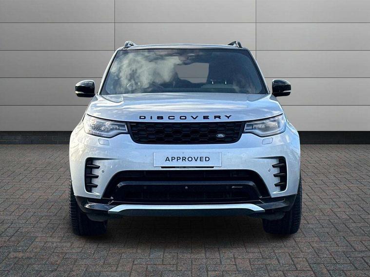 11.4" touchscreen, 3D surround camera, Adaptive cruise control, Android Auto, Apple car play, Blind spot assist, Driver condition monitor, Electric power assisted steering (EPAS), Emergency services call system, Front and rear parking aid, Lane keep assist, Power inner tailgate, Push button start, Rear collision monitor, Rear traffic monitor, Remote, Remote boot release, Service interval indicator, Speed proportional steering, Sportshift selector, Stop/start system, Traffic sign recognition with adaptive speed limiter, Trip computer, Wade Sensing, Adaptive dynamics, Dynamic stability control, Electronic air suspension, Front axle open differential, Digital Audio Broadcast radio-DAB, Dynamic volume control, Pivi pro connected, USB/aux input socket, Acoustic laminated windscreen, Animated directional indicators, Auto dimming interior rear view mirror, Automatic headlight levelling, Automatic headlights, Body colour bumpers, Body colour door handles, Centre high mounted stop light, D300 badge, Electric heated/power fold memory door mirrors with approach lights and auto dimming driver side, Electric windows with one touch open/close and anti-trap, Heated rear window, Heated windscreen, LED darkend tail lights, Metal treadplates with R-Dynamic branding, Narvik black Discovery script, Privacy glass, Puddle lights, Rain sensing windscreen wipers, Rear fog lights, Rear side wing doors, Rear wash/wipe, Trailer stability assist, Variable intermittent wiper, 12V power sockets, 12V USB charging socket in loadspace, 2 seat bench in 3rd row, 3 seat bench in 2nd row, Central hinged twin lidded storage, Ebony morzine headlining, First and second row door bins, Footwell lights, Front and rear 12V with front USB, Front passenger seat isofix location point, In-facia storage, Isofix child seat preparation for front passenger seat, Loadspace cover, Loadspace Hook, Loadspace light, Lockable glovebox, Lower centre console storage, Luggage tie downs in loadspace, Multi function steering wheel, Overhead lighting console, Premium carpet mats, Rear ISOFIX, Shopping bag hook, Single front passenger seat, Storage glovebox, Sunvisors with illuminated vanity mirrors, Third row storage, Twin front cupholders with cover, USB with 12V socket in centre console, Online pack with data plan - Discovery, R-Dynamic black exterior pack - Discovery, 3x3 point rear seatbelts, Anti-lock braking system (ABS), Brake pre-fill technology, Cornering brake control, Curtain airbags, Customer configurable autolock, Driver and passenger airbags, EBD - Electronic brakeforce distribution, Electronic traction control, Emergency brake assist, Emergency braking, ESP, Front side airbags, Gradient acceleration control, Hill descent control, Hill launch assist, Power operated child locks, Rear airbags, Roll stability control, Seat belt reminder, Torque vectoring brake, Tyre pressure monitoring system, Immobiliser, Intrusion sensor, Keyless entry, Locking wheel nuts, Remote central locking, All terrain tyres,