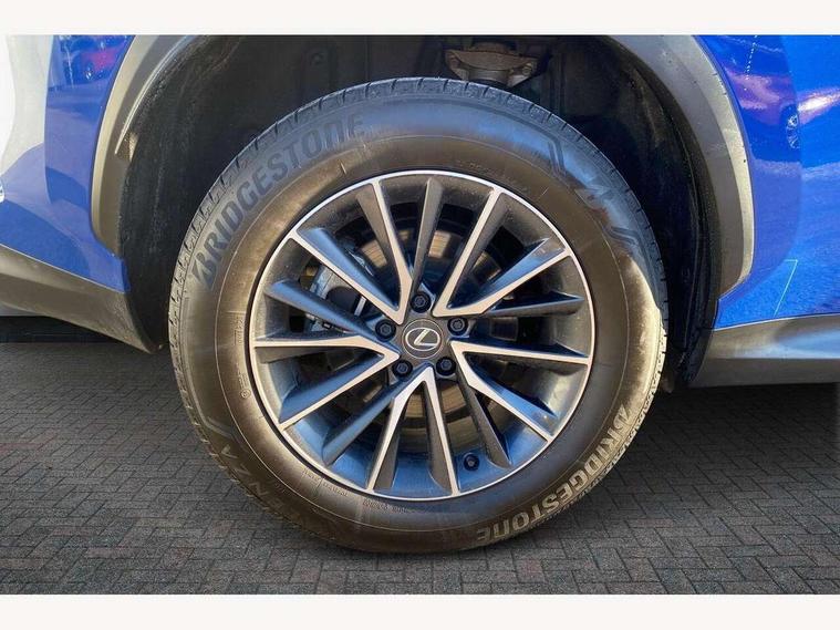 4 driving modes EV/Eco/Normal/Sport, 7" display in instrument binnacle, Blind spot monitoring with rear cross traffic alert, Bluetooth telephone connectivity, eCall emergency system, Electric speed sensitive power steering, Intelligent parking sensors - 4 front and 4 rear, Lane change flasher function, Lexus link connect - Cloud based navigation, cloud based voice assistant, always online and 9.8" VGA touchscreen, Push button starter, Reversing camera with back guidelines, Service interval indicator, Tailgate, Wireless Apple CarPlay and wired Android Auto, Wireless Smartphone charger, 6.6 kW onboard charger, All Wheel Drive (AWD), Hybrid automatic transmission, Vehicle Dynamics Integrated Management (VDIM), Vehicle Stability Control (VSC), 10 speakers, 4 USB ports - 2 front, one USB C, 2 rear USB C, DAB Digital radio, Auto dimming interior rear view mirror, Automatic headlights, Bi LED headlights, Double hidden exhaust pipes, Front and rear one touch power windows, with anti-jam protection, Heated, auto-folding, auto-dimming outside mirrors with reverse tilt function and turn indicators, Illuminated door handles with puddle light, LED brake lights and rear lights with emergency brake signal, LED cornering lights, LED daytime running lights, LED front fog lights, LED Indicators, Power back door with kick sensor, Privacy glass, rear doors and tailgate, Rain sensor windscreen wipers, Rear side wing doors, Rear wiper, Roof rails, 12V accessory port centre console and luggage compartment, 2 cupholders in front centre console, 2 way electrical lumbar adjustment for driver, 2 x fixed shopping bag hooks in boot, 2 x sun visors with vanity mirror and lamp, 3 seat bench in 2nd row, 4 x tie down hooks in the boot, 60/40 split folding rear seat, 8 way driver/passenger electrically adjustable front seats, Adjustable rear seat backrest, Card holder installed in driver and passengers sun visors, Centre armrest with storage box, Dual climate control air conditioning system, Front and rear head restraints, Front and rear textile carpet mats, Front passenger seat, Heated front seats, Heated steering wheel, Leather gear lever, LED interior illumination, Power adjustable leather steering wheel with paddle shifts, Premium Tahara leather upholstery, Rear centre armrest with 2 cupholders, Whiplash Injury Lessening (WIL) feature (active headrest) for seats, 2 x Isofix child rear seat restraints, 3 point ELR front seatbelts with pretensioners, 3x3 point rear seat belts, ABS, Adjustable seat belt anchor points, Driver and front passenger 2 stage airbag, Driver/front passenger side airbags, Drivers knee airbag, E-Latch with safe exit assist, EBD + Brake Assist, ECB (Electronically Controlled Brake System), Electronic parking brake, Front and rear curtain shield airbags, Front center airbag, Front passenger seat cushion airbag, Hill assist control, Lexus safety system - dynamic radar cruise control, pre collision system day and night, lane tracing assist, road sign, automatic high beam, OTA, Manual rear child locks, Passenger airbag cut-off device, Traction control, Tyre pressure warning, Anti-theft system with alarm, intrusion sensor, glass breakage sensor, tilt sensor and engine immobiliser, Locking wheel nuts, Smart keyless entry, Speed sensitive auto door locking, Two motion door lock with double lock, Ultra Wide Band (UWB) Anti-theft system, VIN Window etching, 3D prism black Inlay, Organic inlay, Tyre repair kit,