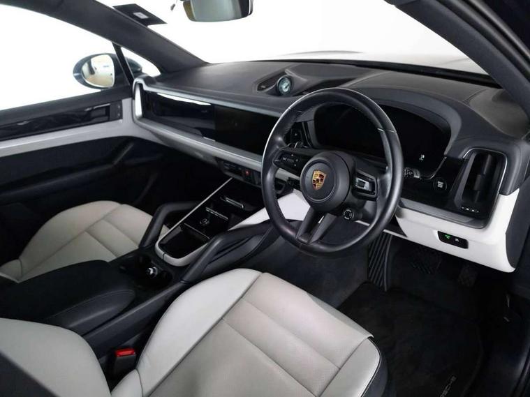 Active speed limit assist, Android Auto, Apple car play, Brake pad wear indicator, Central analogue rev counter with black dial face, power meter and pointers in acid green, Driver personalisation for climate, audio and communication, assistance systems and other customisable car systems, Emergency call service, Energy recuperating braking system, High resolution 12.3-inch touchscreen display in full HD resolution, Individual mode for individual selection of vehicle drive settings, Instrument cluster with 12.6" curved display, Instrument cluster with two high-resolution displays, Mobile phone preparation with Bluetooth interface for telephone and music, Mode switch, Porsche Communication Management (PCM) including online navigation module, mobile phone preparation, audio interfaces and voice control system, Power tailgate, Reversible occupant protection measures, Smartphone integration, Speed limit indicator, Vehicle electrical system recuperation, Warn and brake assist including pedestrian protection, 32A 230V blue industrial supply cable and basic wall mount, 75 litre fuel tank, 8 speed automatic gearbox, Aluminium cylinder heads and engine block, Direct fuel injection (DFI) with central injector position, Front and rear aluminium multi link axles, Gasoline particulate filter, Mobile charger 7.2 kW and on board AC charger with 11 kW, Mode 3 charging cable, Power electronics, battery manager and electrically powered auxiliary units, Sport mode, Standard charging cable length, Starter battery, Supply cable for domestic electrical socket (10A), Turbocharger, VarioCam Plus, Water cooled with thermal management, AM radio, Digital radio, Fast charging two USB-C PD connectivity and charging port in front storage compartment, Smartphone compartment with wireless charging, Two USB-C PD charging ports in the rear, Active air intake flaps, Aluminium roof, Auto dimming interior + exterior mirrors, Automatic headlight activation including welcome home functionality, Bumper system with high strength cross members and two deformation elements + Two receptacles with screw threads towing lug + onboard tool kit, Deletion of GTS logo on sideskirt inlays, Door handles painted in exterior colour, E-Hybrid logo on front wings with border in black, Electric windows + anti trap protection + one touch open/close drivers side, Electrically adjustable, folding and heated exterior mirrors, aspherical on drivers side including courtesy lights, Extensive aerodynamic underbody protection, Exterior mirror lower trims including mirror base in black, Four point signature LED daytime running lights, Front end with integrated air intakes and airblades for the side air intakes, Front light modules including position lights and direction indicators in LED light guide technology, Front windscreen wipers with two speeds, intermittent wipe and rain sensor, Fully galvanised steel / aluminium hybrid lightweight bodyshell and Aluminium bonnet, tailgate, doors, side panels, roof and front wings, Heated rear window with automatic switch off, LED High level third brake light integrated into roof spoiler, Lower valance, PORSCHE' lettering integrated in tailgate strip, Rear diffusor in louvered design, Rear side wing doors, Rear window wiper with intermittent function and washer jet, Right fuel filler cover and left charging port cover, 3 seat bench in 2nd row, 4-way headrests front/2-way headrests rear, B-pillar clothes hooks on driver and passenger's side, Charge air cooling, Door interior with decorative surfaces and accent trims, Double sun visors for driver and front passenger, Electric sound, Elevated centre console with handles, Five seats rear seat system with two comfort outer seats and a central seat, Front and rear bottle holders in door panels, Front centre armrest, Heated front seats, Illuminated make-up mirror in sun visors, Isofix fastening system for child seats on outer rear seats, Leather door panel and central armrests, Leather gear selector, LED interior light with switchoff delay function, footwell + glove compartment light, ashtray + ignition lock illumination, front + rear reading light, Manual height adjust for driver and front passenger seat belt, Manual steering column with angle and reach adjustment, Particle/pollen filter with active carbon filter, Rear seat split folding design 40:20:40, Fold out centre armrest with integrated cup holder, manual fore/after adjust and backrest angle adjust, Retractable roller luggage compartment cover in detachable cassette, Single front passenger seat, Storage compartments - Cooled glove compartment, front centre console, door and map pockets on front seat backrests + side luggage compartment, Three 12V power sockets - front below the glove compartment, centre console and at side of luggage compartment, Two integrated cup holders in front and rear with variable diameter, Driver memory pack - Cayenne, 3-point automatic seatbelts with front and outer rear seats pretensioners and front force limiter with 3-point automatic seatbelt for rear centre seat, 4 piston aluminium monobloc fixed brake calipers at rear, 6 piston aluminium monobloc fixed caliper brakes at front, Active bonnet, Auto hold function, Brake discs with diameter 390 mm at front, 358 mm at rear, Curtain airbags along roof frame and side glazing from the A-pillar to the C-pillar, Distance warning, Electronic parking brake, Front passenger airbag deactivation function for front seat mounting of child seat, Front side airbags integrated into seat, Full size driver and front passenger airbags, Knee driver and passenger airbags, Mounting points on passenger seat for ISOFIX child seat mounting system, Multi-Collision braking, Porsche hill control (PHC), PTM Porsche Traction Management active all-wheel drive with an electronically variable, map-controlled multi-plate clutch, ABD and anti-slip regulation, Rear door child safety locks, Rollover detection for activation of curtain airbags and seat belt pretensioners, Sea