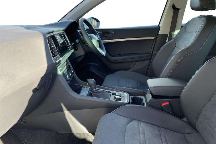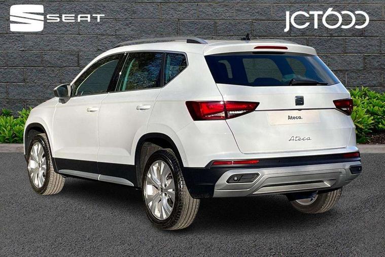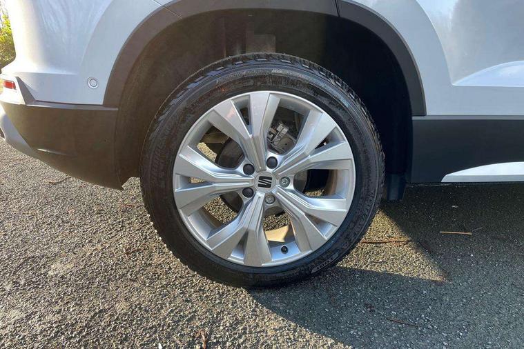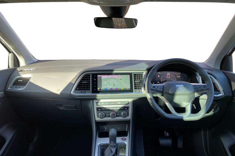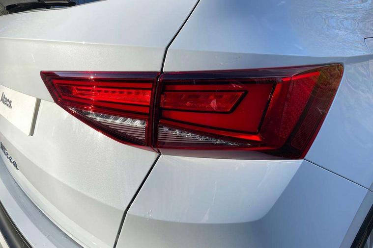 8" Digital cockpit, Colour multi-function on board computer display, E-call, Electric tailgate, Outside temperature gauge, Progressive power assisted steering, Rear view camera, SEAT drive profile with driving experience button - Normal, Sport, Eco and Individual mode, gearshift, steering and throttle response, Self parking functionality (includes front and rear parking sensors), Start/stop system, Trip computer, wired and wireless full link smartphone integration, Wireless phone charger, Steering wheel mounted audio/phone controls, Black wheel arch surrounds, Body colour bumpers, Chrome front grille frame, Chrome roof rails, Chrome side window trim, Dark tinted rear windows, Daytime running lights, Door mirrors with welcome light silhouette, Dynamic headlight range control with self adjusting whilst driving, Electric adjustable/heated/folding door mirrors, Front and rear electric windows, Front grille hot stamping, Full LED headlamps with lens and LED front fog lamps with cornering function, Heat reflecting windscreen, Illuminated aluminium front door sill, LED 3rd brake light, LED rear tail lights with dynamic indicators, Rear exhaust tailpipe, Rear fog lights, Rear side wing doors, Rear wash/wipe, Reflex silver side mouldings, Variable front intermittent wipers, 12V socket in front, 3 seat bench in 2nd row, 60/40 split folding rear seat, Dinamica upholstery with front comfort seats, Drawer under right front seat, Dual zone climate control, Front and rear head restraints, Front centre armrest, Front seat back storage pockets, Height adjustable driver and passenger seat with lumbar adjustment, ISOFIX points in outer rear seats with top tether anchorage points, Leather sports steering wheel and gear knob, Rear armrest and easy back seat release mechanism from boot, Single front passenger seat, Steering wheel mounted gearshift paddles, Convenience pack - Ateca, Interior lighting pack - Ateca, Navigation system pack with DAB - Ateca, Safety and driving pack (M) - Ateca, Safety and driving pack with attention and drowsiness assist - Ateca, 3x3 point rear seatbelts, ABS, Traction control system (TCS), Electronic stability control (ESC) and Electronic differential lock system (XDS), Airbags - Driver and front passenger airbag with deactivation, front side, two curtain and driver's knee airbags, Electric parking brake with auto hold function, Front and rear seatbelt reminder, Hill hold control, Manual rear child locks, Single tone horn, Tiredness recognition system, Tyre pressure monitoring system, Alarm, Keyless entry, Locking wheel bolts, Remote central locking, Chrome interior detailing, 18" Brillaint silver alloy wheels,