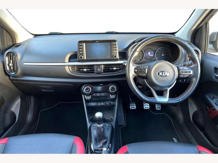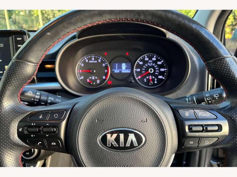 7" touch screen, Apple car play/Android Auto, Cruise control + speed limiter, Digital clock, Emergency stop signalling system, External temperature gauge, Kia connected services, PAS, Rear parking sensors, Reversing camera, Satellite navigation system, Supervision cluster, Tachometer, Trip computer, Voice control system, Wireless Smartphone charger, 6 speakers, Bluetooth connectivity including audio streaming, DAB Digital radio, Steering wheel mounted controls, USB and auxiliary socket, Automatic headlights, Black grille with chrome surround, Body colour bumpers, Body colour door mirrors, Body colour side mouldings, Chrome door handles, Chrome side window trim, Day/night rear view mirror, Electric adjustable/heated/folding door mirrors, Electric sunroof, Front and rear electric windows, Front fog lights, Headlamp levelling, Heated rear window, LED daytime running lights, LED rear lights, Privacy glass, Projector headlamps, Rear wash/wipe, Sports bumpers, Twin exhaust pipes, Variable front intermittent wipers, Welcome home function, 12V power point front, 60/40 split/folding 2nd row of seats, Assist grips, Automatic air conditioning, Centre console storage and sliding armrest, Coat hooks, Cupholders in centre console, Driver seat height adjust, Driver sunvisor with illuminated mirror, Faux leather upholstery, Front interior light, Glovebox, Heated front seats, Heated steering wheel, Height adjustable front seat head restraints, Height adjustable rear seat head restraints (x2), Isofix child seat attachment, Leather steering wheel and gear knob, Load area light, Luggage net hooks, Passenger front seat pockets, Passenger sunvisor with vanity mirror, Rear parcel shelf, Satin chrome interior door handles, Slide/reclining front seats, Stainless steel pedals, Tilt adjustable steering wheel, Variable height boot floor, 3x3 point rear seatbelts, ABS/EBD, Automatic unlocking of doors in case of impact, Autonomous emergency braking, Curtain airbags, Dual front airbags, ESC + BAS + VSM + HAC, Front seatbelt pretensioners + load limiters, Front side airbags, Height adjustable front seatbelt anchors, Hill start assist, Passenger airbag deactivate switch, Rear child proof door locks, Seatbelt warning, Side impact protection, Traction control, Tyre pressure monitoring system, Anti theft alarm, Engine immobiliser, Keyless smart entry with push button start, Locking wheel nuts, Speed sensitive auto door locking, High gloss black centre fascia, 16" alloy wheels, Tyre repair kit,