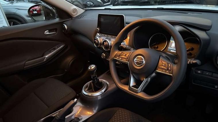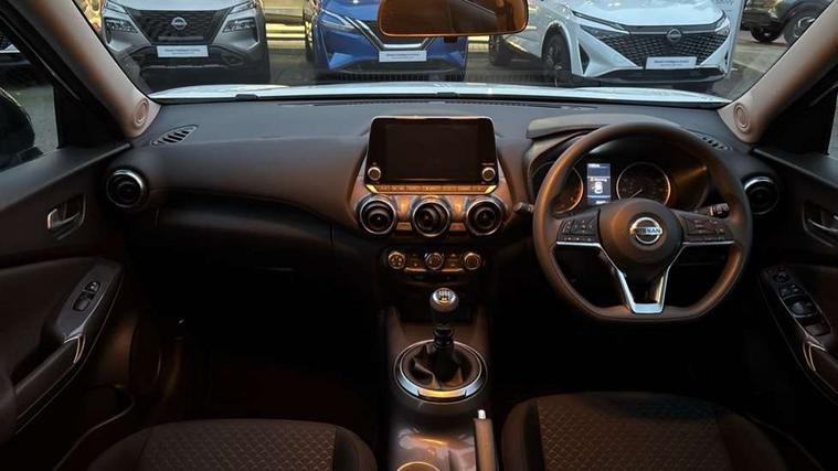 4.2" full colour TFT screen combimeter, Apple CarPlay and Google Android auto, Cruise control + speed limiter, eCall emergency call system, Emergency and breakdown call, Idle start/stop system, Intelligent lane intervention, Lane departure warning system, Nissan connect 8" touch screen entertainment system, Nissan connect services and Wifi connection, Outside temperature sensor, Power Steering, Rear view camera, Traffic sign recognition, Trip computer, Voice recognition, Gasoline particulate filter, 4 speakers, Bluetooth system, USB, Aux-in and 12V socket, DAB Digital radio, Automatic hazard signal with emergency stop signal, Body colour bumpers, Body colour door handles, Electrically adjustable door mirrors with integrated indicators, Follow me home headlights, Front and rear electric window with one touch driver window, High beam assist, LED daytime running lights, LED headlamps, LED rear fog lamp, LED rear lamps, Manual dimming interior rear view mirror, Pearl black door mirrors, Rear side wing doors, Rear wiper, Three blink turn signal, 3 height adjustable rear headrests, 3 seat bench in 2nd row, 60/40 split folding rear seat, Cloth upholstery, Driver and passenger sliding and reclining seats, Driver/passenger sunvisors and vanity mirrors, Front and rear cabin lights, Front door pockets with bottle holders, Front head restraints, Height adjustable driver's seat, Internal chrome door handles, Luggage space lighting, Monoform sporty seats, Multifunction steering wheel, Rear door bottle holders, Single front passenger seat, Telescopic steering wheel adjustment, Two cupholders in front centre console, Two rear isofix child seat anchorage points with top tether, Welcome light and console tray ambient lighting, ABS with EBD and brake assist, Active ride control, Active Trace Control, Driver and passenger airbags, Driver and passenger side airbags, Electronic Stability Programme (ESP), Front and rear curtain airbags, Height adjustable seatbelts, Hill start assist, Intelligent emergency braking with pedestrian and cyclist recognition, Rear door child safety locks, Rear drum brakes, Seatbelt reminder for driver/front passenger and rear seats, Single tone horn, Three 3 point rear seatbelts, Traction control, Tyre pressure monitoring system, VDC Dynamic Vehicle Control, Alarm, Immobiliser, Remote central locking, 17" Sakura Flex wheels,
