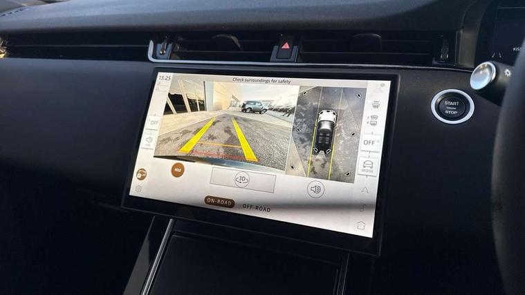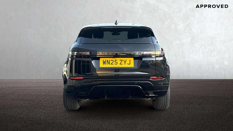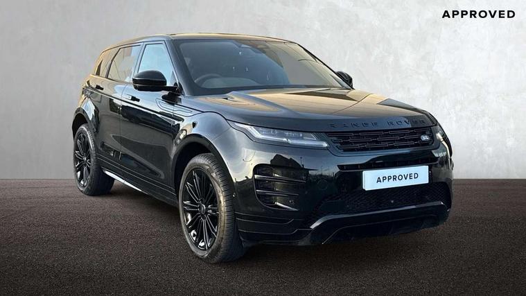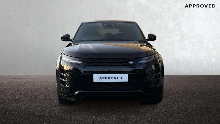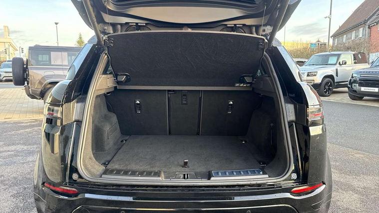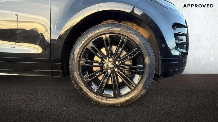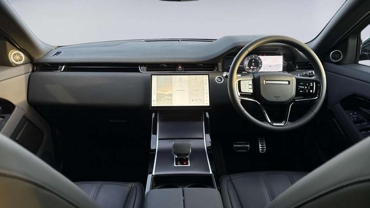 11.4" touch screen, 3D 360 degree surround camera with wade sensing, Adaptive cruise control, Android Auto, Apple car play, Blind spot assist, Bluetooth connectivity, Brake pad wear indicator warning light, Driver condition monitor, eCall emergency system, Eco mode, Electronic power assisted steering (EPAS), Front and rear parking aid, InControl remote, Interactive driver display, Land Rover InControl apps, Lane keep assist, Pivi pro connected includes diamond pivi variant, smart settings, connected navigation pro, nuance speech licence, Powered tailgate/boot lid, Rear collision monitor, Rear traffic monitor, Tailgate, Traffic sign recognition with adaptive speed limiter, Voice control system, Wireless device charging, All terrain progress control, Electric rear axle drive, Home charging cable, Large fuel tank, Passive suspension, Public charging cable, Terrain Response 2, Digital Audio Broadcast radio-DAB, Meridian sound system with 400W subwoofer and 11 speakers, Steering wheel mounted controls, Acoustic laminated windscreen, Auto dimming interior rear view mirror, Auto headlights, Auto high beam assist, Automatic headlight levelling, Black contrast roof, Electric windows with one touch open/close and anti trap, Fixed panoramic sunroof with powered sunblind, Flush deployable exterior door handles, Front and rear recovery eyes, Heated rear window with timer, Heated washer jets, Heated windscreen, LED headlights with signature DRL and LED tail Lights, Metallic paint, Power fold, auto-dimming, heated door mirrors with approach lights and auto dimming driver side, Privacy glass, Rain sensing windscreen wipers, Rear animated directional indicators, Rear fog lights, Rear side wing doors, Rear wiper, Tailgate spoiler, Third brake light, Winter wiper park position, 12 way driver memory and 10 way passenger electric front seats with 2 way manual headrest + 4 way lumbar support, 40:20:40 split folding rear seats with centre headrest and armrest, Bright metal pedals, Cabin lighting, Carpet mats, Chrome tread plates with range rover branding Includes stainless steel loadspace scuff plate with etched graphic, Customer configurable single point entry, Front and rear cupholders, Grained Leather upholstery, Heated front seats, Heated steering wheel, Isofix system on outer rear seats, Manually adjustable steering column, Overhead lighting console, Overhead stowage for sunglasses, Passive front head restraints, Rear air vents, Rear head restraints, Satin chrome gearshift paddles, Single passenger seat, Standard steering wheel with Moonlight Bezel, Sunvisors with illuminated vanity mirrors, Twin sliding front centre armrest, Two zone climate control, Black exterior styling pack - Evoque, Power socket pack 2 - Evoque, 3 rear 3 point seatbelts, Anti-lock braking system (ABS), Black brake calipers, Brake hold function, Customer configurable autolock, DSC - Dynamic Stability Control, Electronic brake force distribution, Electronic parking brake, Electronic traction control, Emergency braking, Front and rear seatbelt reminder, Hill descent control, Hill launch assist, Low traction launch, Occupant protection assist, Passenger seat occupant detector, Power operated child locks, Roll stability control, Six airbags - Driver and passenger airbags/driver knee airbag/front side airbag and curtain airbags, Torque vectoring brake, Tyre pressure monitoring system, Alarm, Immobiliser, Intrusion sensor, Keyless entry, Locking wheel nuts, Secure tracker pro, Black brushed aluminium finisher, 19" gloss black alloy wheels - Style 5136, All season tyres, Tyre repair system,