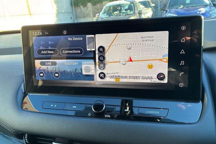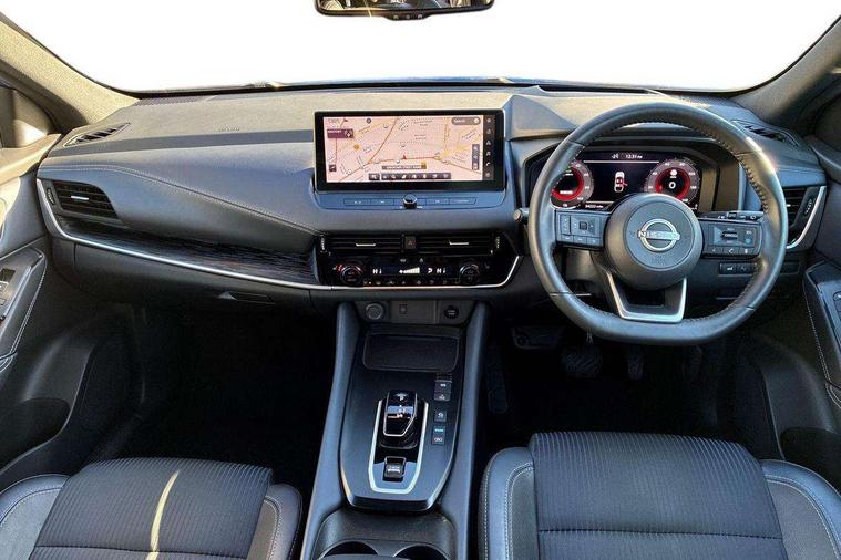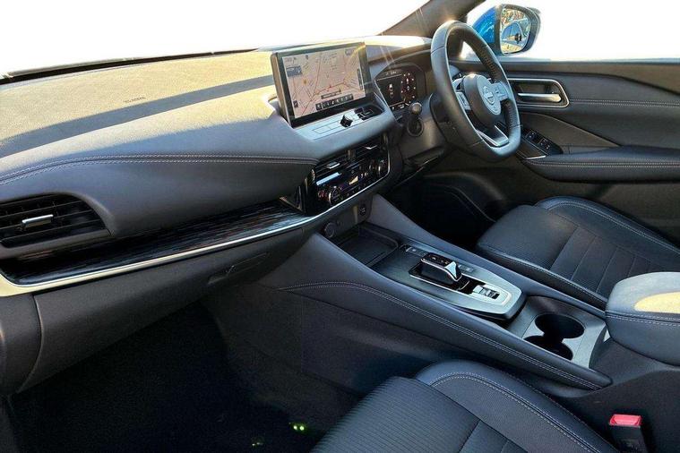 Advanced windscreen head up display, Android auto/Apple CarPlay (Wired), Blind spot warning, Drive modes (sport, normal, eco), Electric speed sensitive power steering, Emergency and breakdown call, Front and rear parking sensors, Full Digital 12.3" TFT Digital Combimeter, Google maps services - search, weather, 3D maps and Google street view, Hands free power tailgate, Idle stop/start system, Intelligent around view monitor, Intelligent Cruise control (ICC), Intelligent driver alert system, Intelligent forward collision warning, Intelligent lane intervention, Lane departure prevention, Lane departure warning system, Lane keep assist, Moving object detection, Nissan connect 12.3 inch touchscreen infotainment system, Nissan connect navigation, ProPILOT with Navi-Link, Push button starter, Rear cross traffic alert, Rear view camera, Remote control services - door locks, lights, horn and car locator, Telematics - notifications and connectivity services, TomTom live traffic services, Traffic sign recognition with legal speed adjustment, Trip computer, Virtual personal assistant and firmware over the air capability, Wireless apple carplay, Wireless charging pad, 6 speakers, AM/FM audio system with DAB, Bluetooth audio streaming, Front USB connections (Type-A and Type-C), Rear USB charging only ports (Type-A and Type-C), Auto dimming rear view mirror, Auto rear wiper when reversing, Automatic hazard signal with emergency stop signal, Body colour mirror caps, Body coloured door handles, Bodyside mouldings, Chrome side window finisher, Door handle with button, e-POWER badging, Electric auto folding door mirrors, Electrically adjustable and heated door mirrors with LED turn indicator, Follow me home headlights, Front and rear LED turning signals, Headlights auto levelling system, Intelligent auto headlights, LED daytime running lights, LED headlights with adaptive driving beam, LED rear lights, One touch front and rear electric windows with remote opening and closing, Partially body coloured bumpers, Privacy glass, Rear bumper with graphite insert, Rear reversing light (bulb lighting), Rear roof spoiler, Rear side wing doors, Rear styling plate, Shark fin antenna, Splash free rain sensing wipers, Super UV and infrared cut glass, Thermaclear heated windscreen, Three blink turn signal, 12v power socket in dashboard and luggage, 2x Rear coat hooks, 3 bench rear seats in 2nd row, 3 rear headrests, 4 folding assist grip, 6 Luggage hooks - 4 on floor, 2 on side, 60/40 split folding rear seat bench, Ambient lighting around centre console, Ambient lighting in front doors, Centre console storage tray, Chrome interior door handles, Cloth/syntech leather monoform upholstery, Dark black/blueish PVC wrapping, Dark headlining, Driver and front passenger sunvisors with illuminated vanity mirrors, Driver seat back pocket, Dual zone automatic climate control with pollen filter, e-POWER shifter, Electrically adjustable driver seat, Electrically adjustable lumbar support for driver, Front and rear door storage, Front centre console and armrest, Front cupholders x 2, Front door with bottle holders, Glovebox with light, Hard trunk cover, Heated front seats, Heated steering wheel, Height adjustable driver's seat, Height adjustable front headrests, Height adjustable passenger seat, Leather steering wheel, Luggage board system, Luggage space lighting, Manual lumbar support on passenger seat, Manually adjustable passenger (slide recline + lifter), Multifunction steering wheel, Passenger seat back pocket, Rear armrest with 2 cupholders, Rear door bottle holders, Single front passenger seat, Soft PVC kneepad, Steering wheel switches, Tilt/telescopic adjustable steering wheel, Two rear isofix child seat anchorage points with top tether, Welcome light and doors with console tray ambient lighting, Glass roof pack with roof rails - Qashqai, 3x3 point rear seatbelt pretensioners + load limiters, ABS with EBD and brake assist, Active brake limited slip, Auto hold function, Child locks on rear doors, Curtain and front side, far side airbags, Driver and passenger airbags, Driver, passenger and 2nd row rear seat belt reminder, Electronic parking brake, Front seatbelt pretensioners + load limiters, Height adjustable front seatbelts, Hill start assist, Intelligent blind spot intervention, Intelligent front emergency braking with pedestrian, cyclist recognition and junction assist, Intelligent rear automatic braking, Tyre pressure monitoring system, Vehicle dynamic control, Capless fuel filler, Engine immobiliser, Intelligent Key, Remote central door locking with deadlocking, Thatcham Cat.1 alarm, Interior instrumental panel C finisher, 19" Diamond cut alloy wheels, Tyre puncture repair kit,