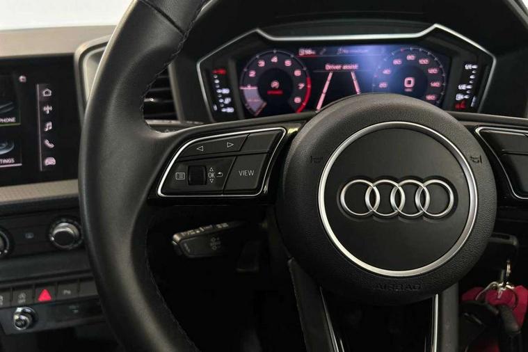 10.25" Digital instrument cluster display classis style instrument dials + speed, odometer, time, outside temperature, telephone menu + fuel level warning, Audi connect safety emergency and service including E-call, Audi drive select - power steering assistance + engine, Audi smartphone interface with connect compatible smartphone via USB directly MMI display + Nav, music, third party apps controlled via MMI controller, Automatic start/stop system, Bluetooth interface, Cruise control, Driver's information system, Electromechanical power steering, Lane departure warning system, Rear parking sensor, Service interval indicator, Speed limiter, Voice control system, Washer fluid level indicator, Dynamic suspension, 1 x SDXC card reader, 1 x USB type C and 1 USB type A charging points, DAB Digital radio, MMI radio plus with 8.8" colour MMI display screen and MMI touch, Auto dimming rear view mirror, Body coloured bumpers, Body coloured door mirrors, Electric front and rear windows, Electrically adjustable, heated, folding door mirrors with integrated LED side indicator, Front side air inlets in grained matt black and C frame in titanium black, Heat insulating glass windscreen and side windows, Heated rear windscreen, LED headlights with LED rear lights + dynamic rear indicators + headlight adjustment and high beam, turning light + LED daytime running lights, Radiator grille and rear diffuser in matt titanium black, Radiator protective grille frame in matt aluminium silver, Rain and light sensors, Rear fog lights, Rear wiper, Scandium grey tailpipe trim, Side front spoiler lips in grained matt black, 12V socket in centre console with two cup holders, 3 rear seats with headrests, 40:60 Split folding rear seat or folded fully, Door sill trims with aluminium inlay, Driver and passenger seat with manual height adjust with forward and backwards adjustment, Front head restraints, Front/rear floor mats, Height and reach adjustable steering wheel, ISOFIX child seat mounting for front passenger and outer rear seats including top tether attachment point of outer rear seats, Leather gear knob with aluminium trim, Leatherette handbrake grip, Luggage compartment light with front and rear reading lights, Manually adjustable lumbar support in front seats, Novum cloth upholstery with front sport seats, Titanium grey cloth headlining, Luggage compartment pack - A1, 3x3 point rear seatbelts, Audi pre-sense front with pedestrain and cyclist recognition, Brake assist function, Driver and front passenger airbag with front side and head airbags, Electronic Stability Control including ABS, EBD, ASR and EDL, Front and rear seatbelt reminder, Front passenger airbag deactivation switch, Hill hold assist, Seatbelt height adjustment for front seats, Seatbelt monitoring, Tyre pressure warning light, Warning triangle and first aid kit, Anti theft alarm, Anti theft wheel bolts and loose wheel warning, Immobiliser, Remote central locking with 2 foldaway keys, Aluminium trim for control switches, air vents and digital instrument cluster, Silver grey accent areas including air vents, door handle recesses and centre console in diamond paint finish, Slate grey inlays polygon structure in fine paint finish,